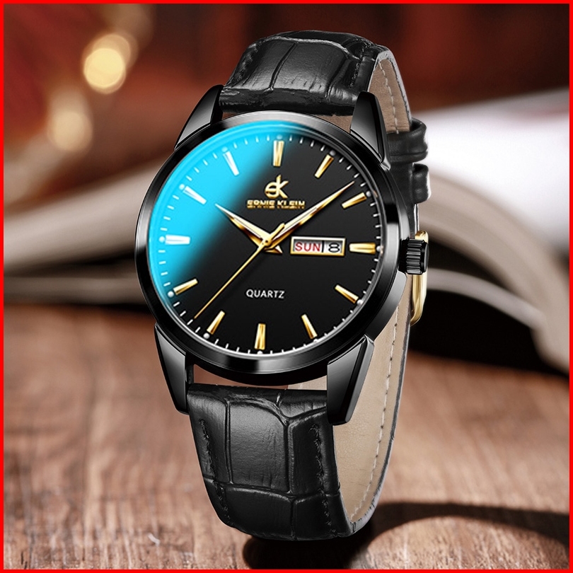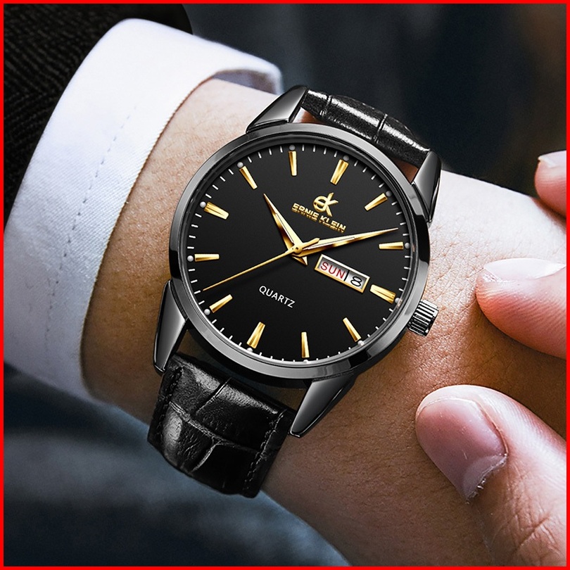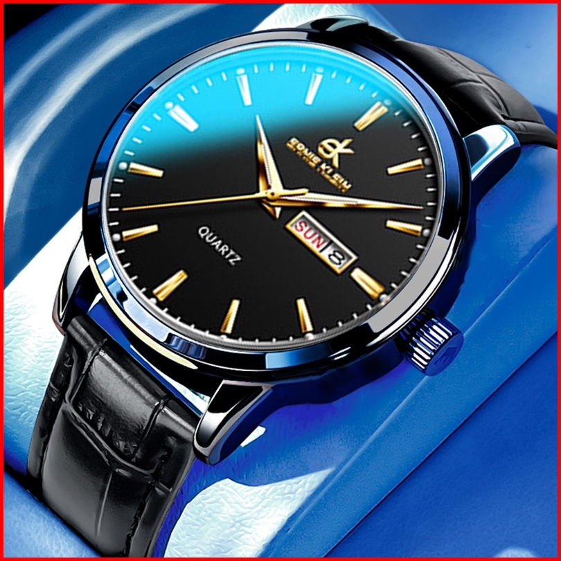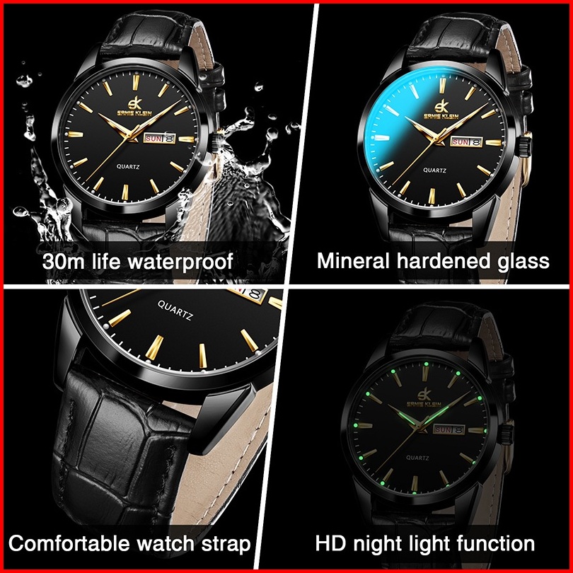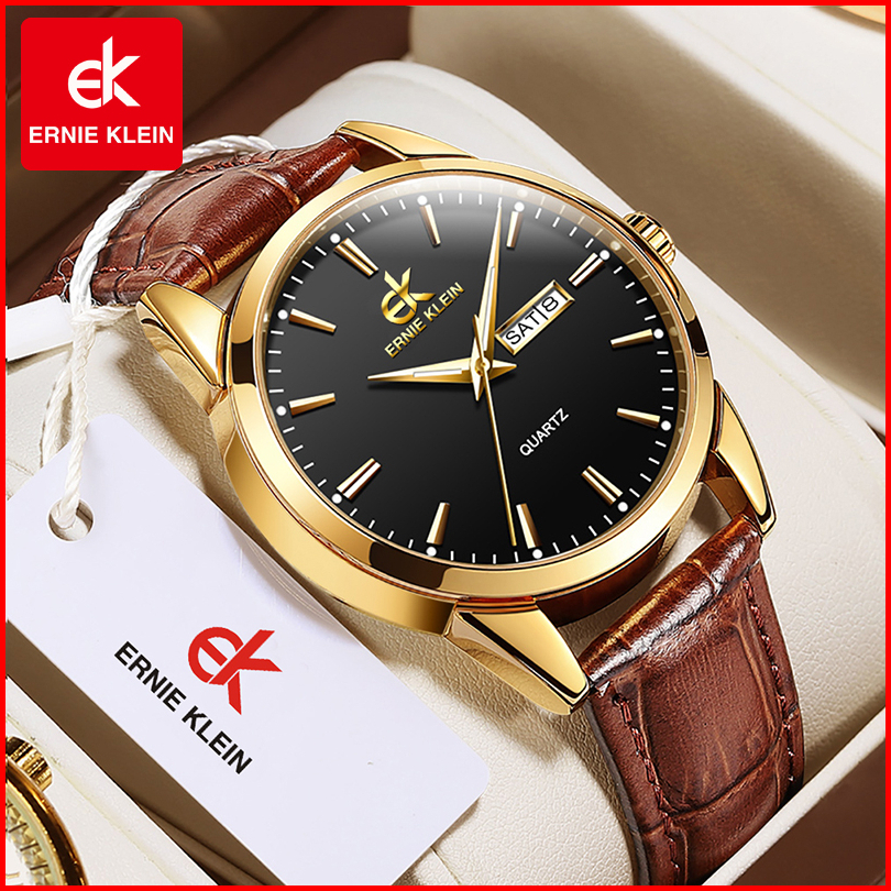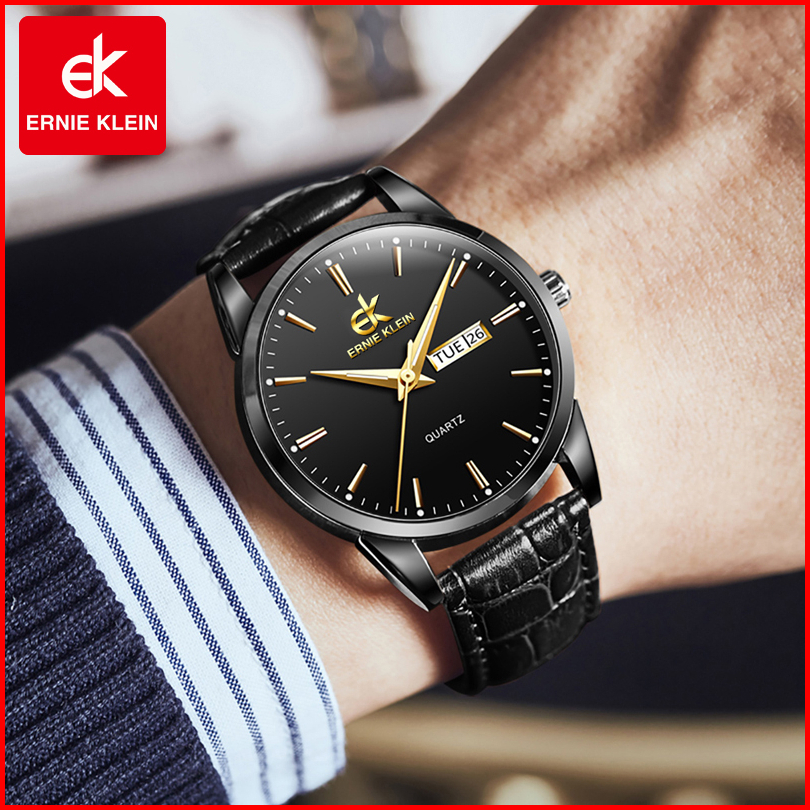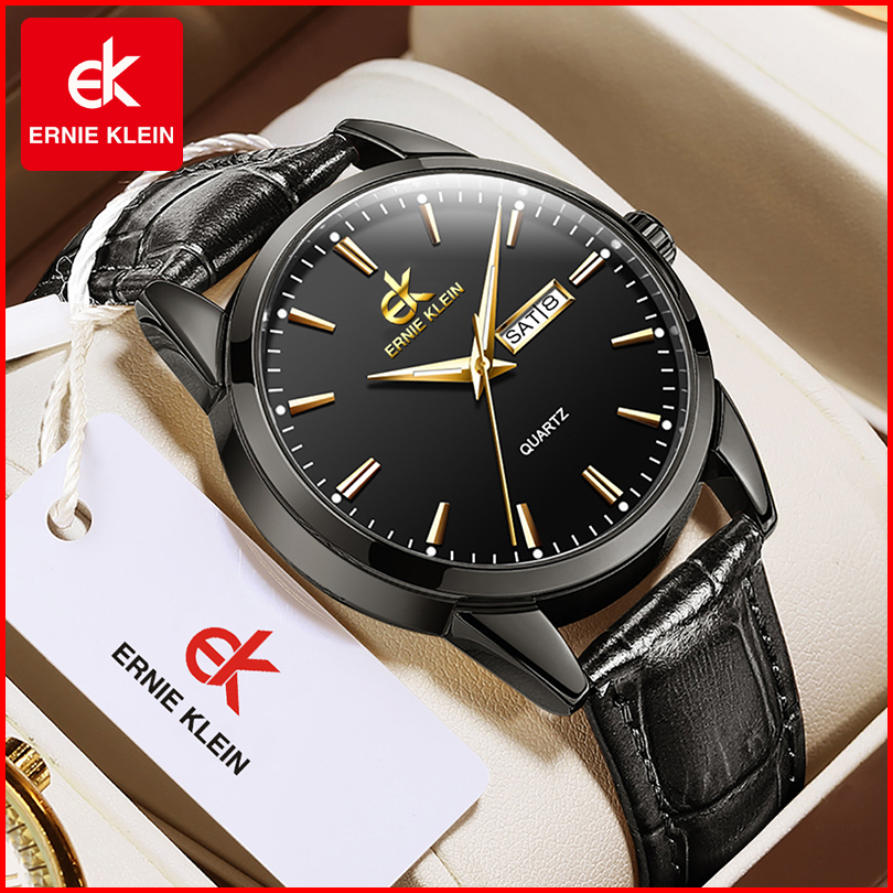 Ernie Klein Jam Tangan Pria Anti Air Original Tahan Kulit Tali Laki Laki Cowok Analog Men Watch Hitam Biru Putih