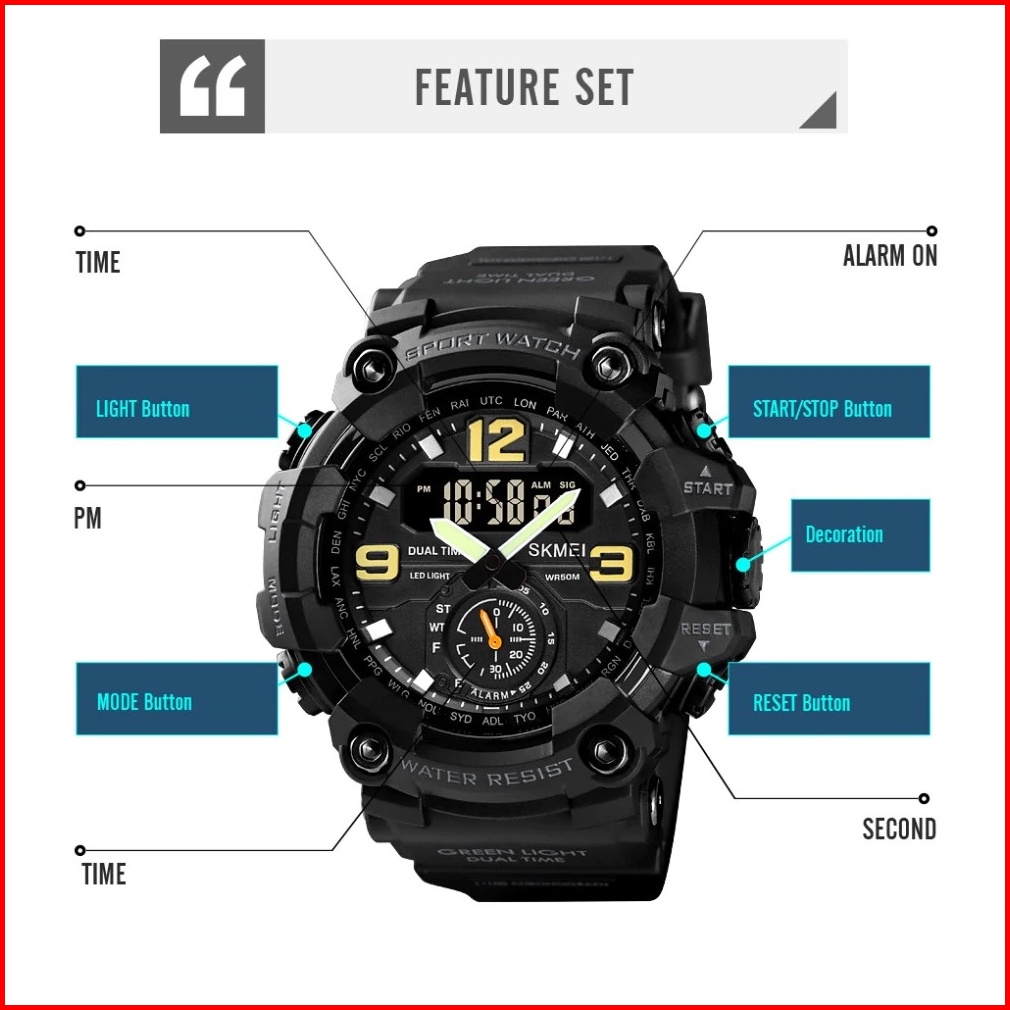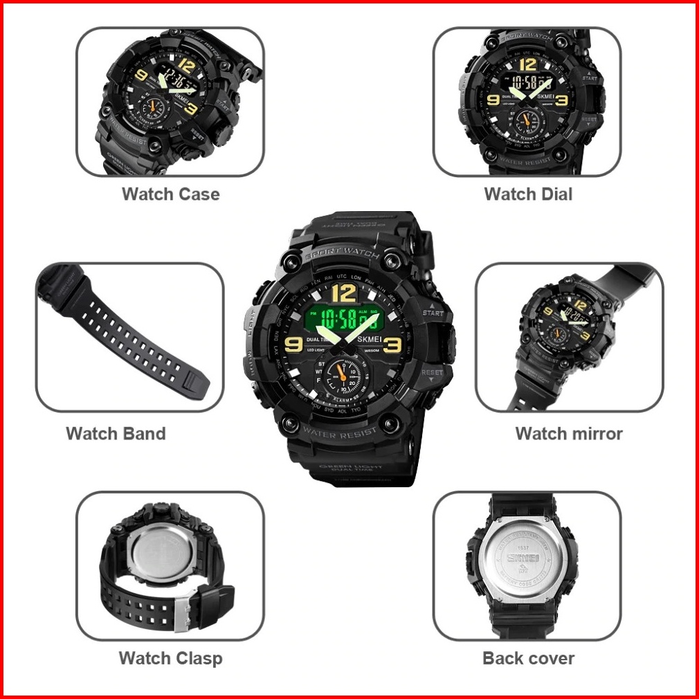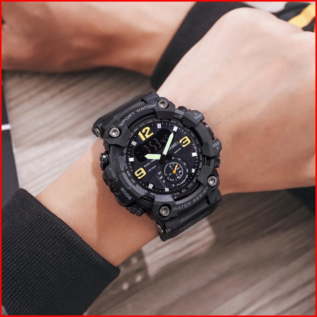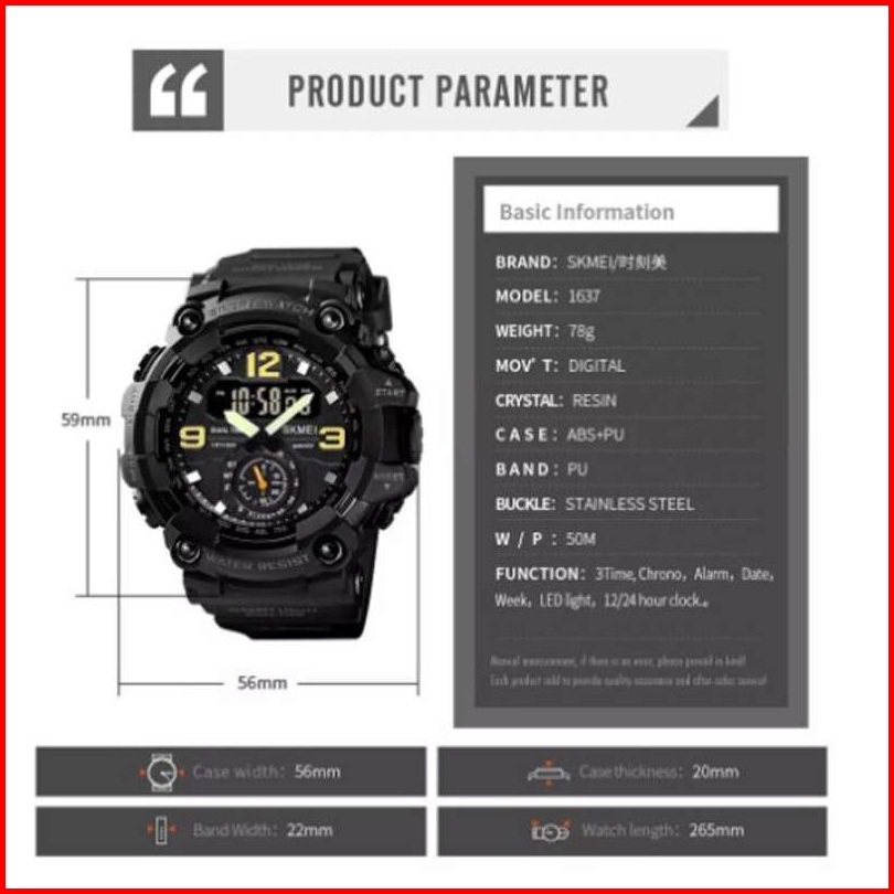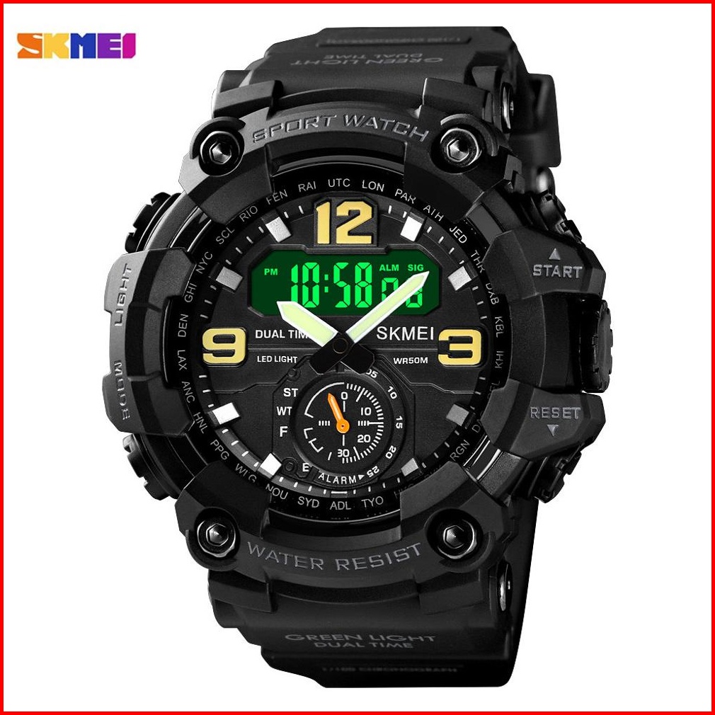 Jam Tangan Pria Skmei Analog Digital 1637 Black Water Resistant 50m