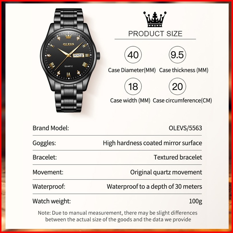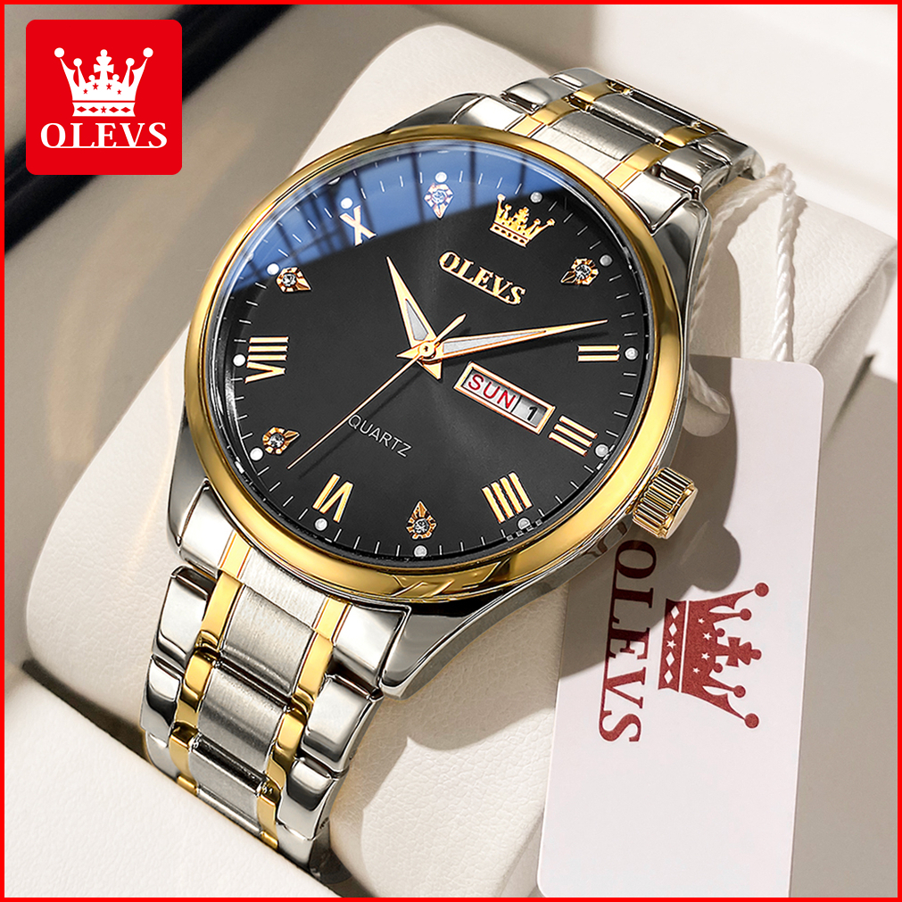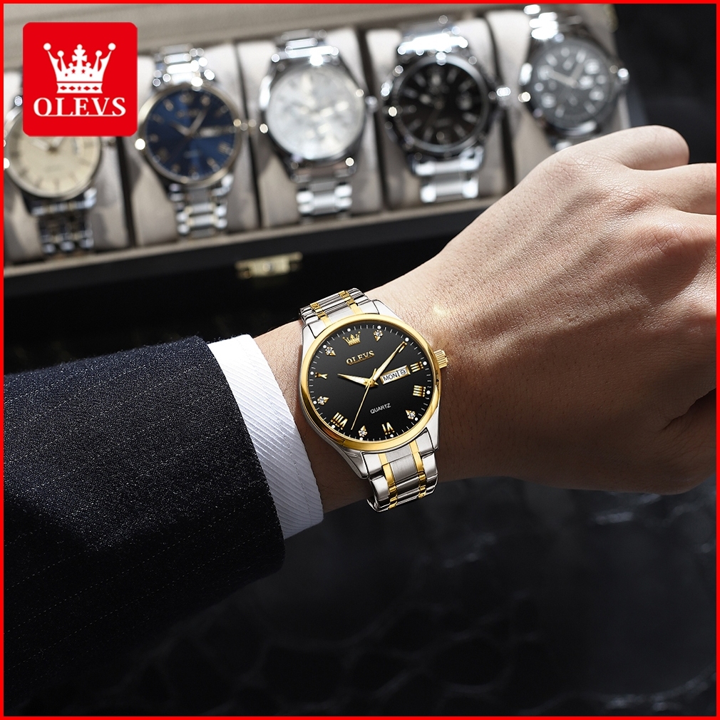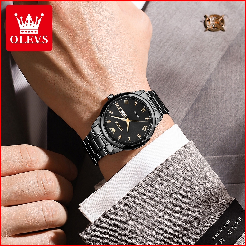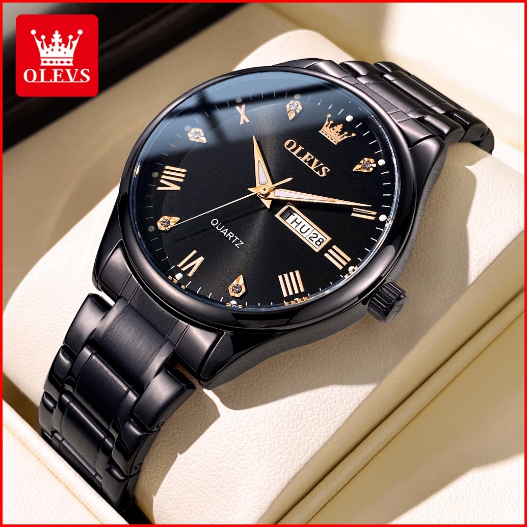Olevs Jam Tangan Pria Anti Air Original 100 Mewah Keren Stainless Steel Tahan Kalender Luminous Analog Hitam Men Watch M