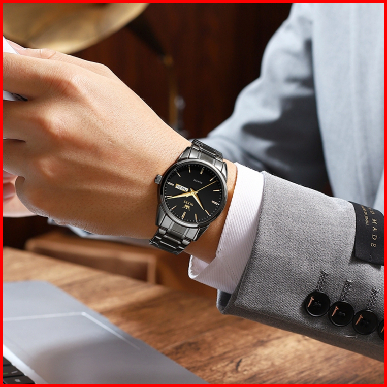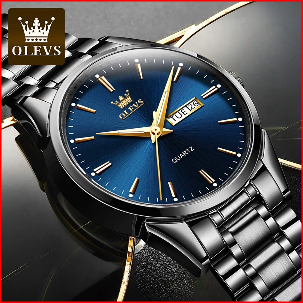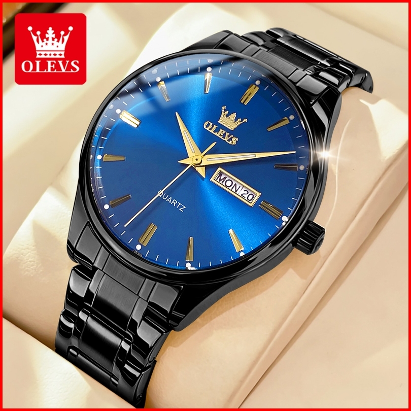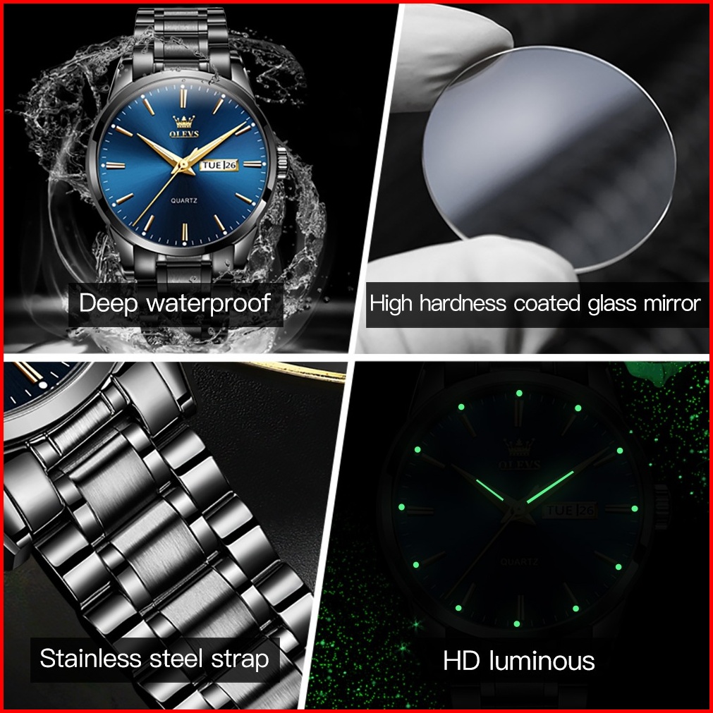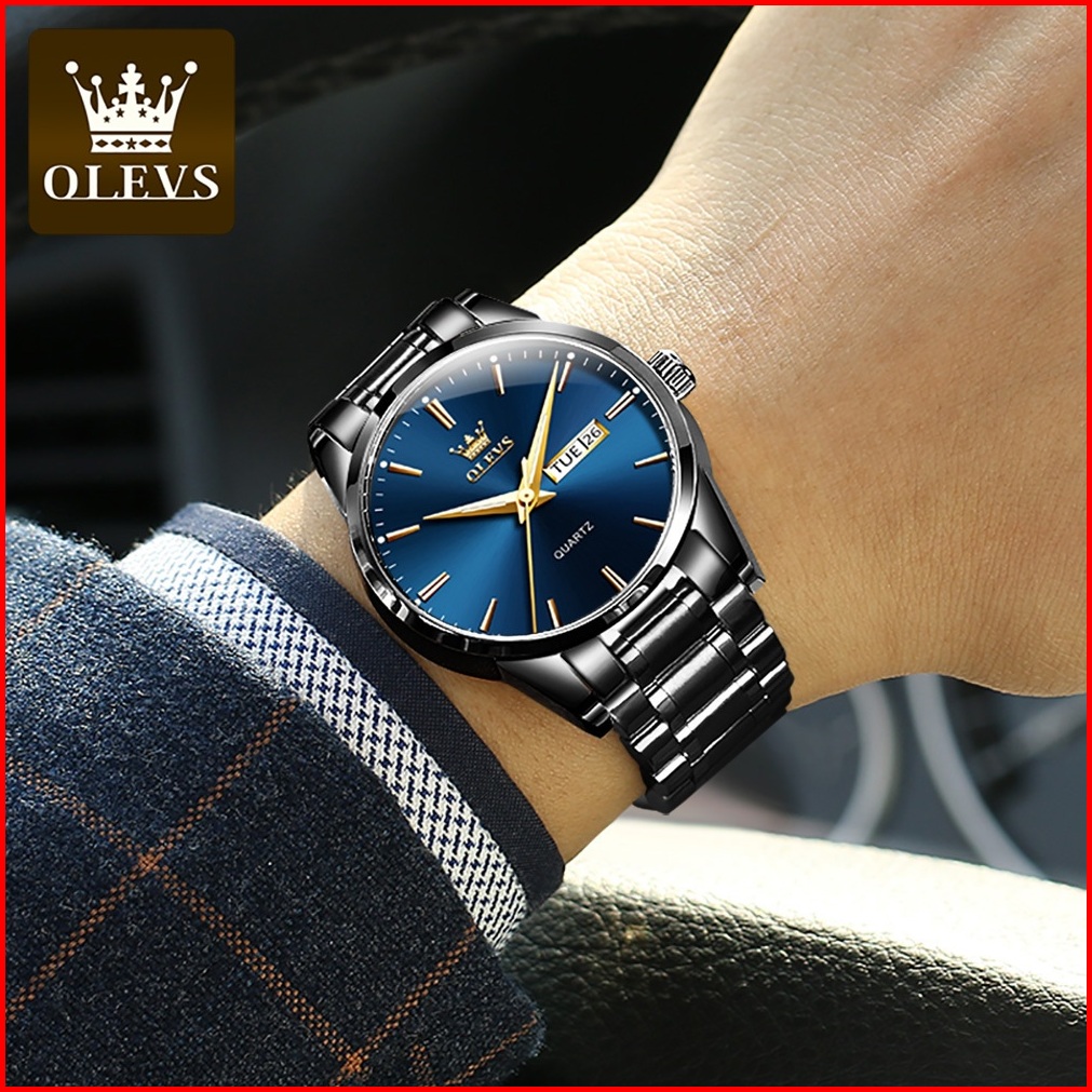 Olevs Jam Tangan Pria Anti Air Original 100 Rantai Stainless Steel Luminous Fashion Analog Men Watch Model 6898