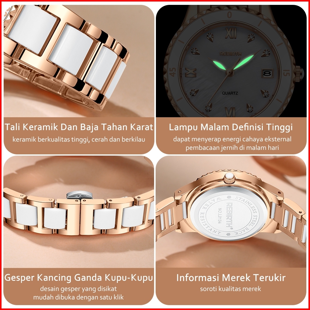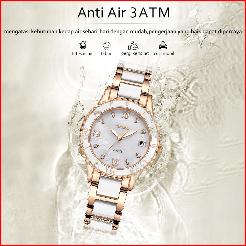 Rebirth Jam Tangan Wanita Korea Berlian Original Anti Air Tali Keramik Jam Tangan Cewek Original New