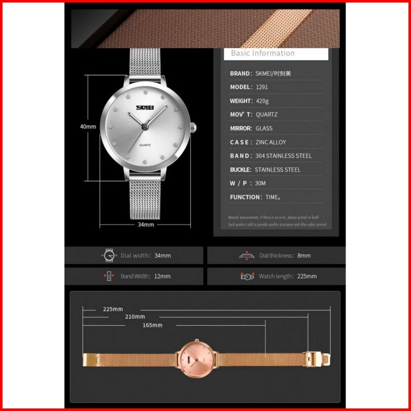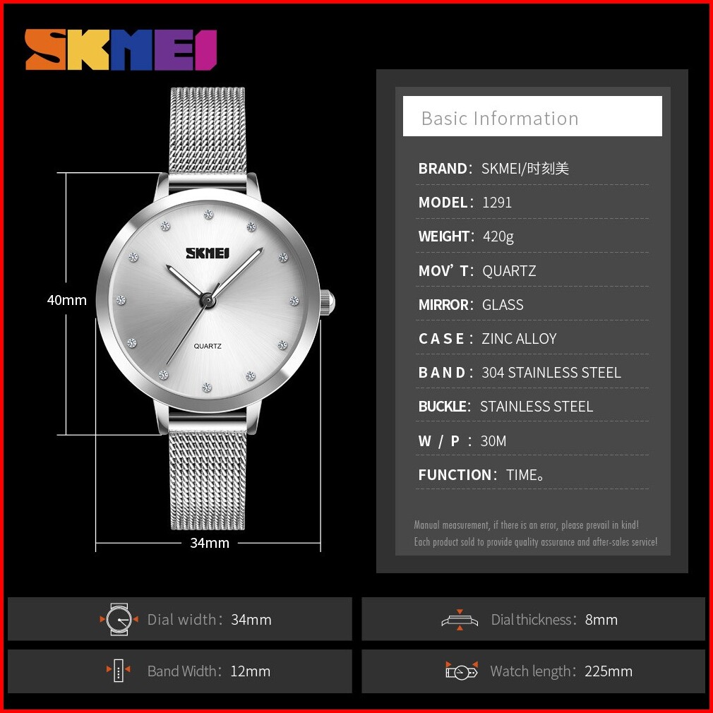 Jam Tangan Wanita Analog Skmei 1291 Silver Water Resistant 30m
