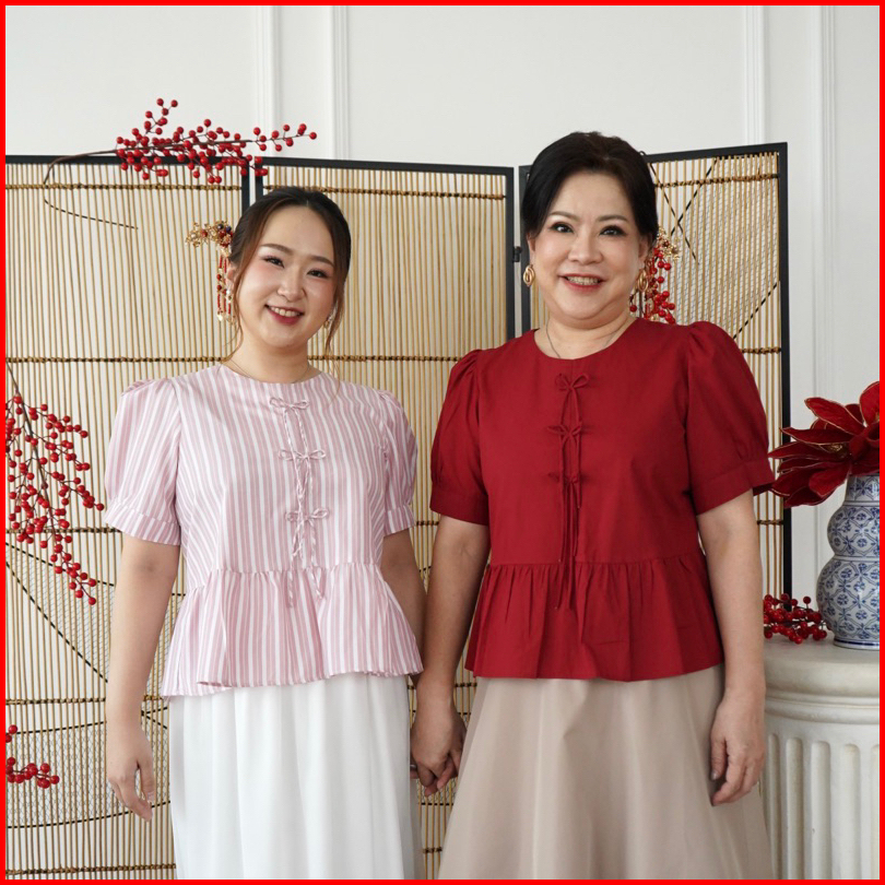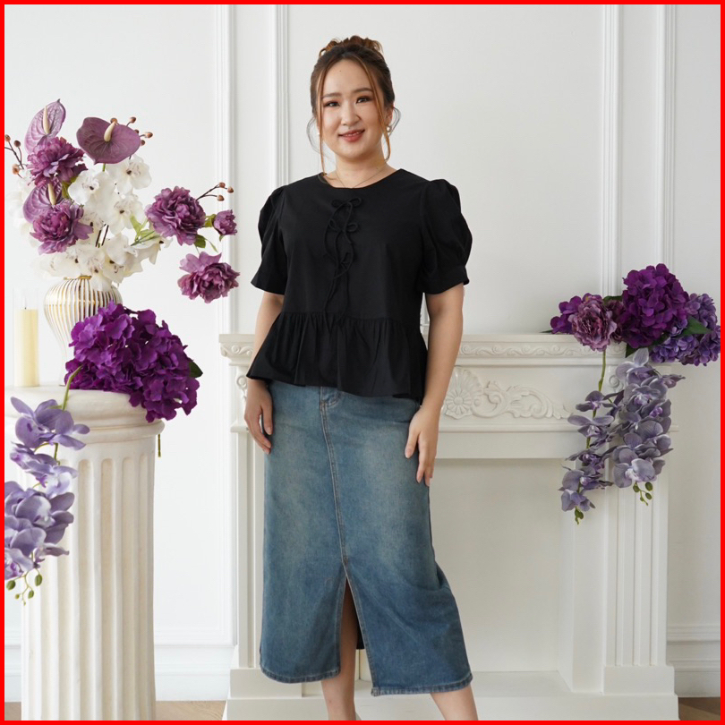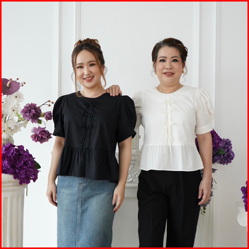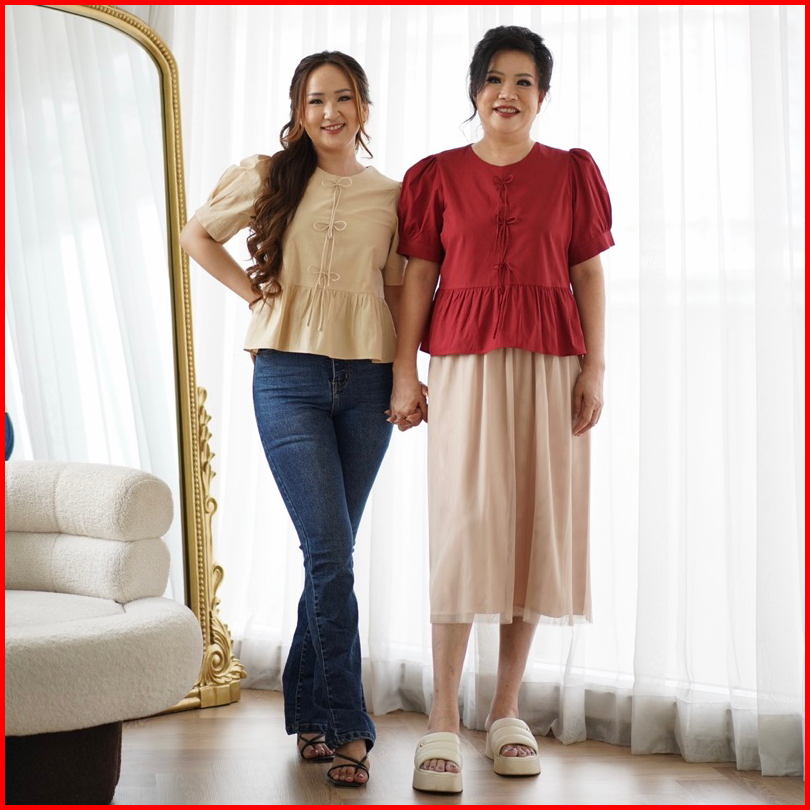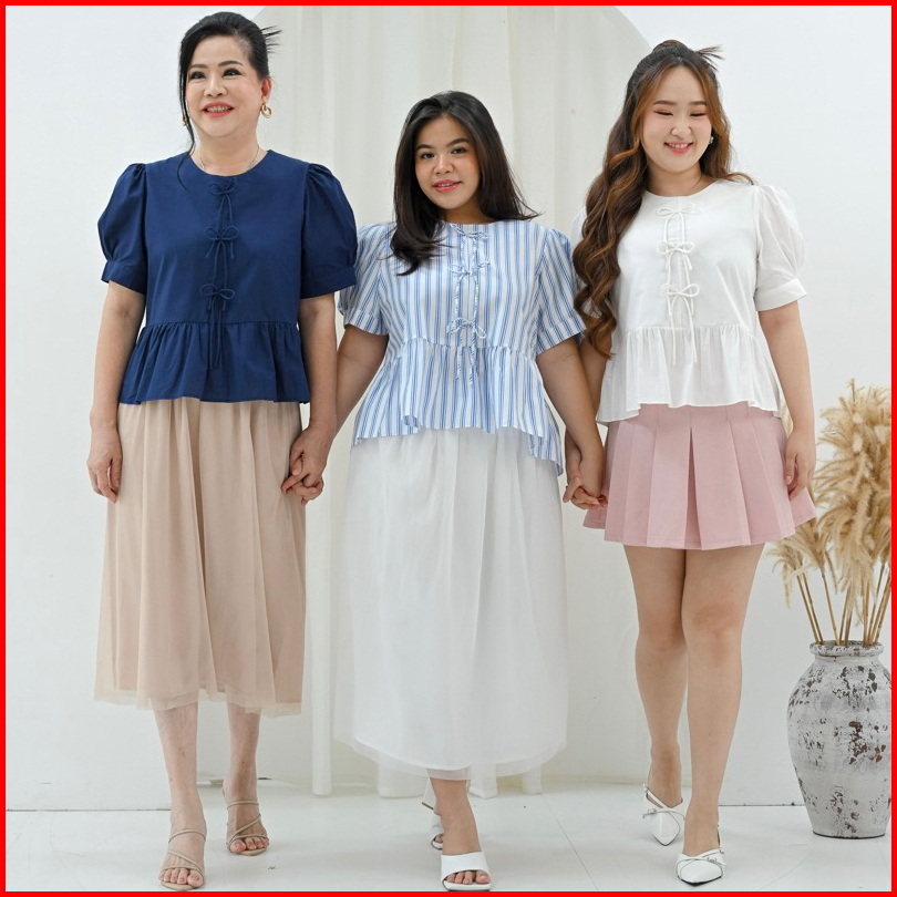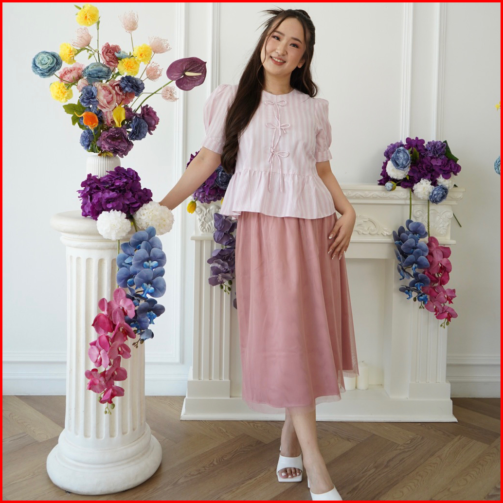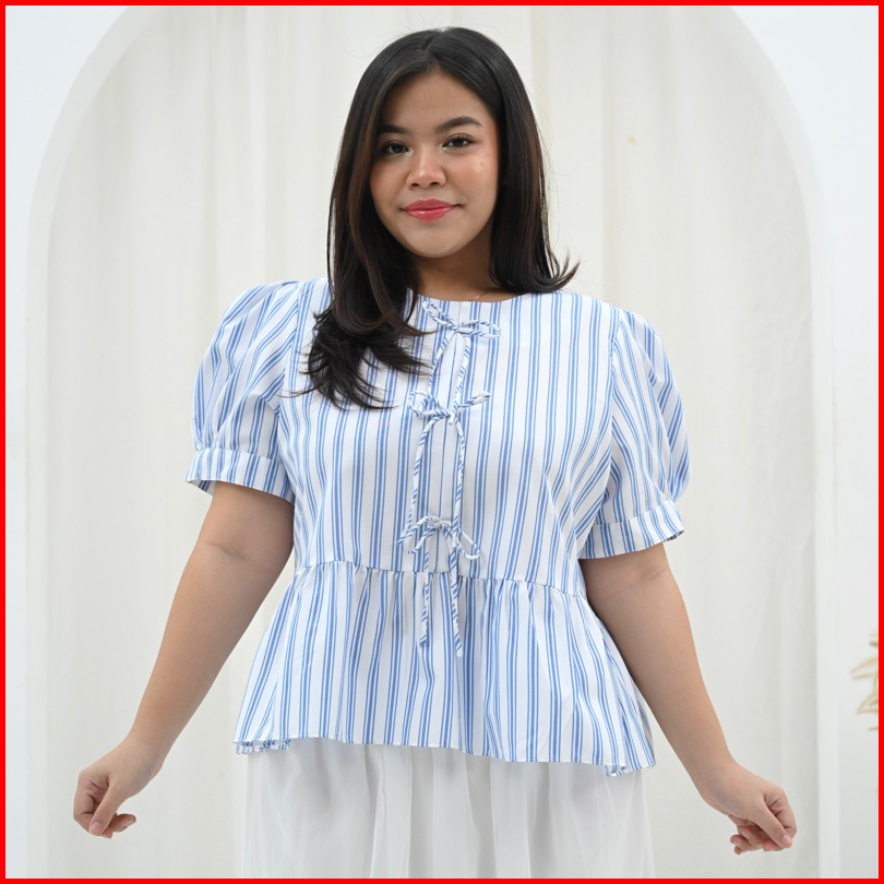 Victoria Wear House Debbie Top - Baju Atasan Blouse Pita Lengan Balon Bahan Katun Garis Garis Pakaian Casual Wanita