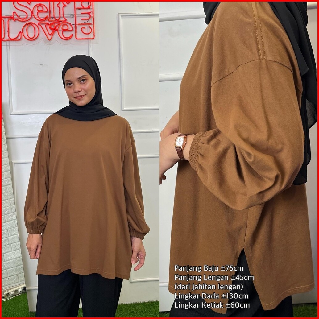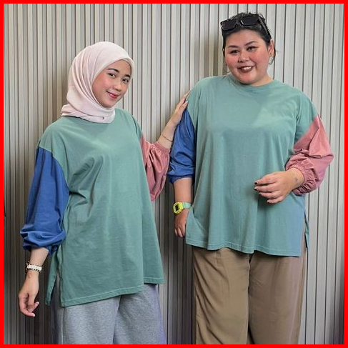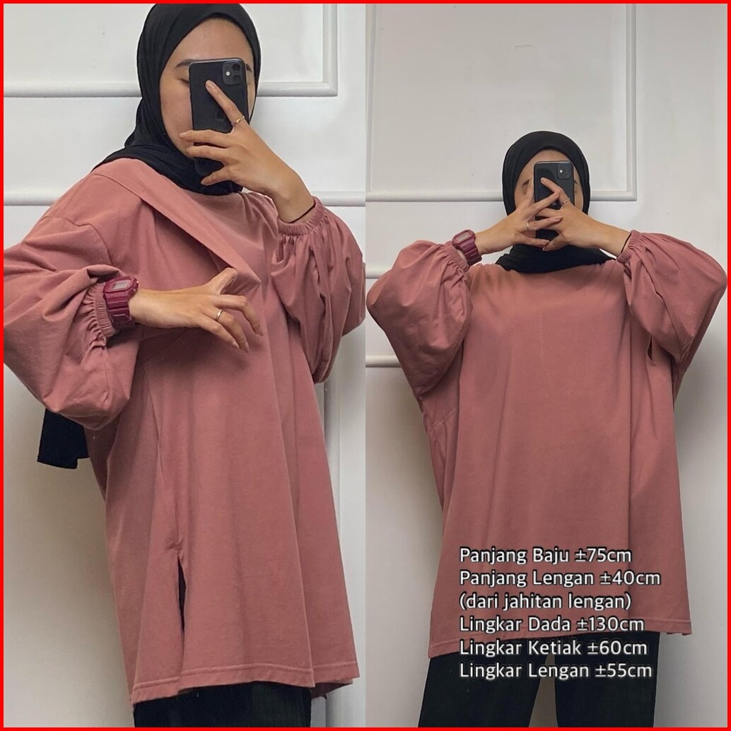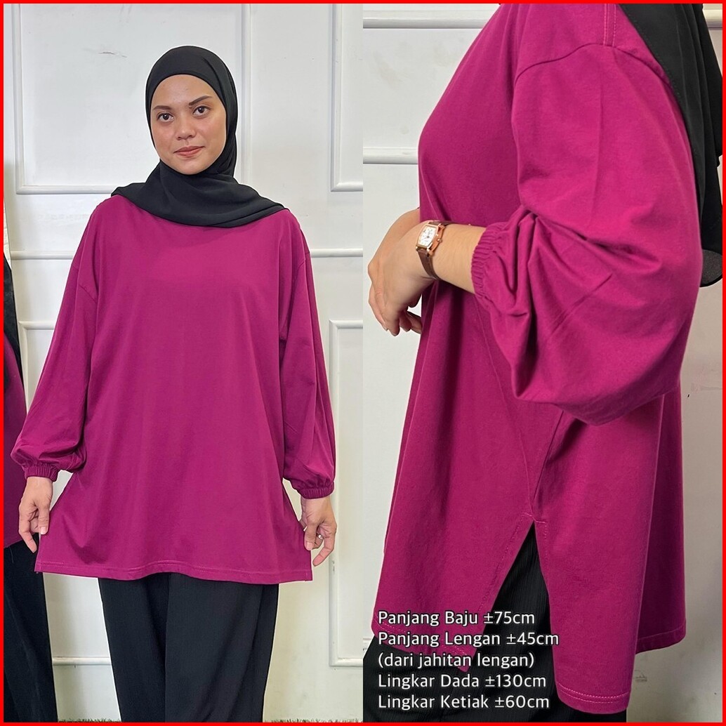 Kaos Wanita Jumbo Lengan Panjang Oversize Blouse Lengan Balon Big Size Ld.120 Ld.140 Busui Friendly Femonritch