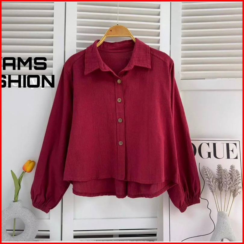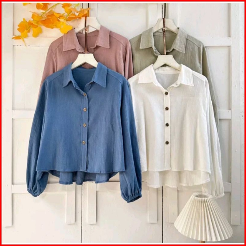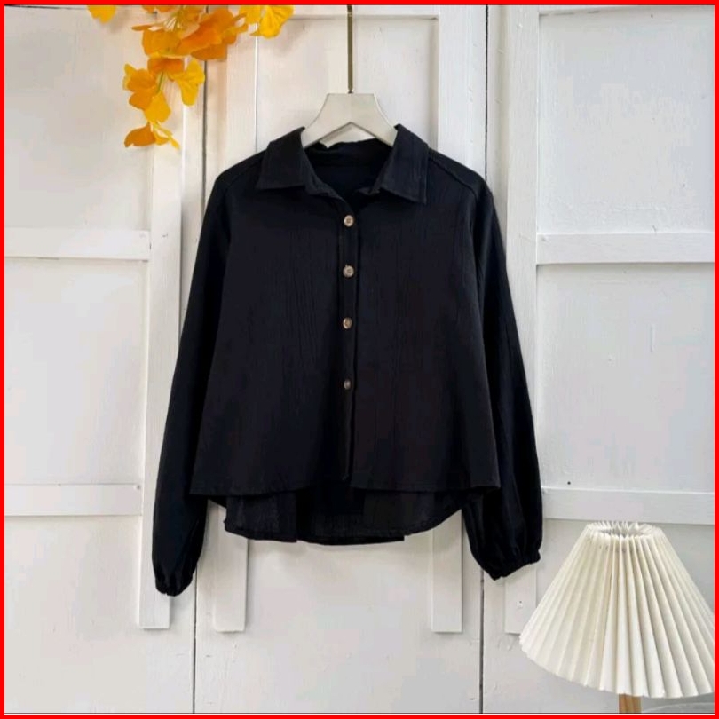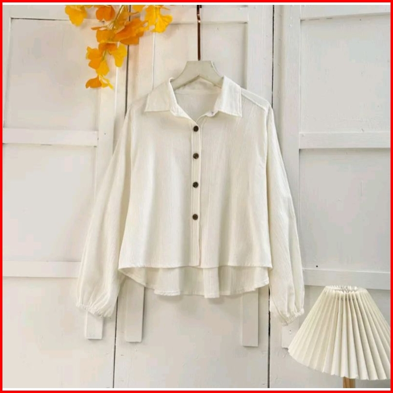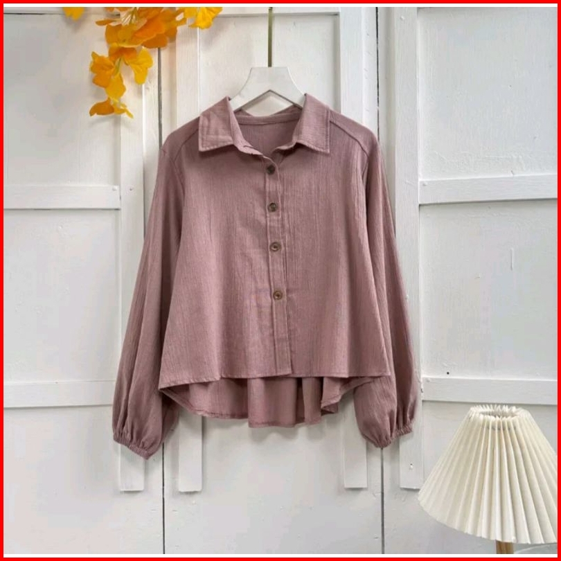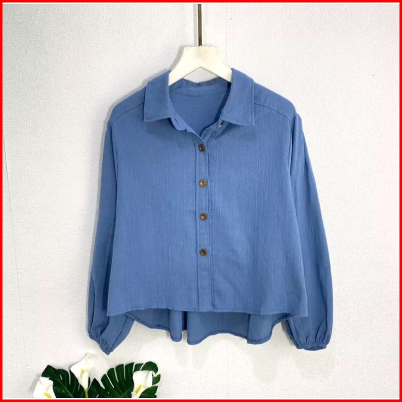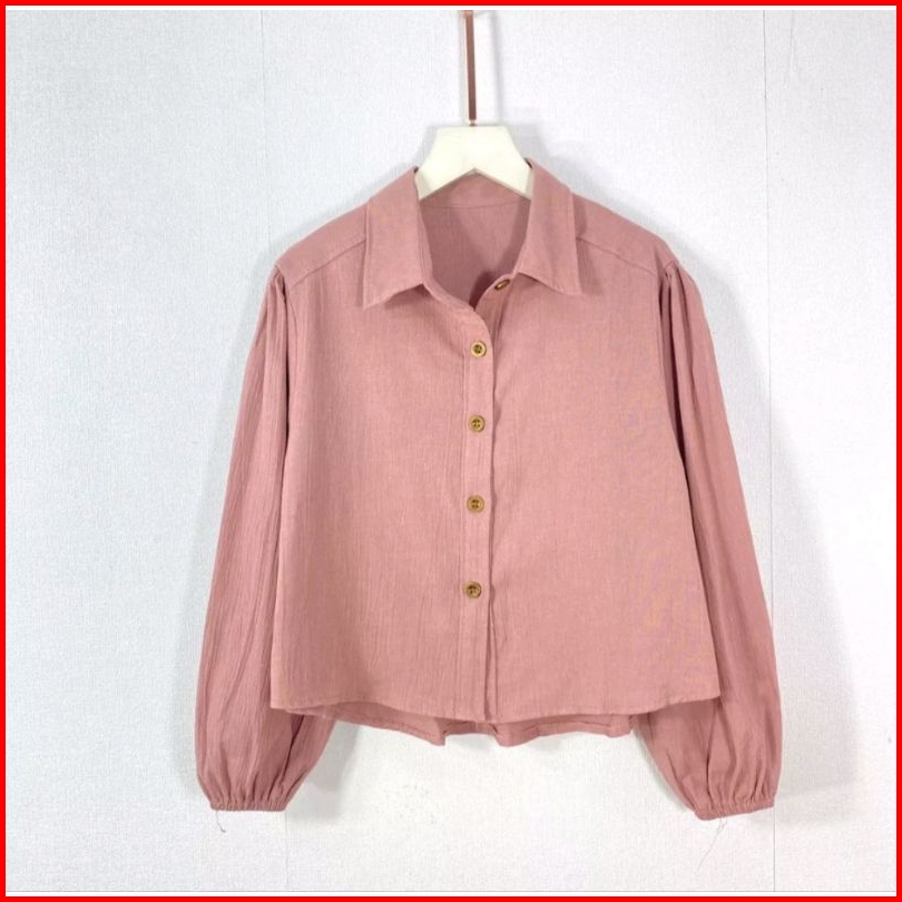 Blus Crop Lengan Balon Crinkle Airflow Atasan Polos Wanita Premium Kekinian