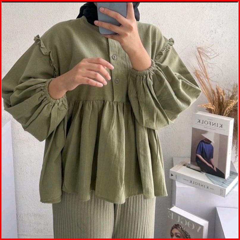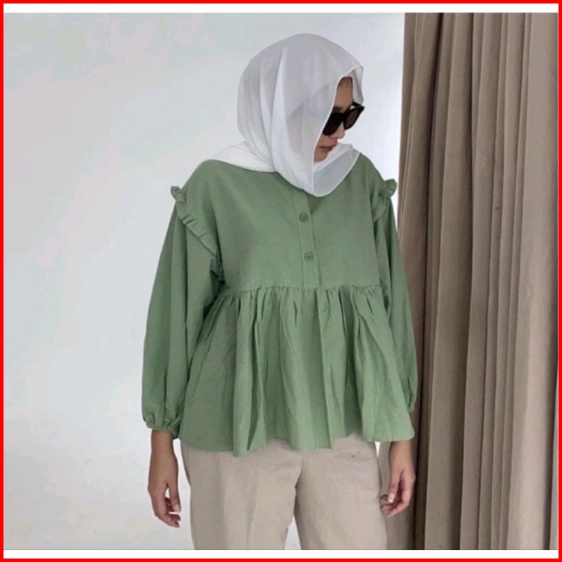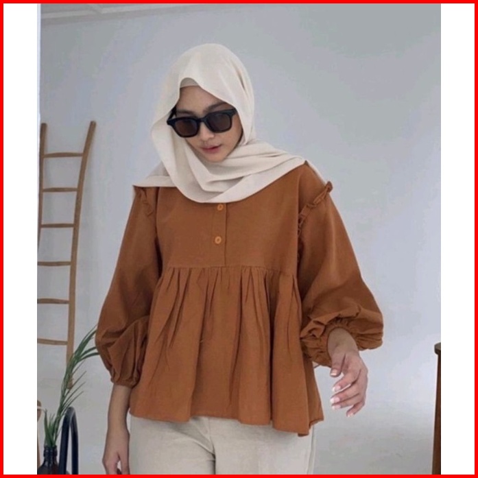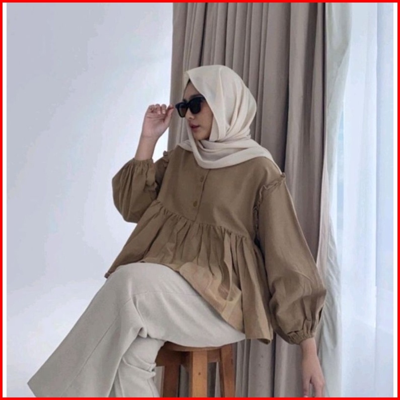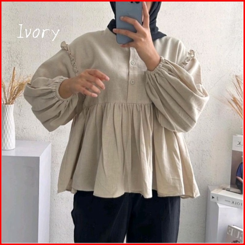Alensa Blouse Linen Casual - Atasan Wanita Lengan Balon