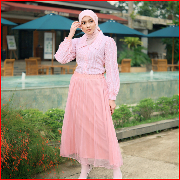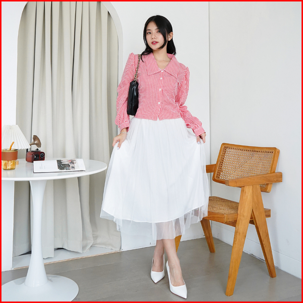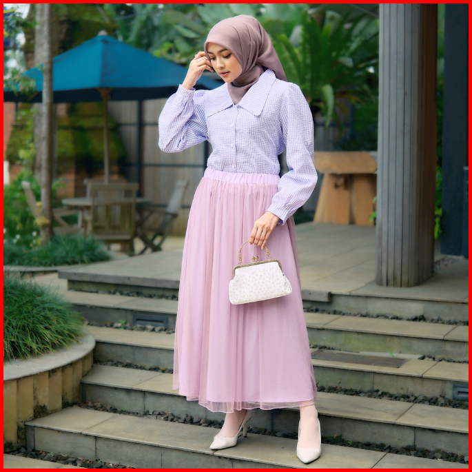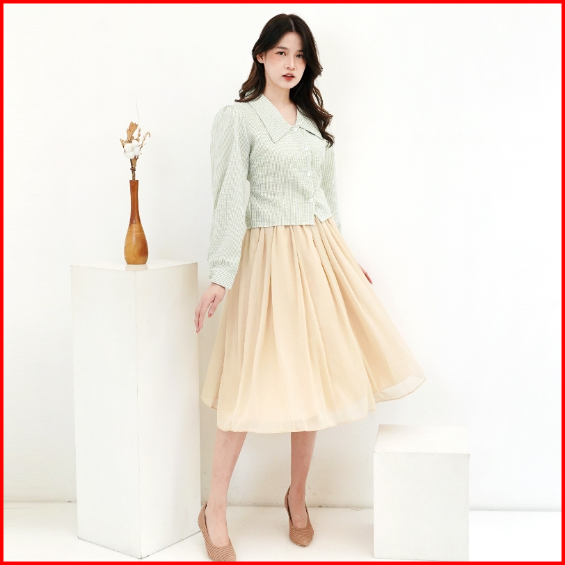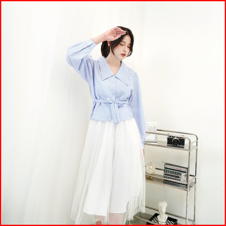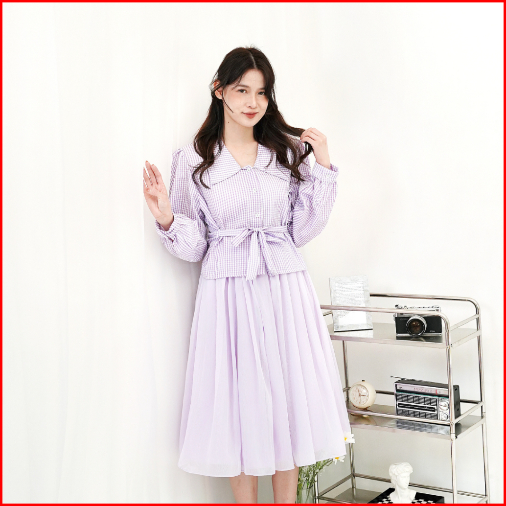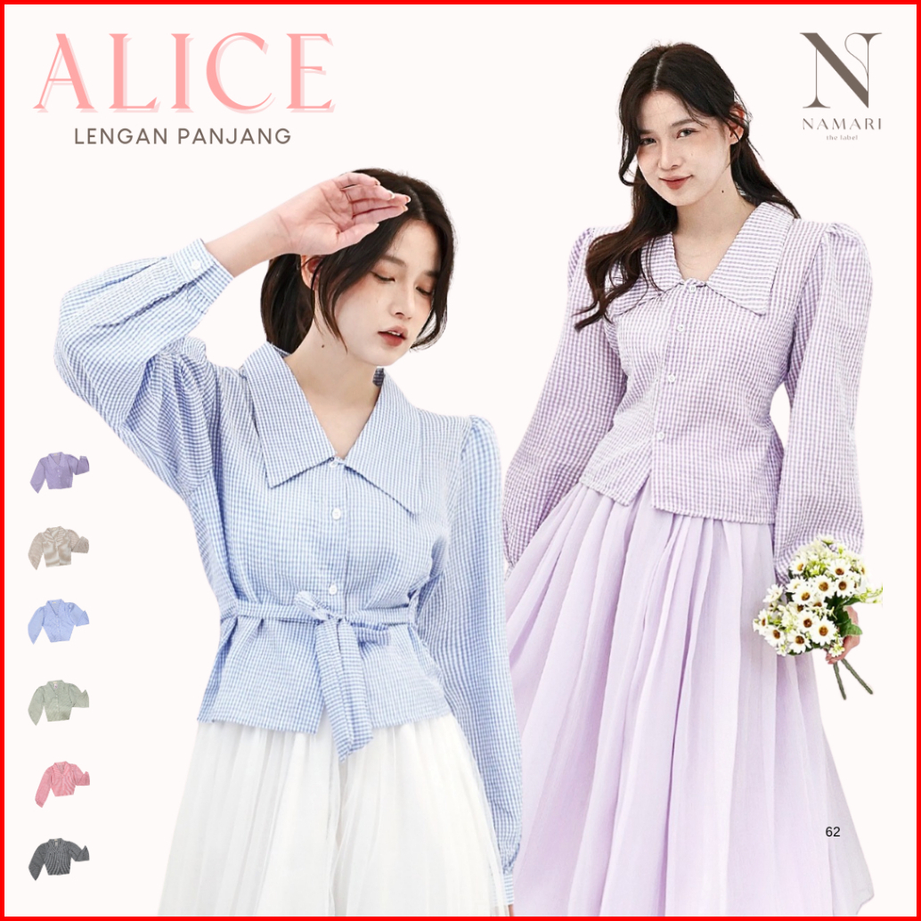 Namari - Alice - Baju Kemeja Formal Lengan Panjang Kerja Kantor Tali Kotak Plaid Korean Wanita