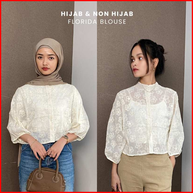 Florida Blouse Atasan Wanita Lengan Panjang Motif Bunga Hijab Friendly
