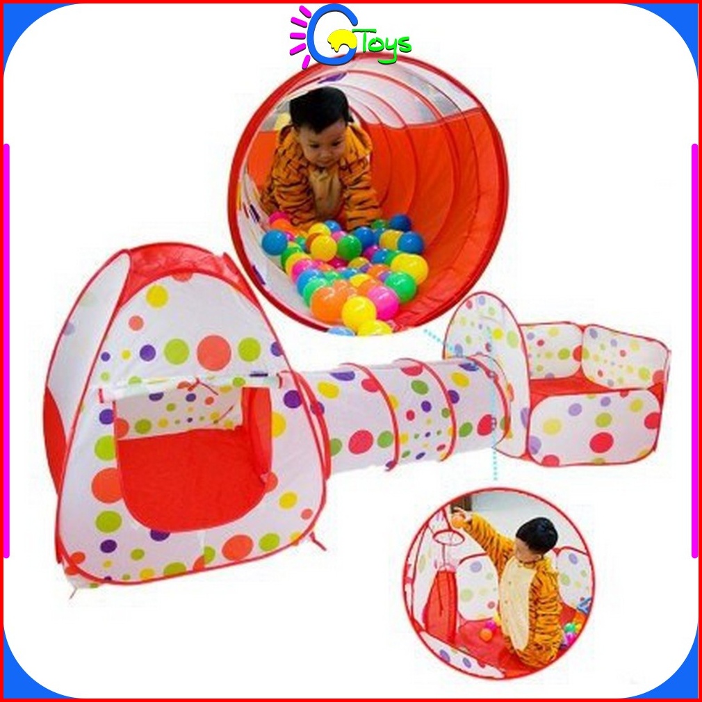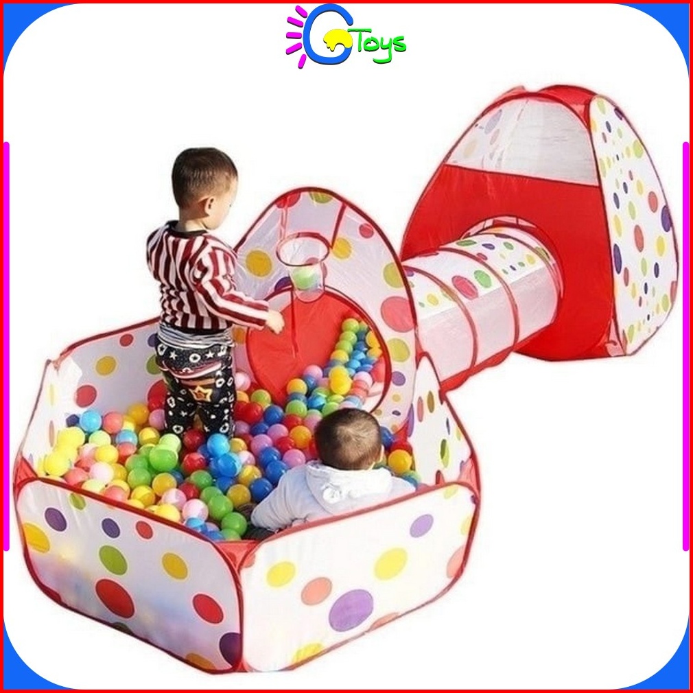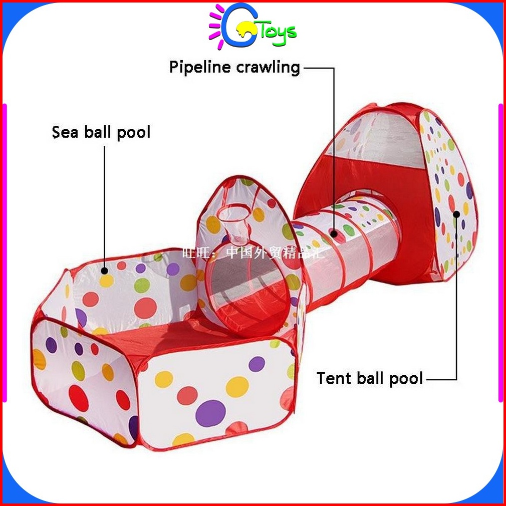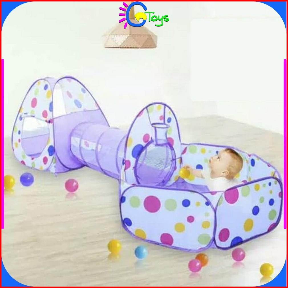 Cr-m6 Mainan Tenda Anak Terowongan 4 In 1 Kolam Ring Basket Mainan Keranjang Mandi Bola Anak