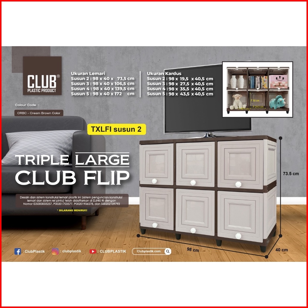 Lemari Plastik Club Flip Jumbo Susun 2 Triple Large Pintu 6 Ukuran Besar