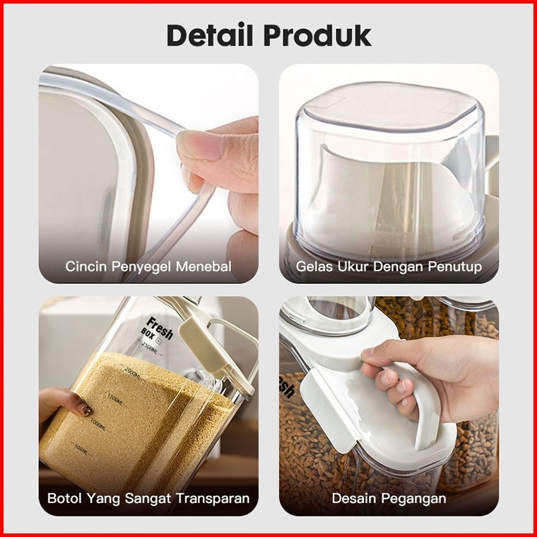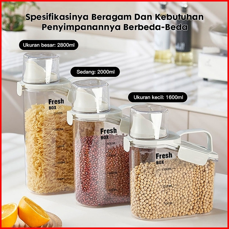 Eatkit Toples Sereal Transparan 2800ml Storage Jar Biji-bijian Penyimpanan Beras Wadah Tempat Minyak