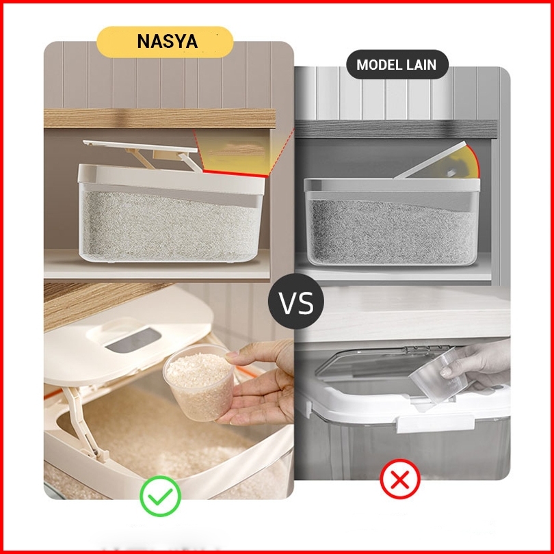 Aphome Kontainer Beras Serbaguna Tempat Beras Kotak Wadah Beras Transparan Free Gelas Takar Rice Container Nasya