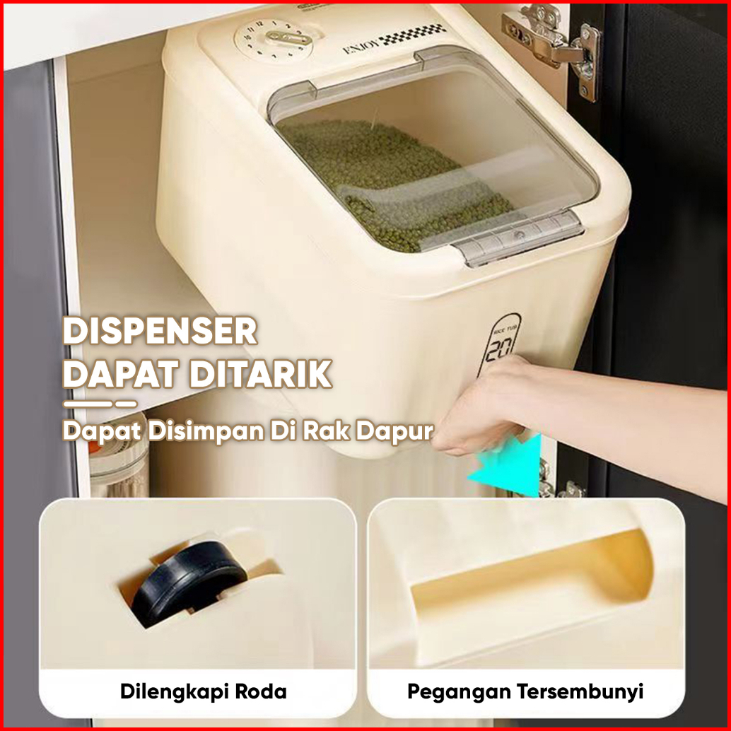 Gogobuy Dispenser Beras 5kg 10kg Tempat Penyimpanan Beras Serbaguna Tempat Beras Anti Kutu Serangga Rice Dispenser Box E