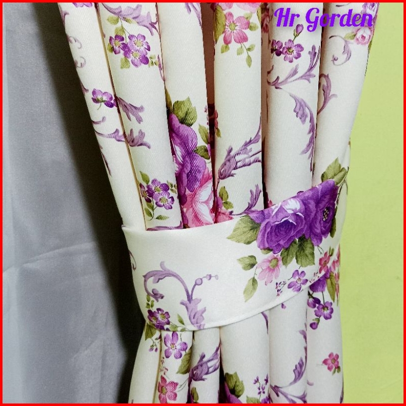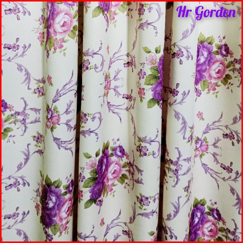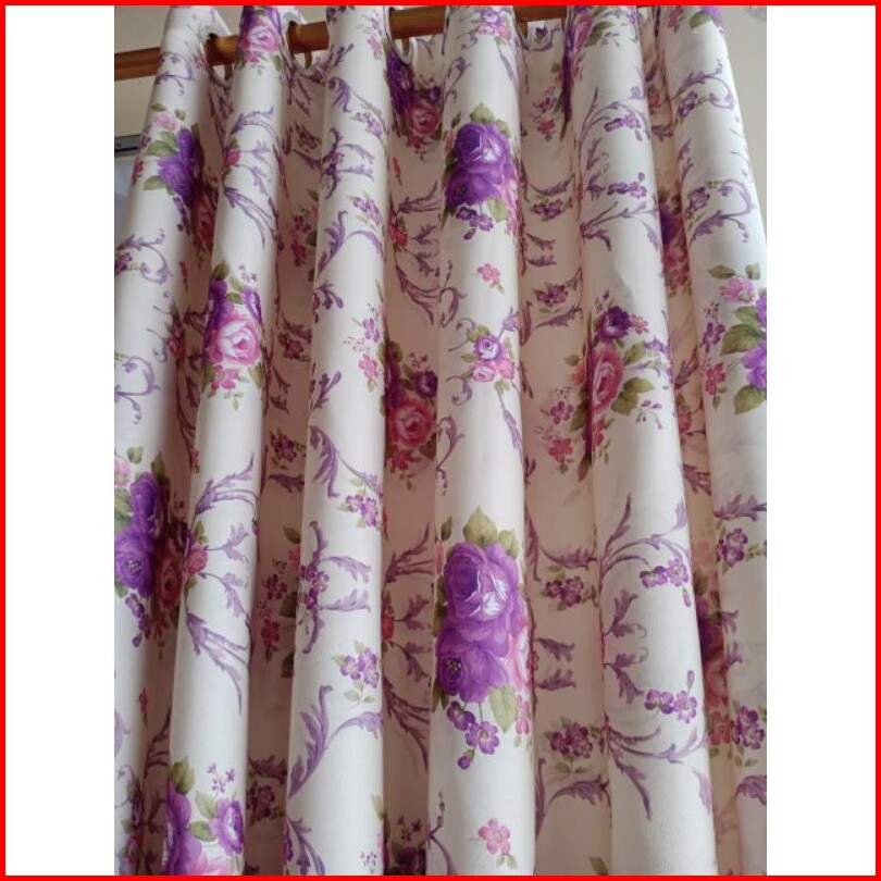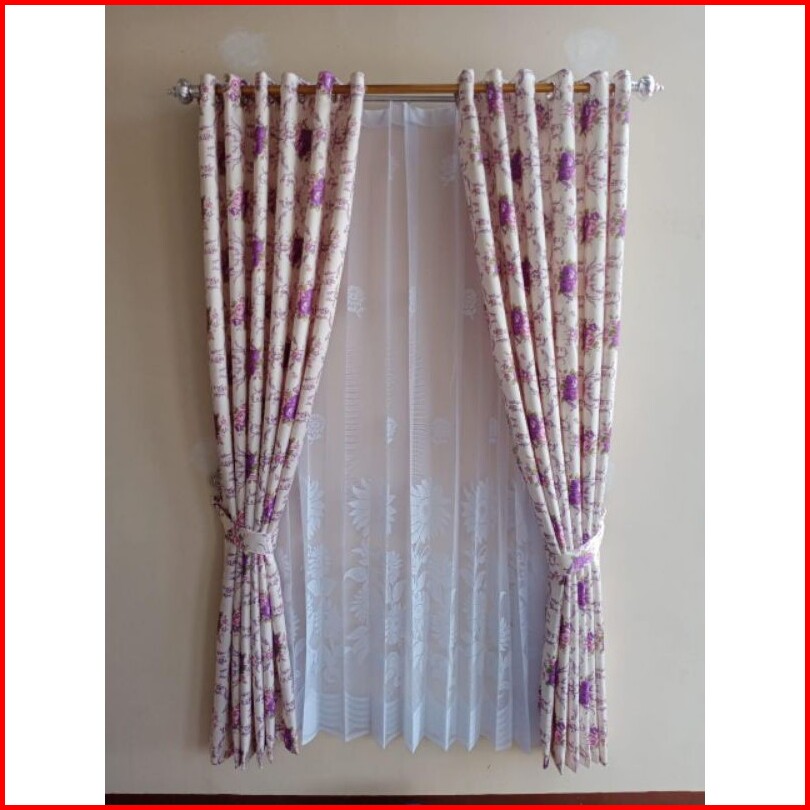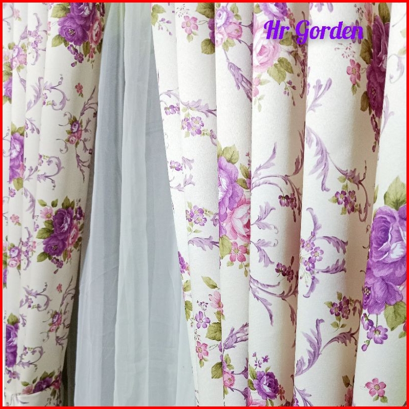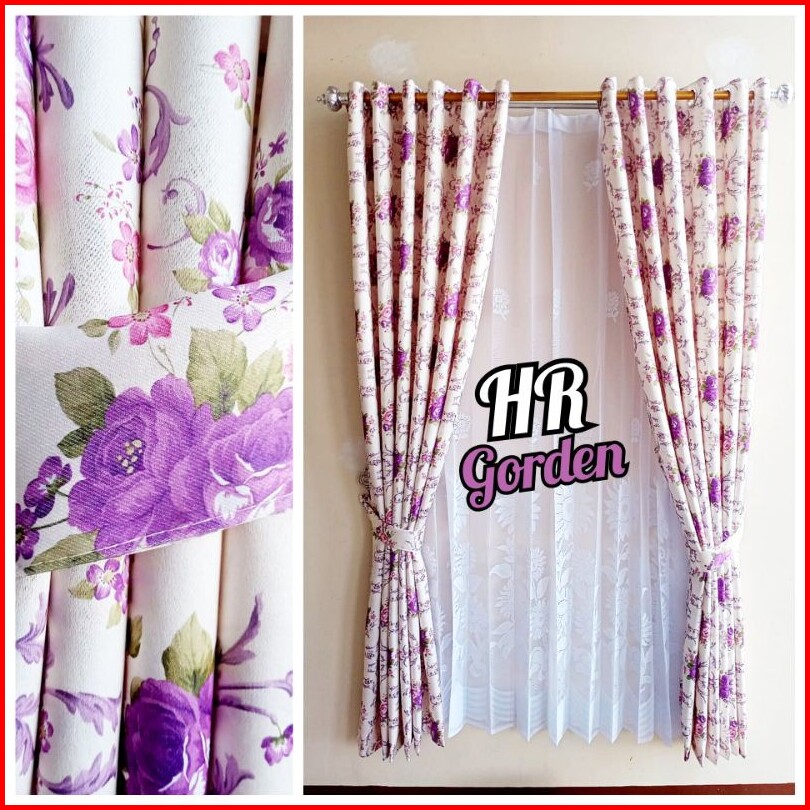 Tirai Gorden Hordeng Korden Pintu Jendela Minimalis Motiv Shaby Chik Bunga Sakura Warna Ungu Model Smokring12 Lubang Rin
