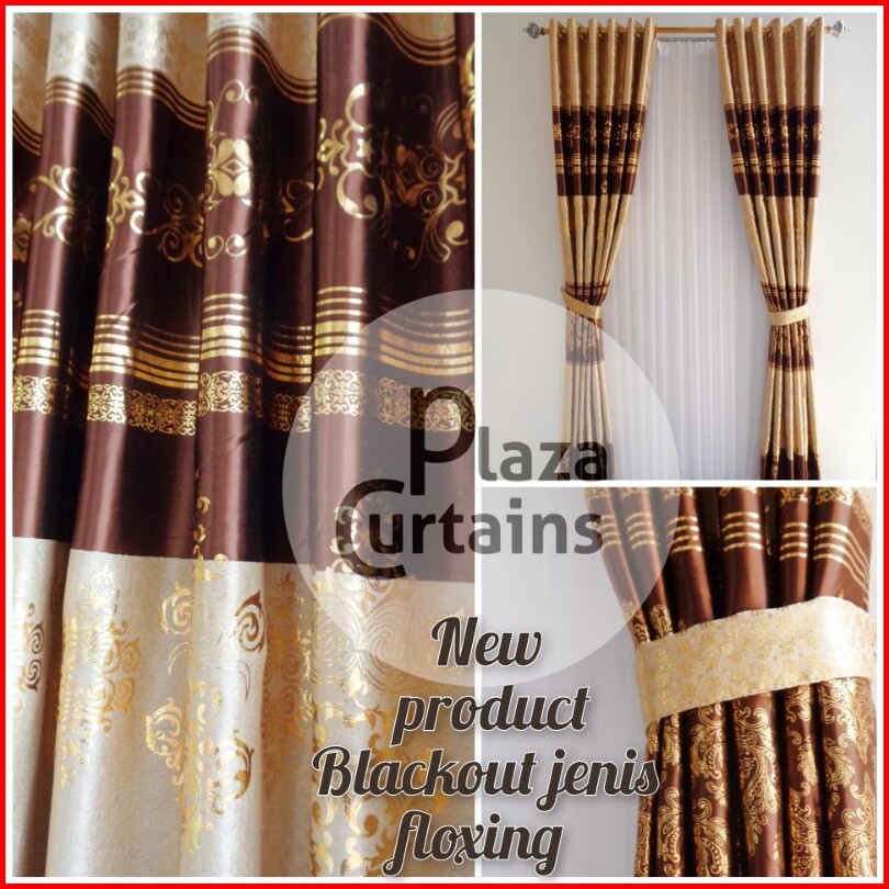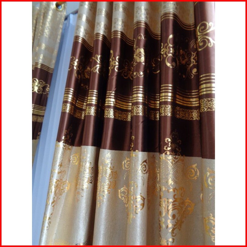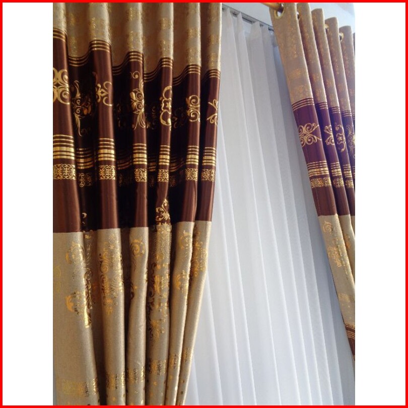Gorden Jendela Murah Mewah Custom Ukuran Bauan Blackout Tebal Premium Warna Coklat Cream Ukiran Mewah Tinta L 140 X T 13