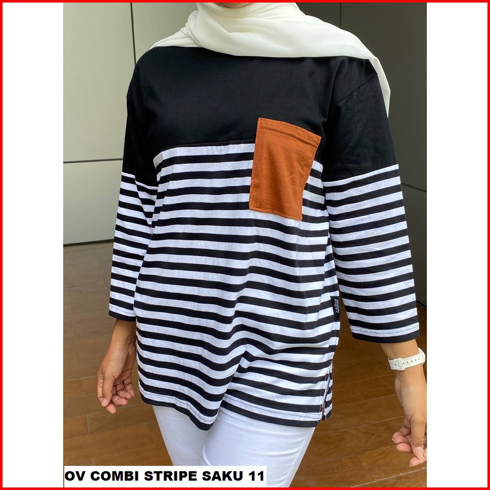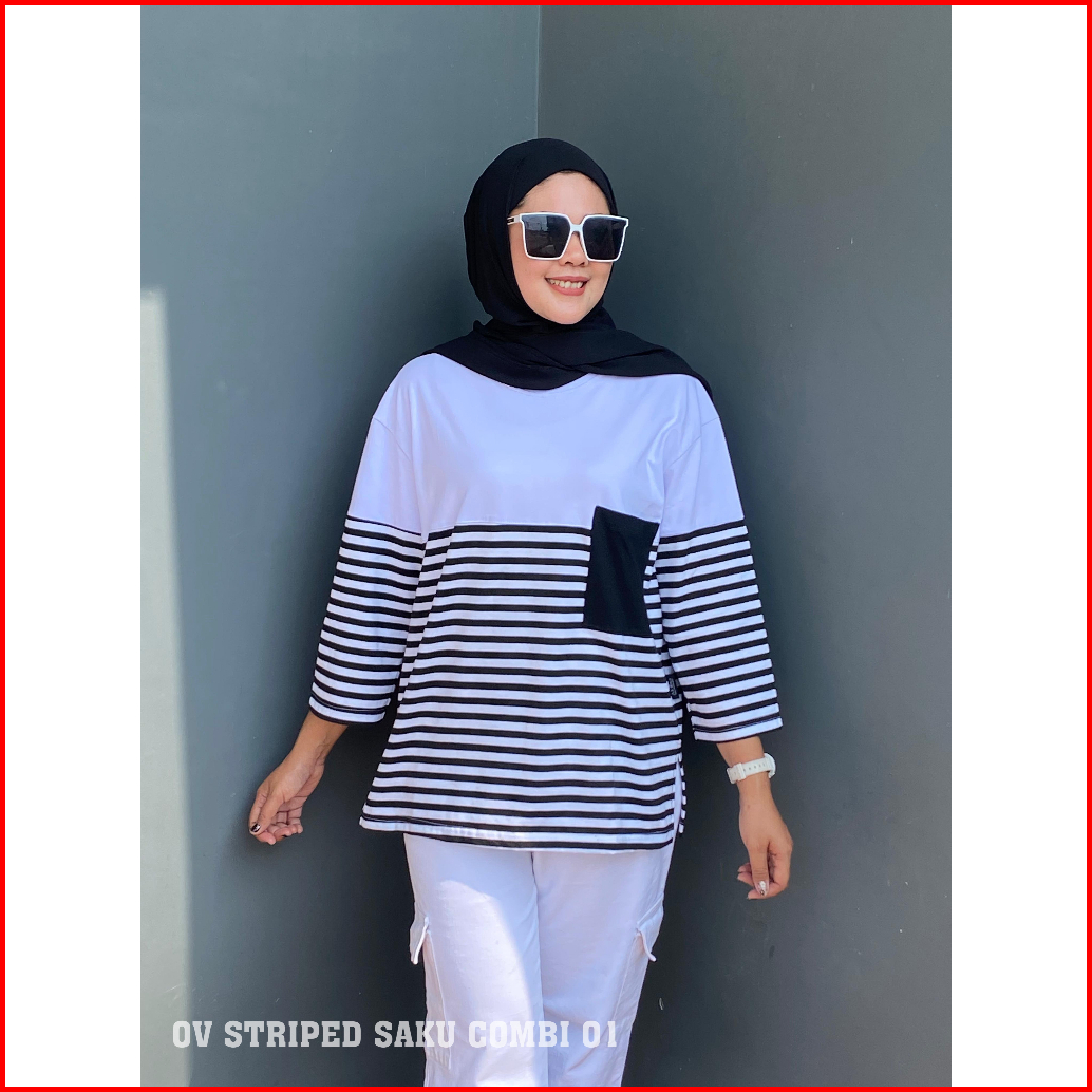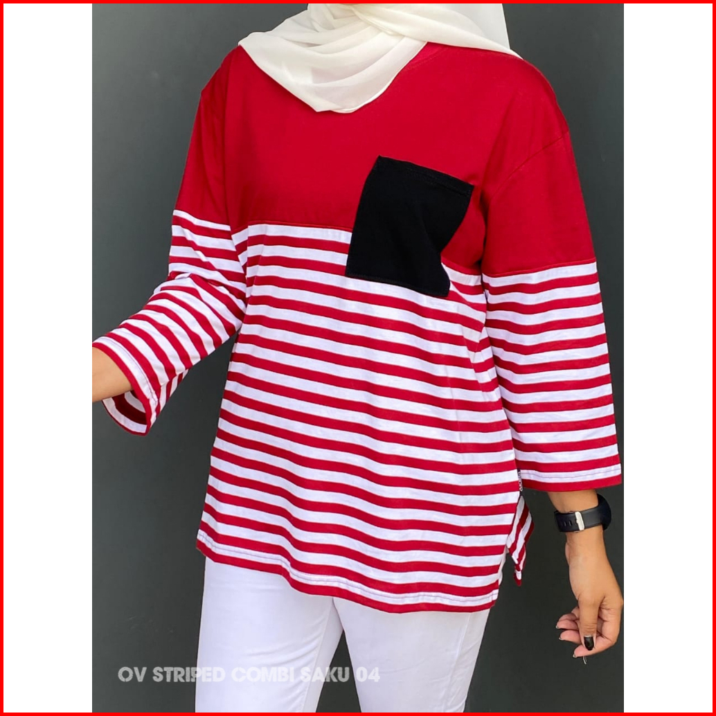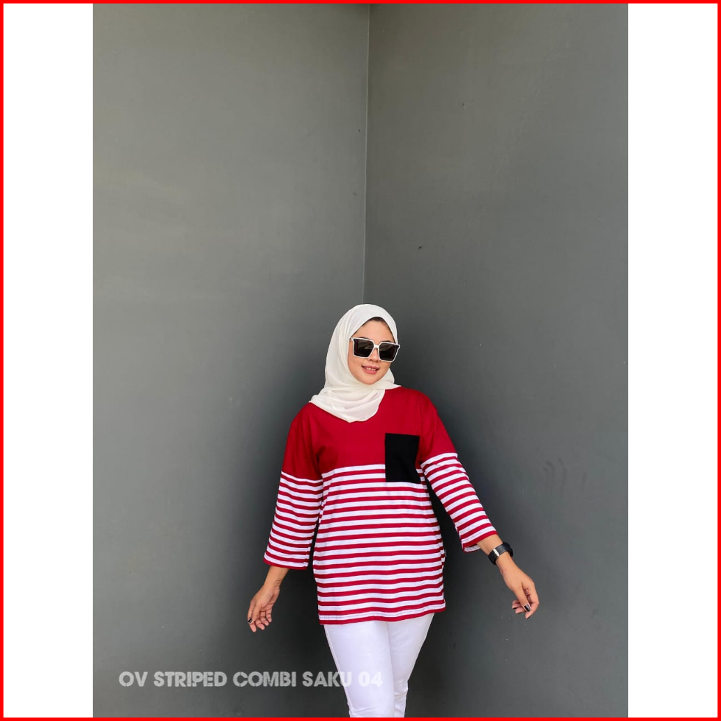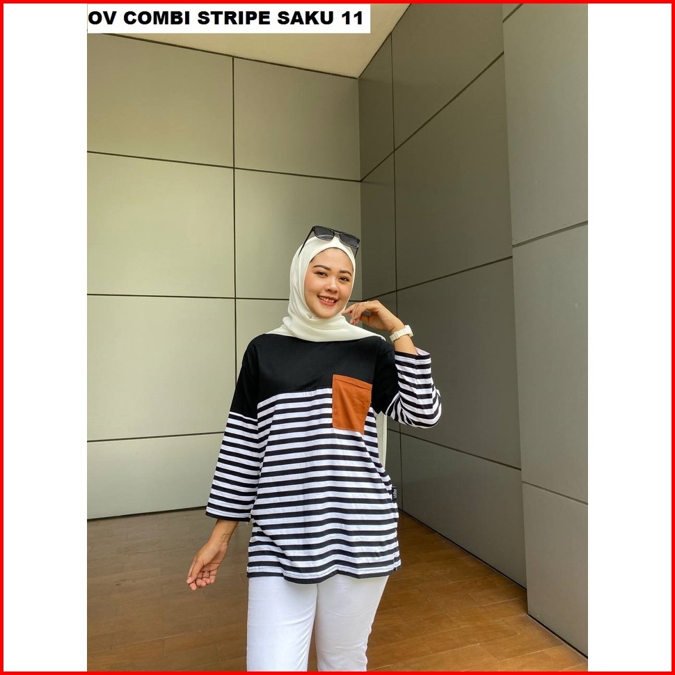 Aldira Kaos Oversize Striped Combi Saku Terbaru2023 Kaos Wanita Baju Lebaran Wanita 2023
