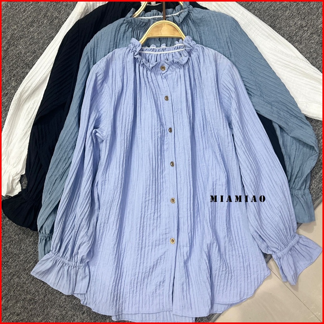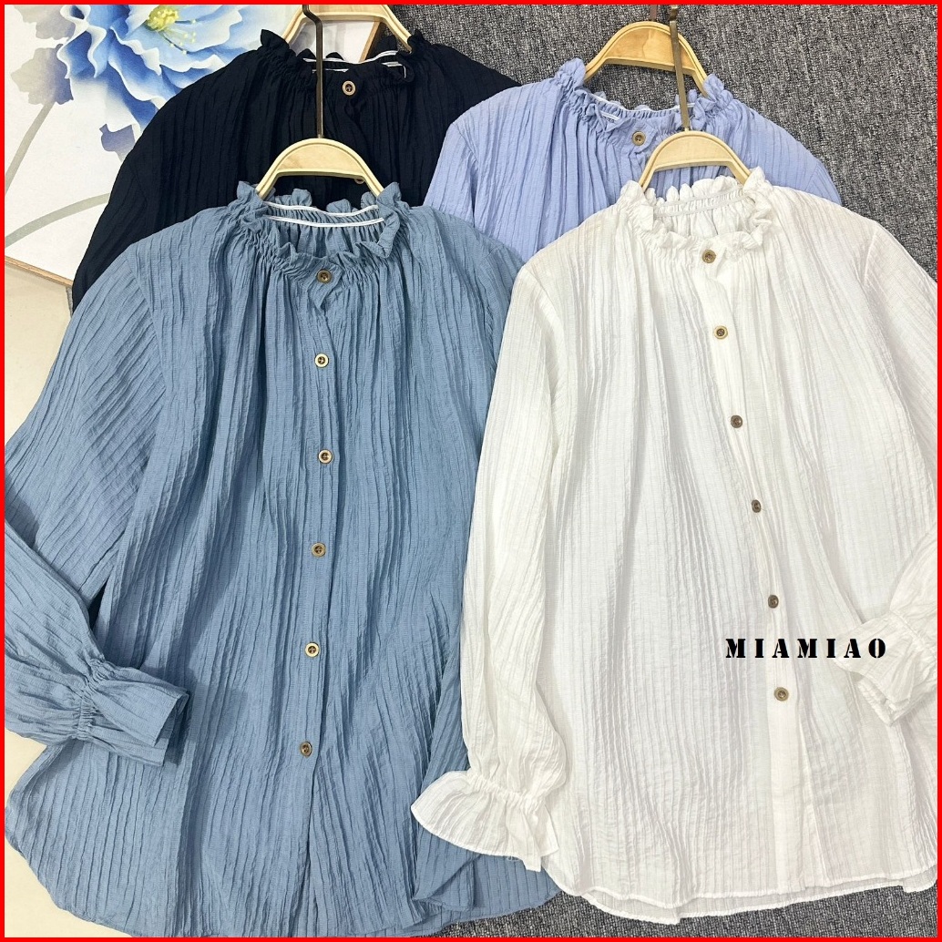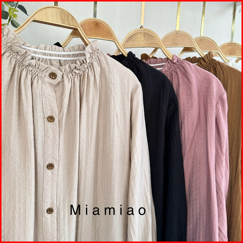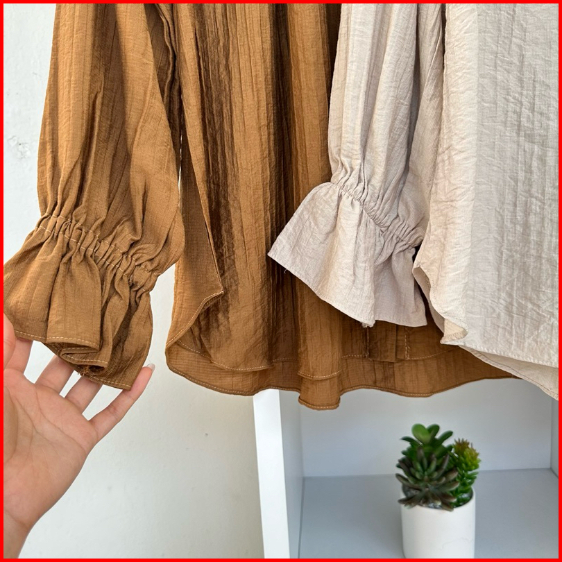 Naura Blouse Crinkle Atasan Wanita Ruffle Neck Women Shirt