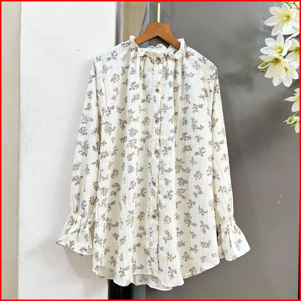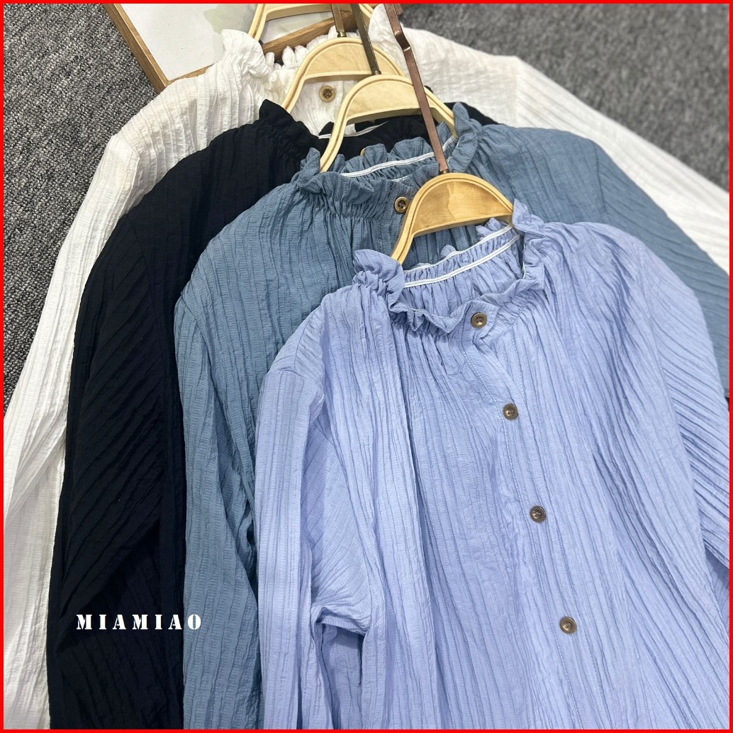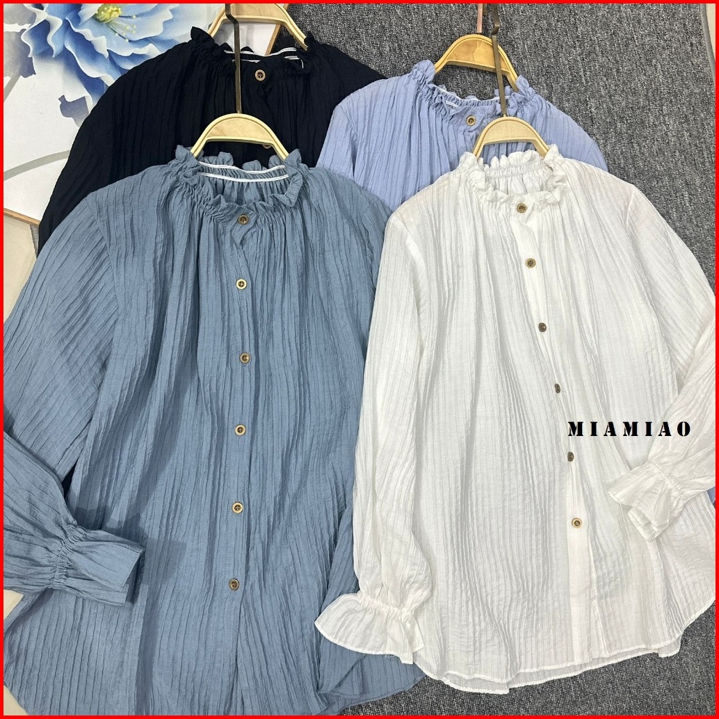 Naura Blouse Crinkle Atasan Wanita Ruffle Neck Women Shirt