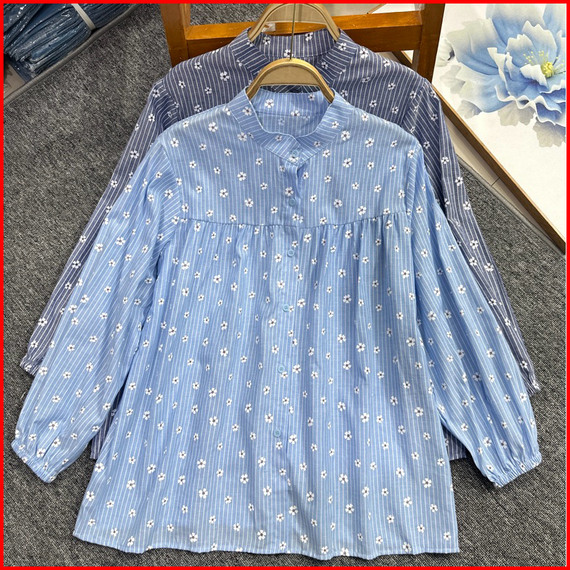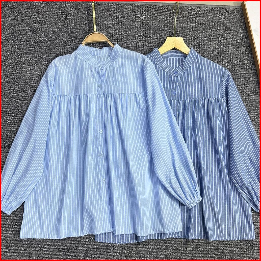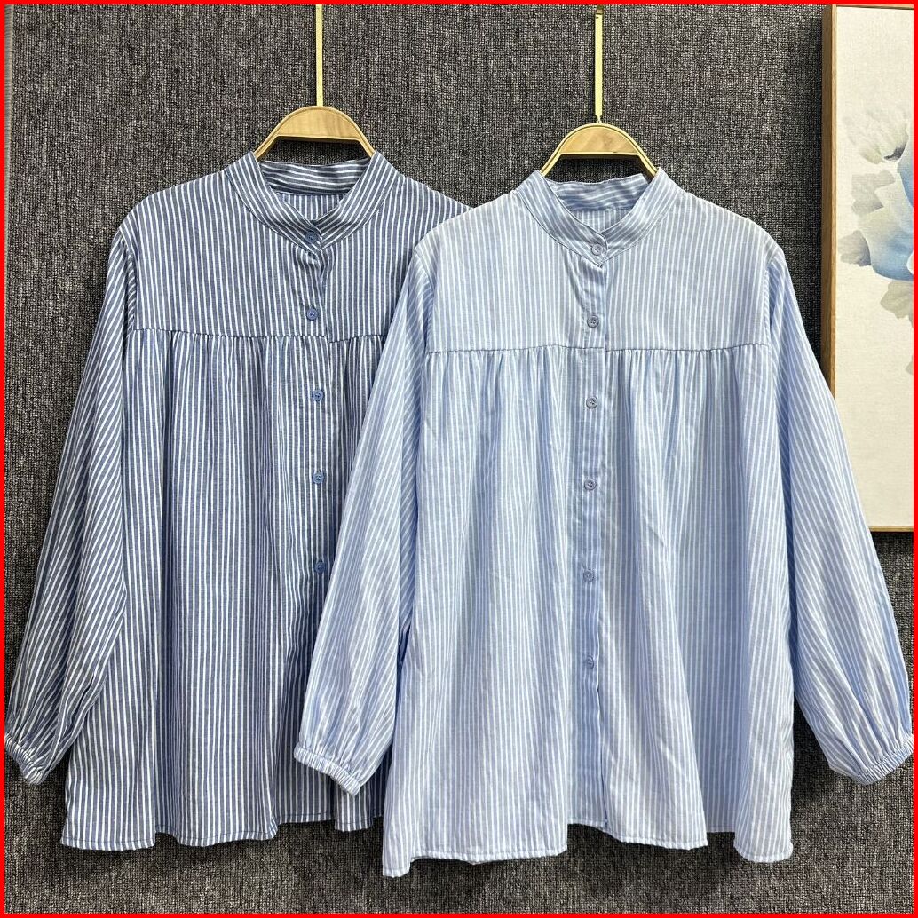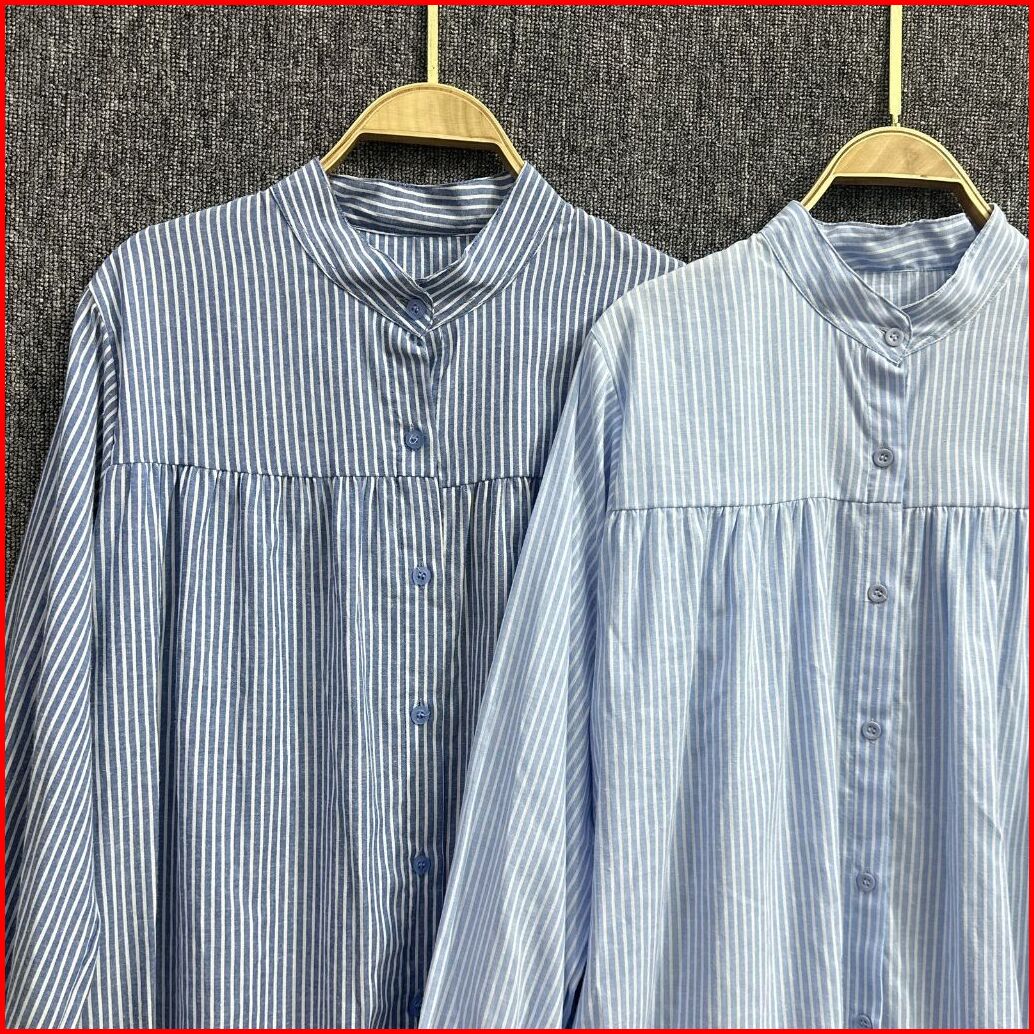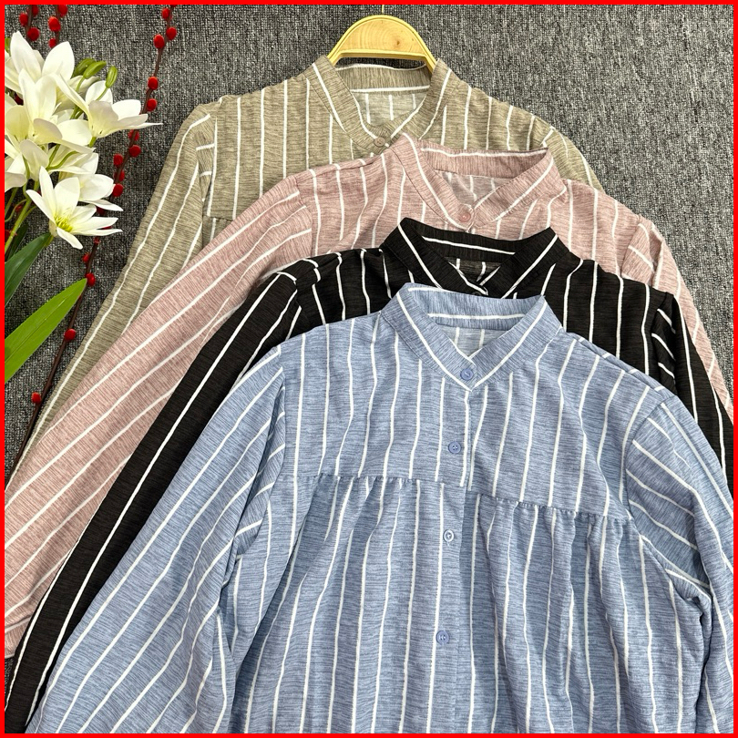 Kemeja Salur Wanita Motif Stripe Katun Yandet