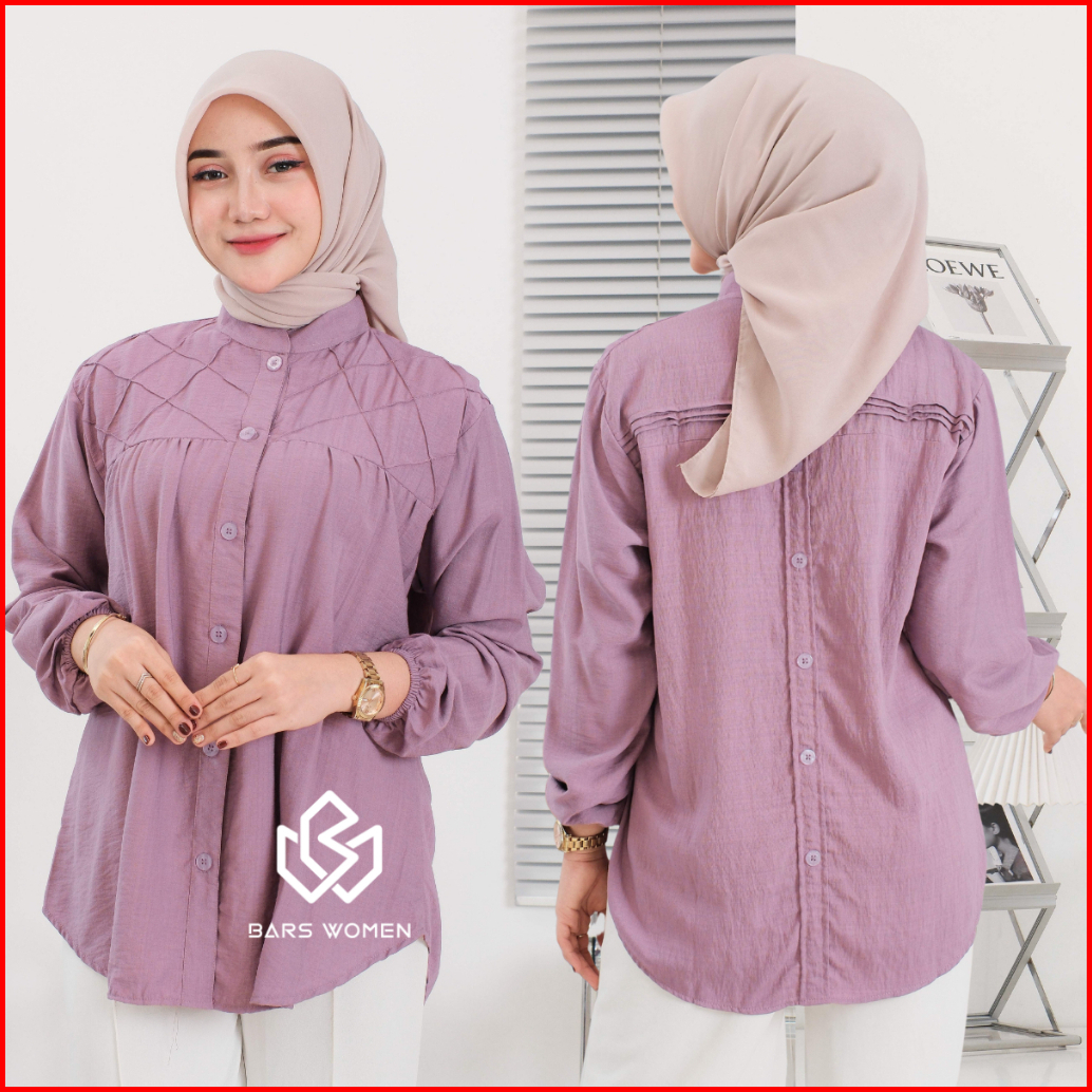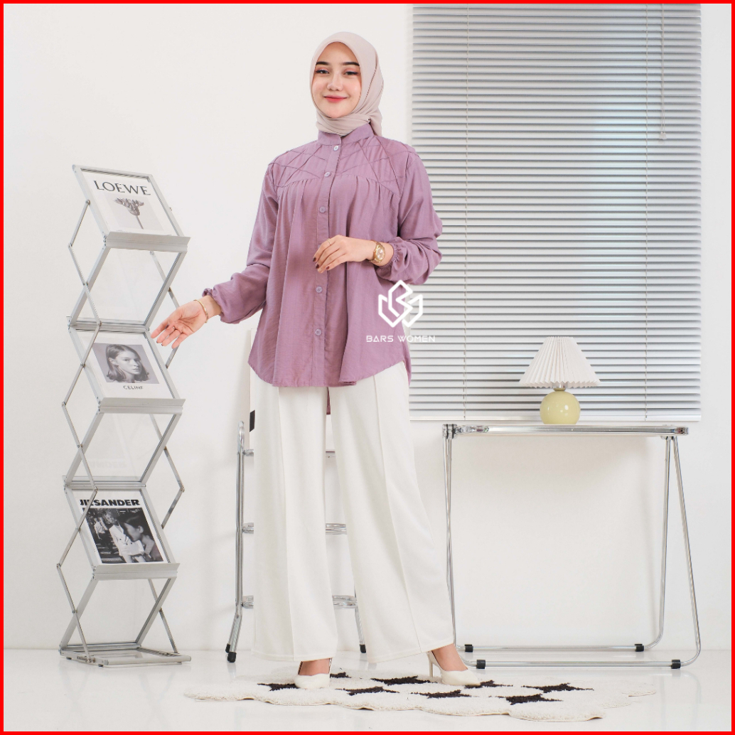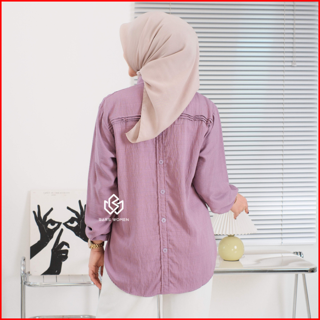 Barswomen Laura Shirt Atasan Kemeja Wanita Lengan Panjang Bahan Polo Linen Premium Outfit Cewek Remaja Kekinian