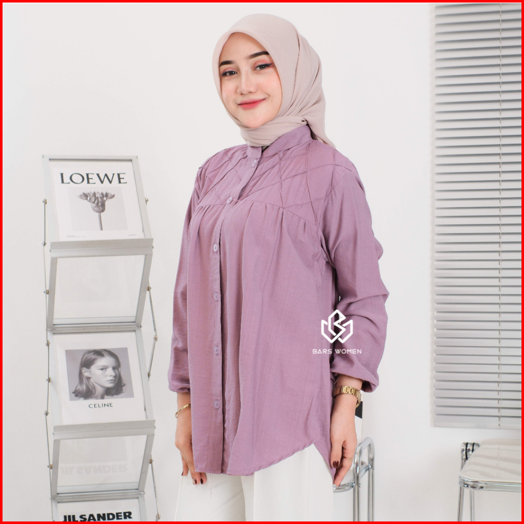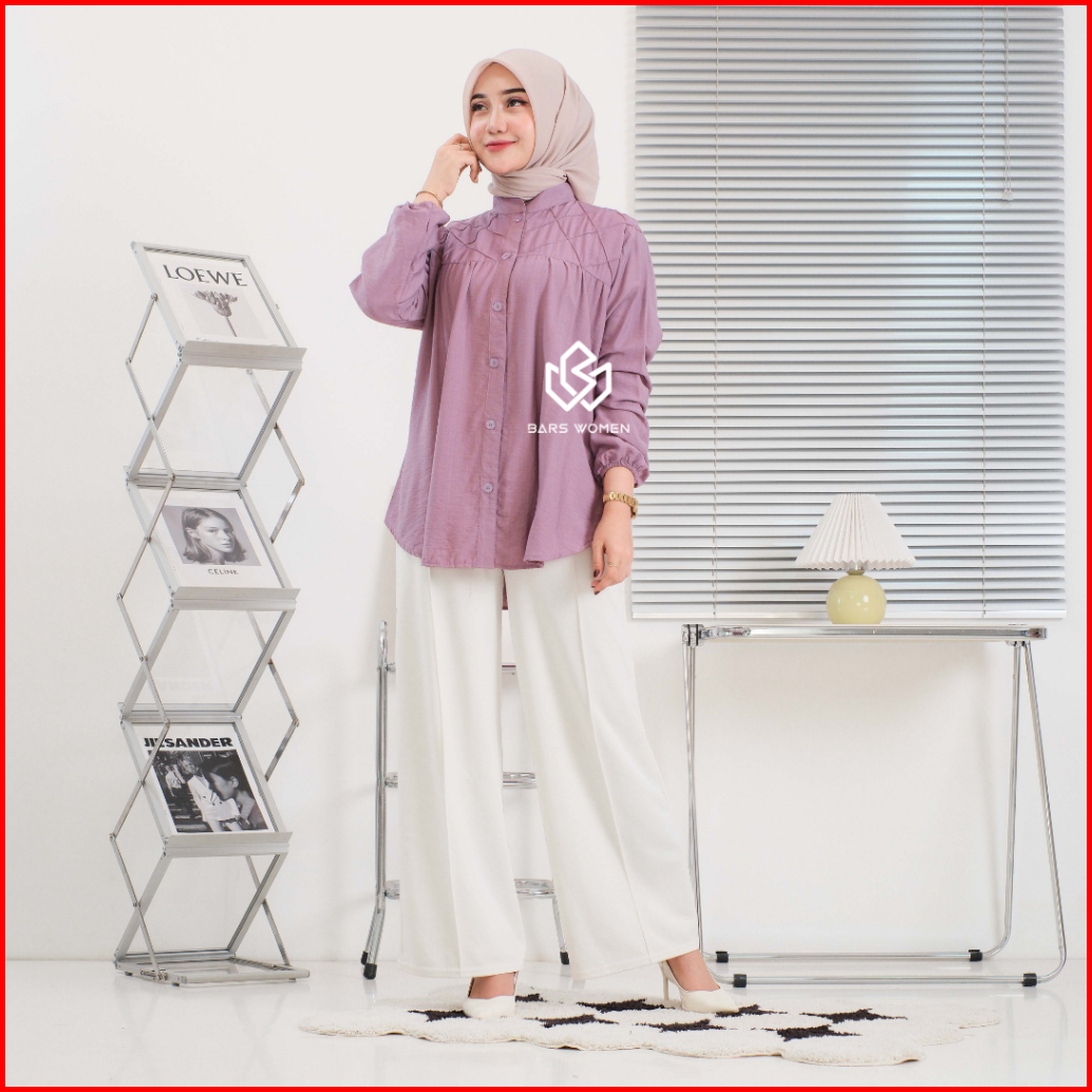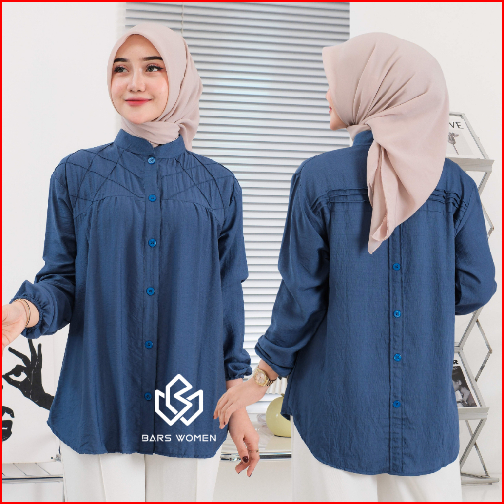 Barswomen Laura Shirt Atasan Kemeja Wanita Lengan Panjang Bahan Polo Linen Premium Outfit Cewek Remaja Kekinian