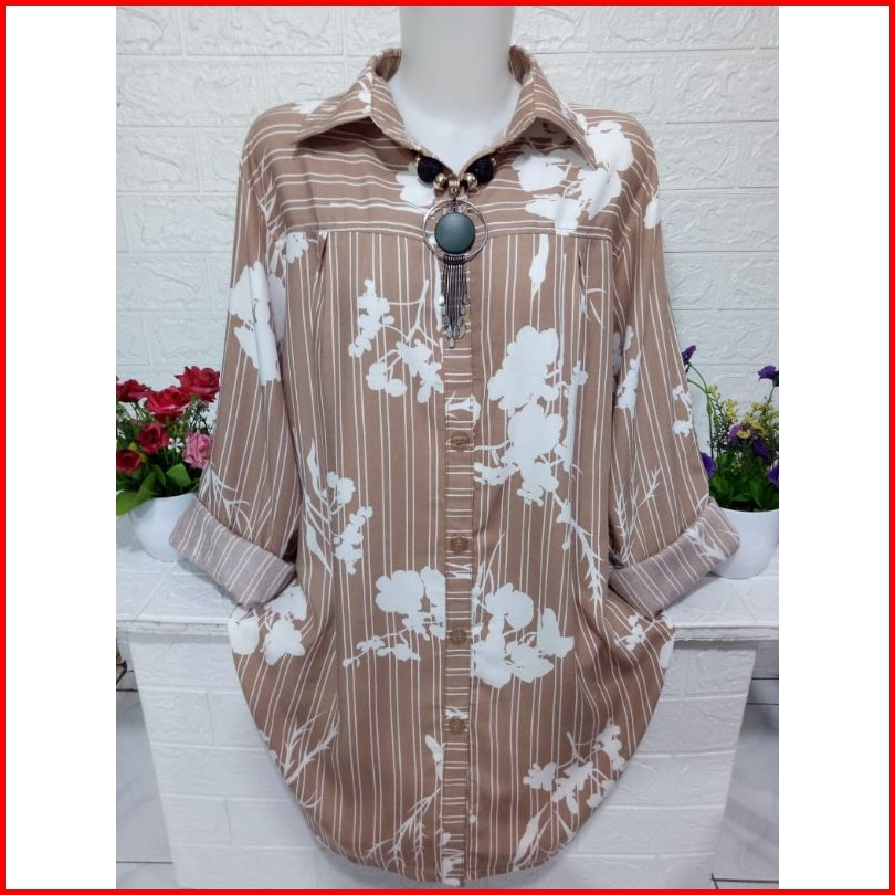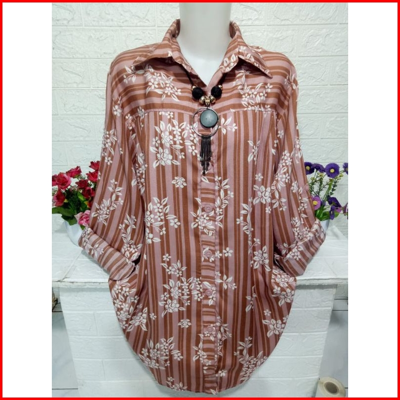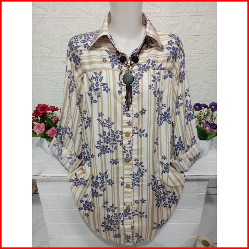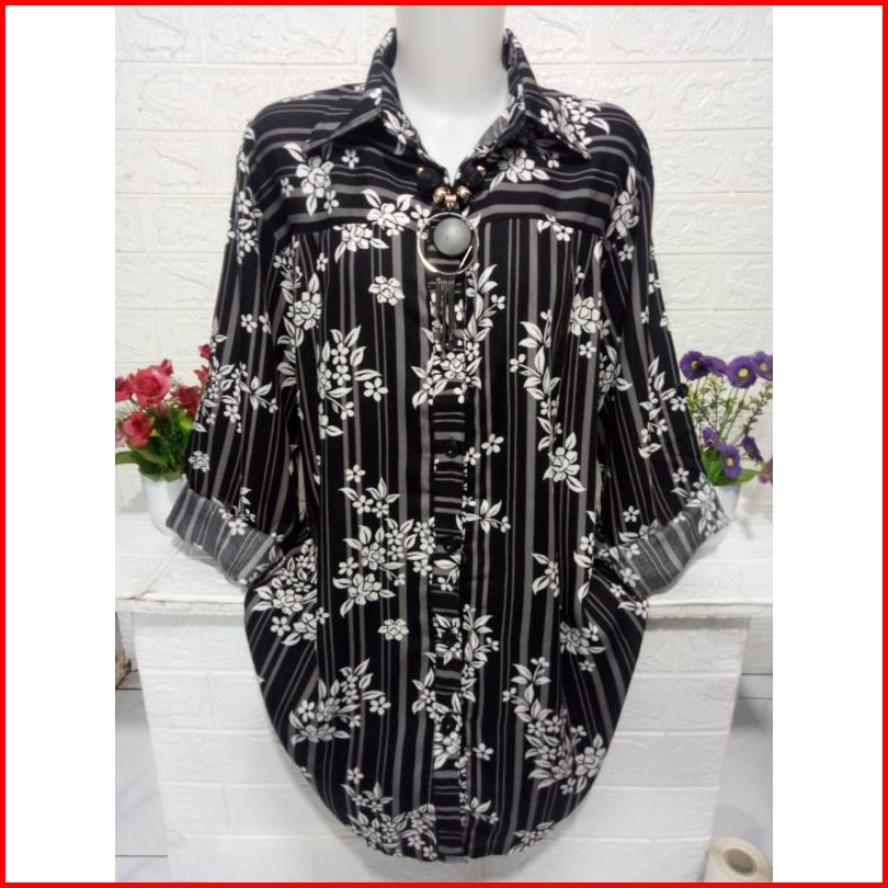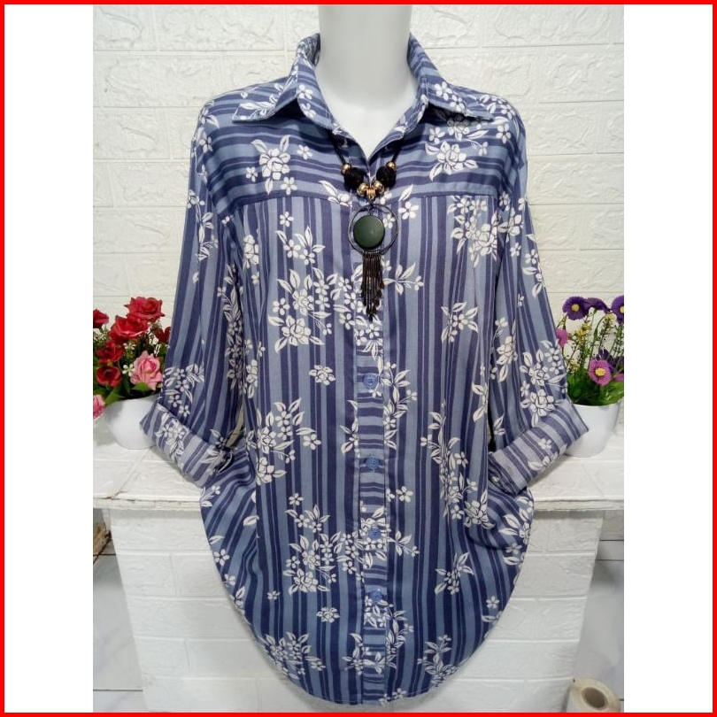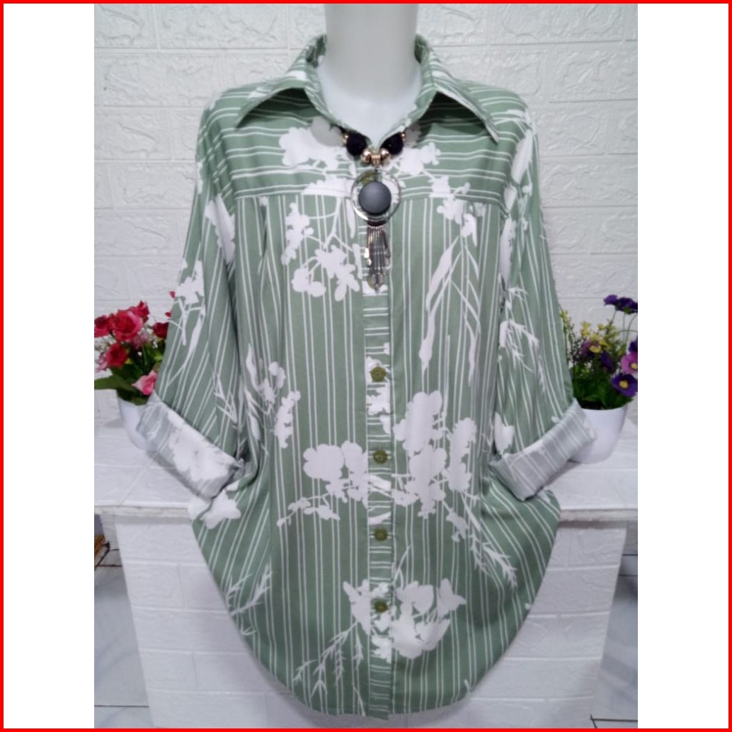 Atasan Kemeja Cewek Bahan Rayon Adem Baju Lengan Panjang Motif Kekinian A341