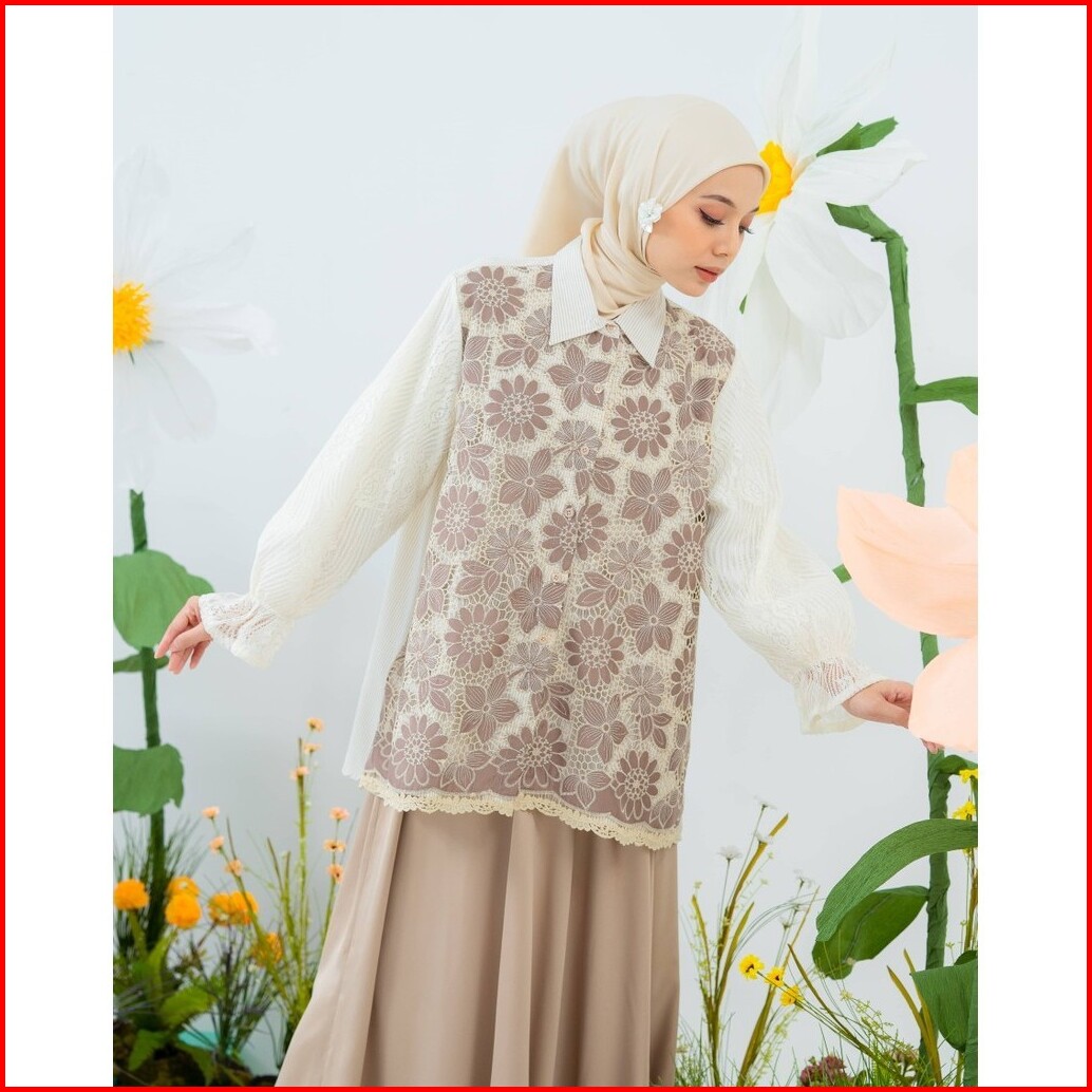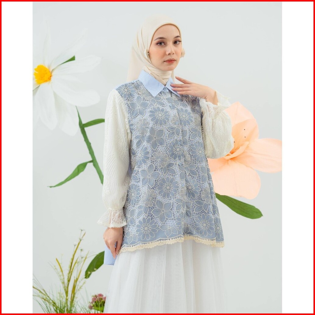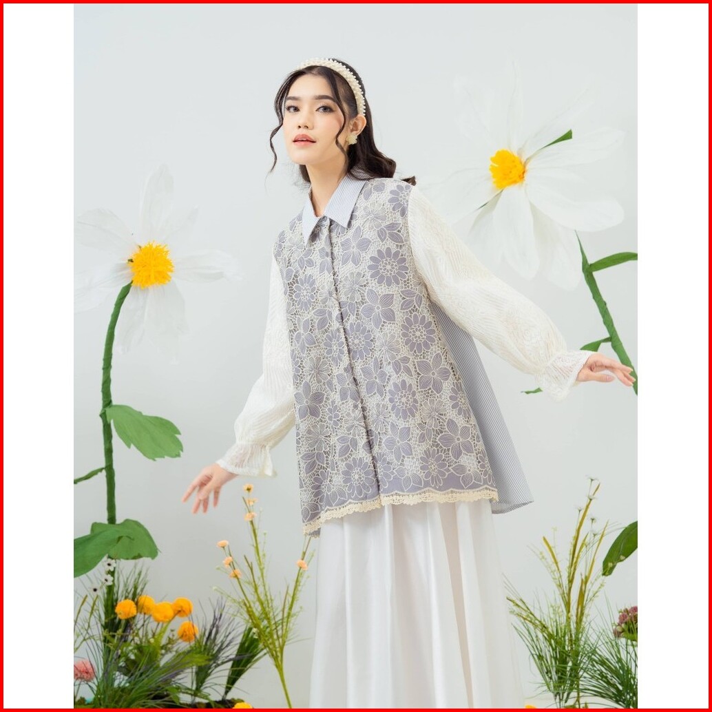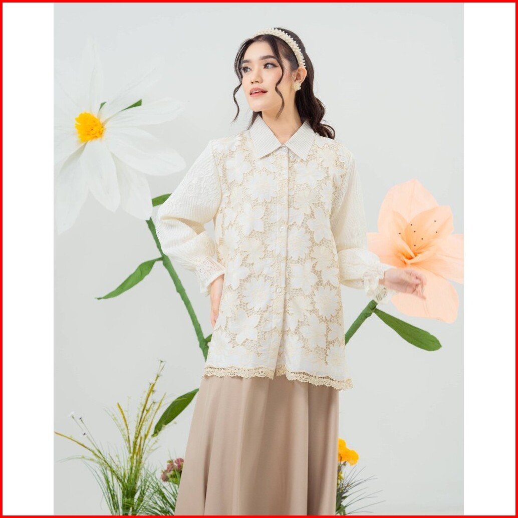 Mayoutfit Kana Shirt Kemeja Wanita Exclusive Lace Series Brukat Kombinasi Katun