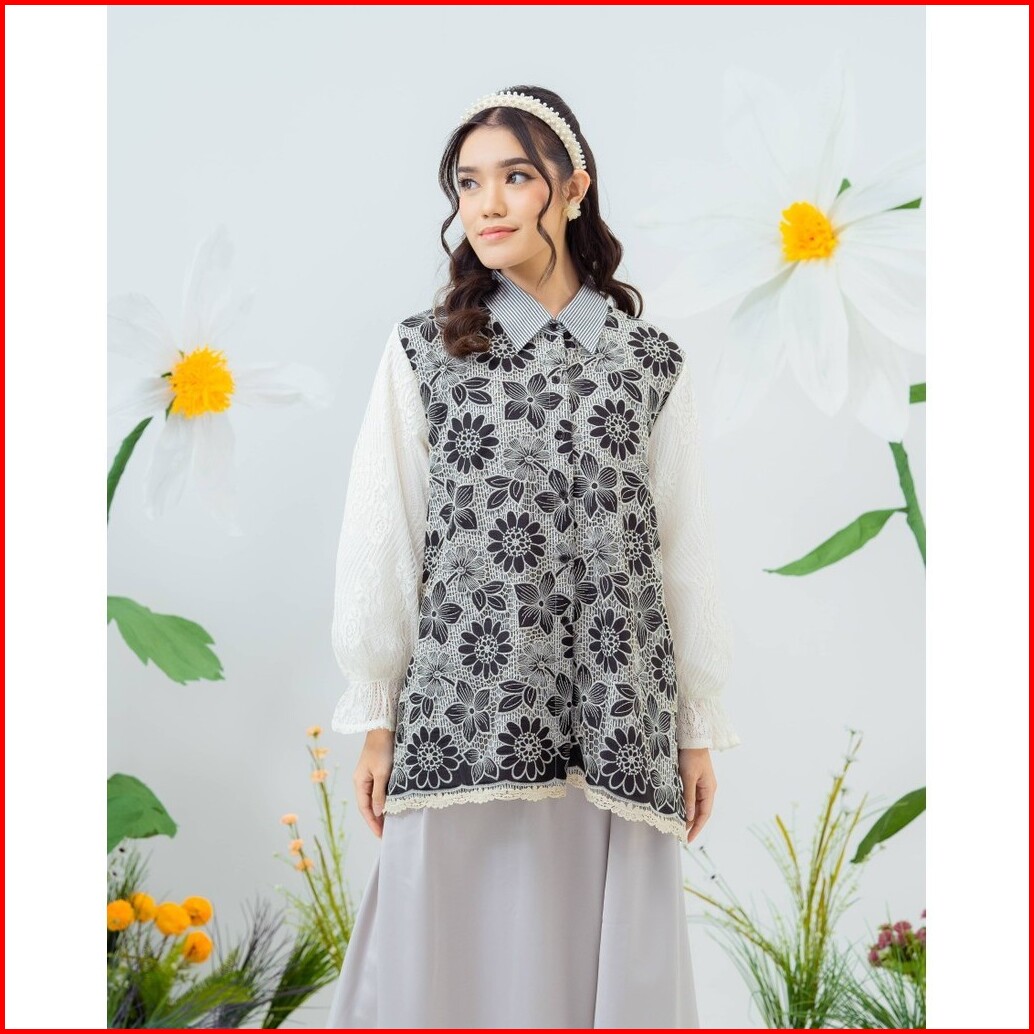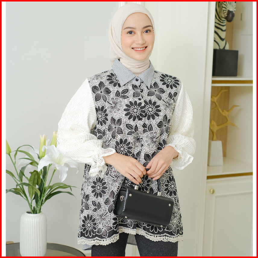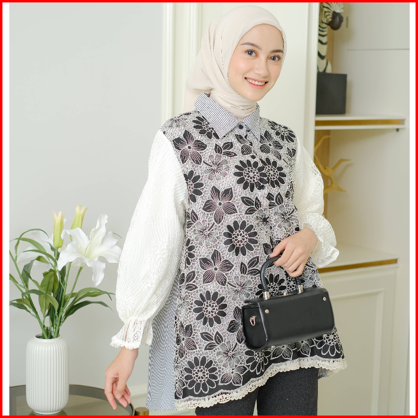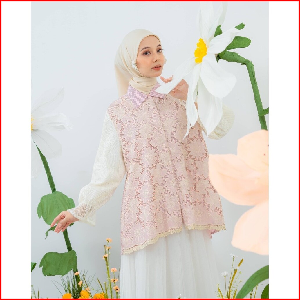 Mayoutfit Kana Shirt Kemeja Wanita Exclusive Lace Series Brukat Kombinasi Katun