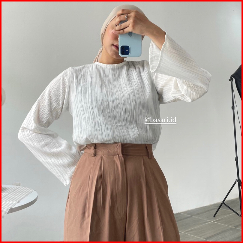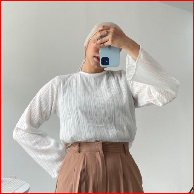 Milly Blouse - Blouse Broken White - Blouse Navy - Blouse Pink - Bahan Texture - Bahan Lady Crush