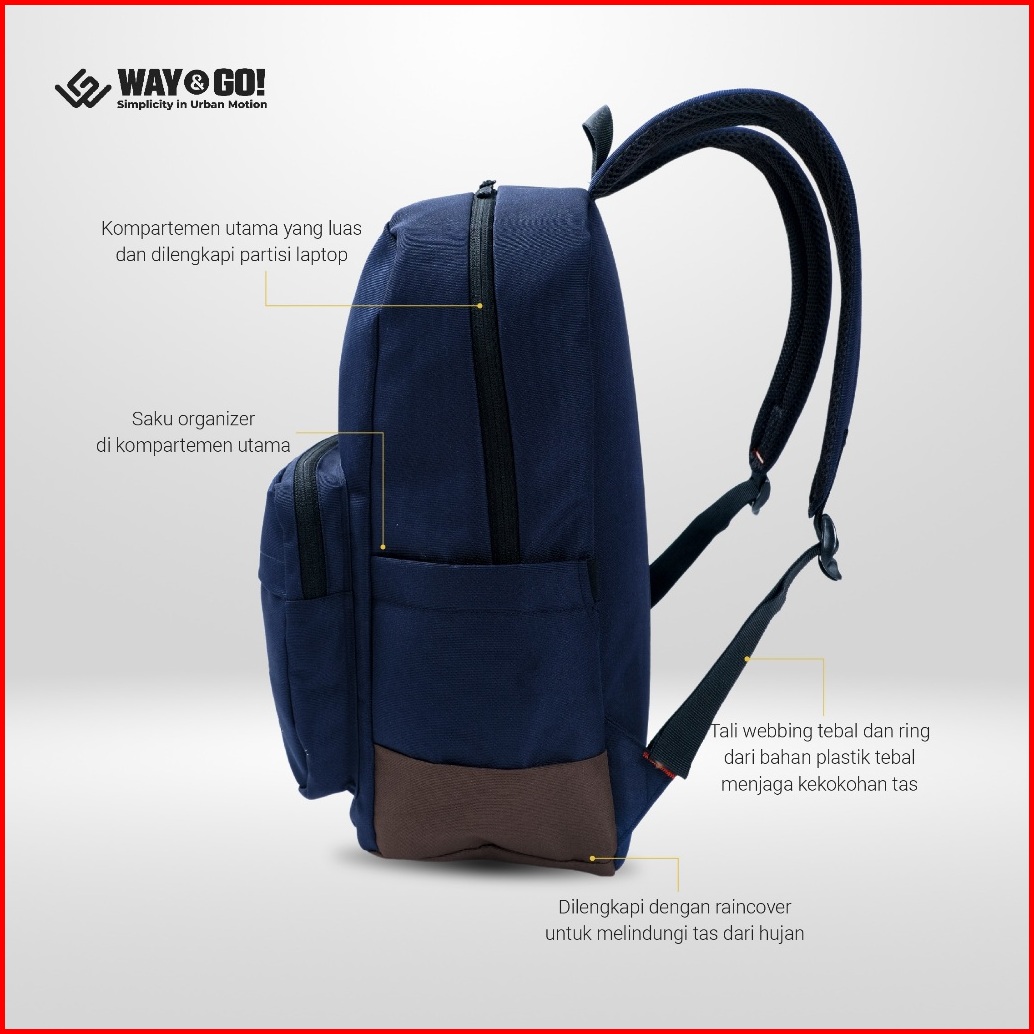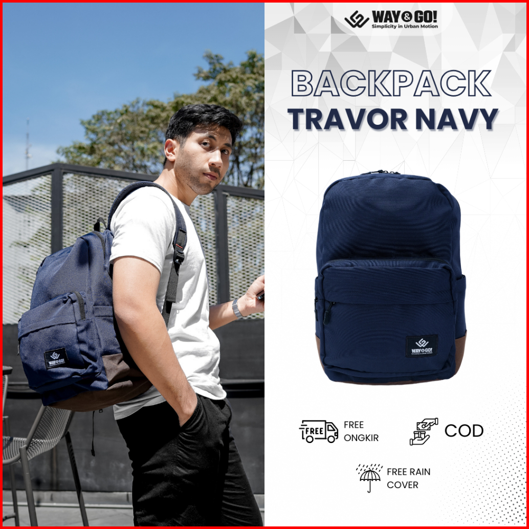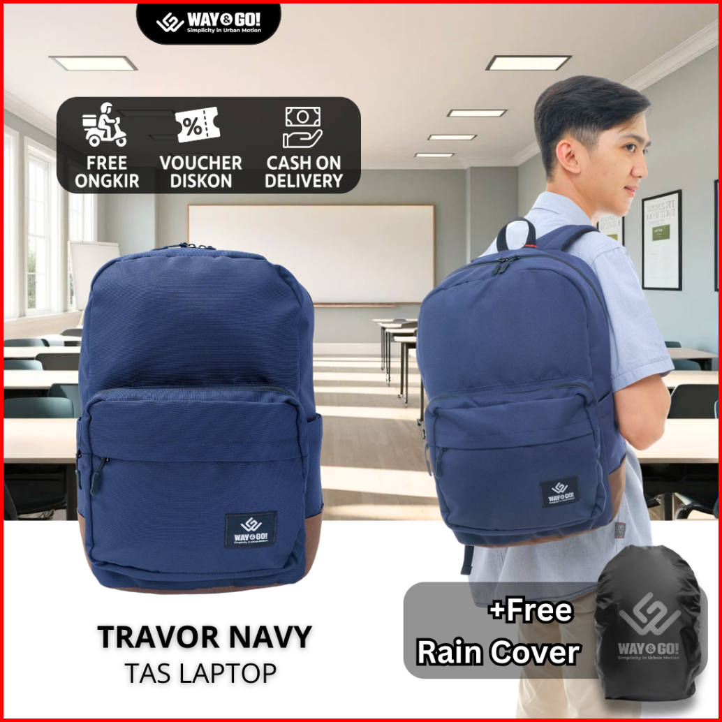 Way Go Travor Navy Tas Ransel Laptop Pria 14-15 Inch Kuliah Kerja