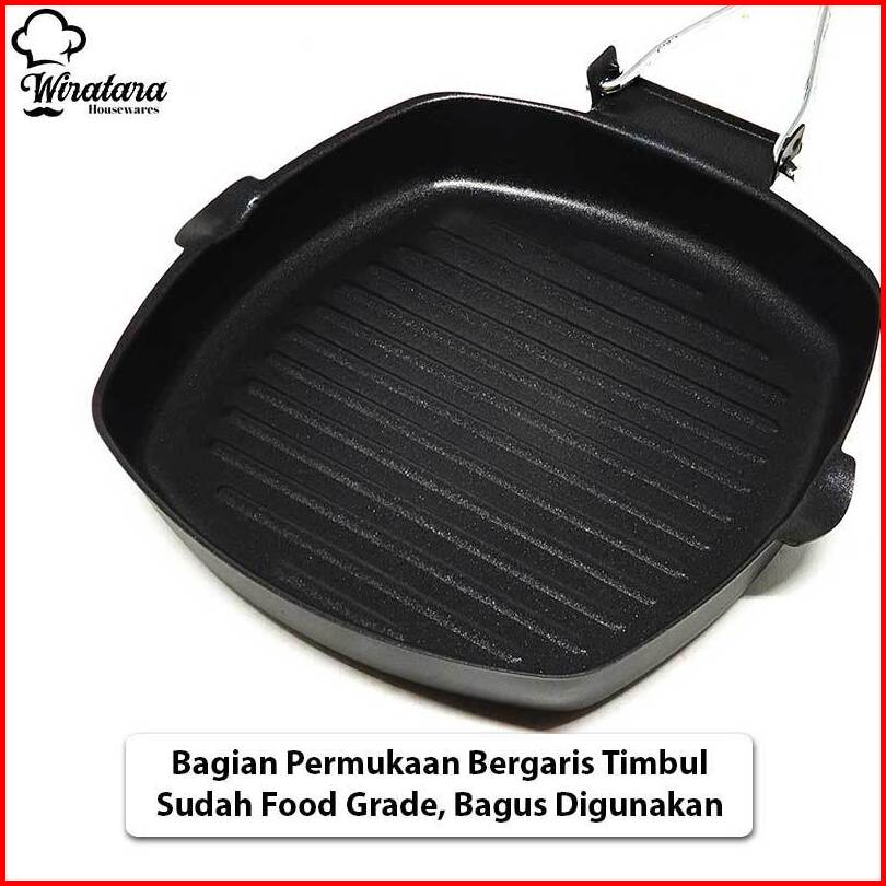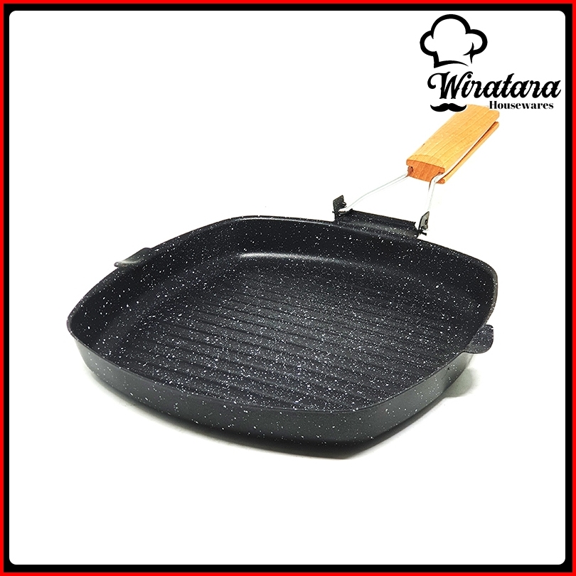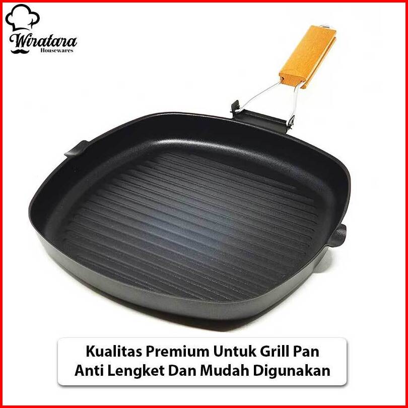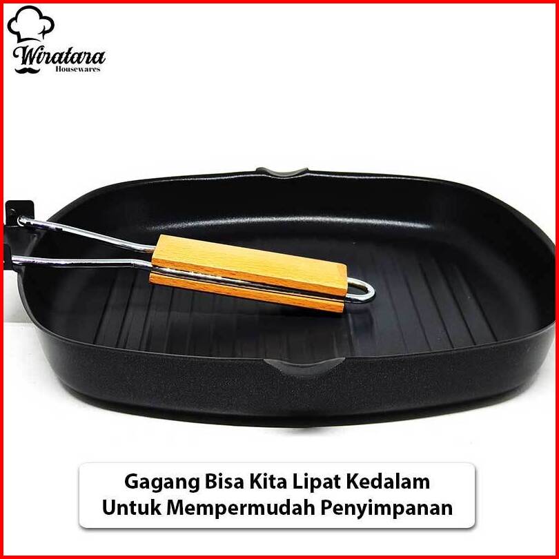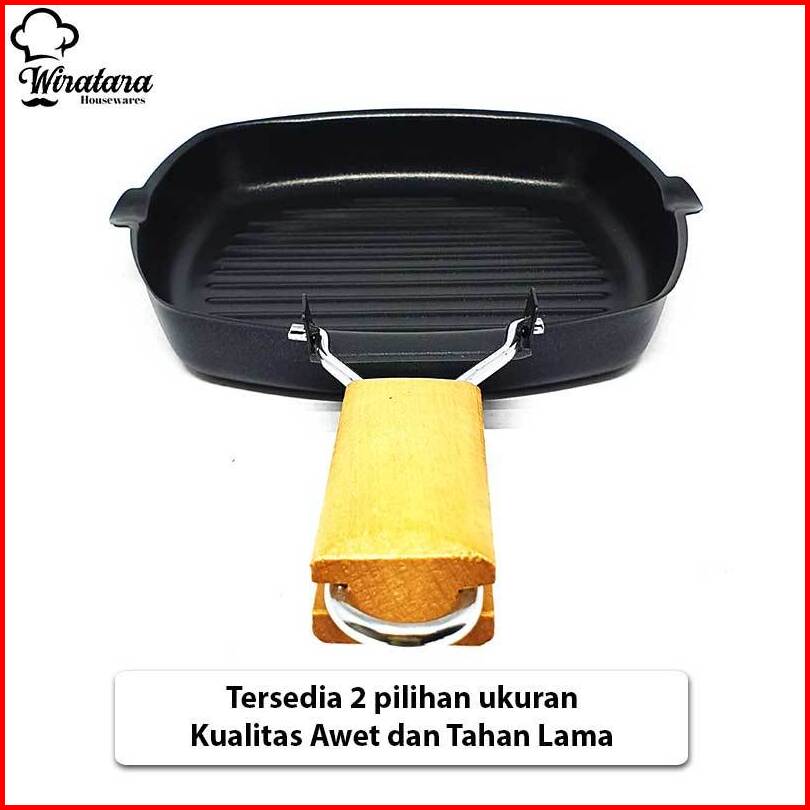 Calypso Grill Pan Premium Anti Lengket Gagang Kayu Segi Panggangan Bbq Sate Ayam Ikan