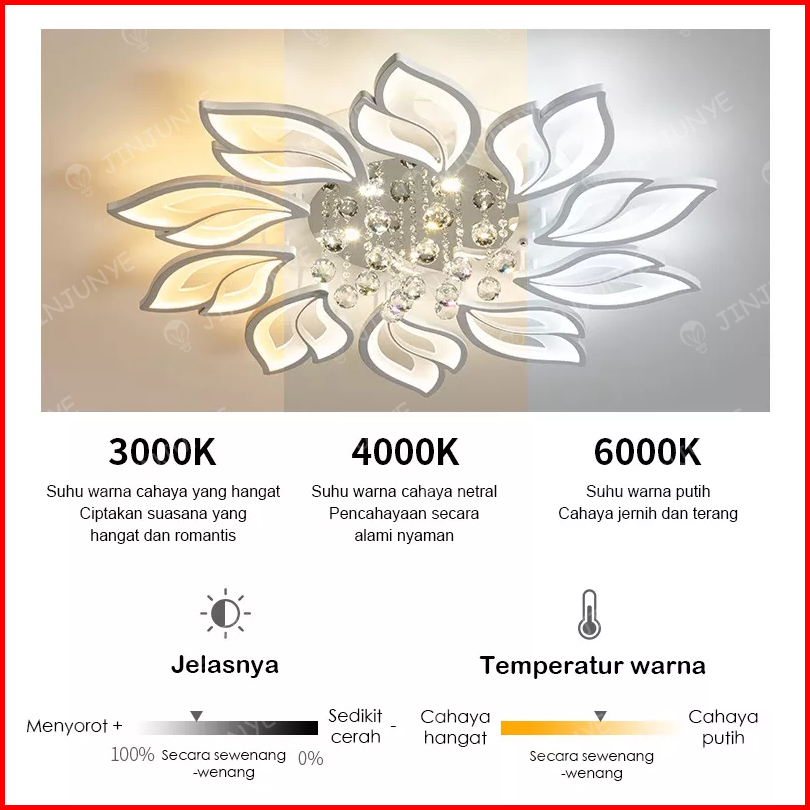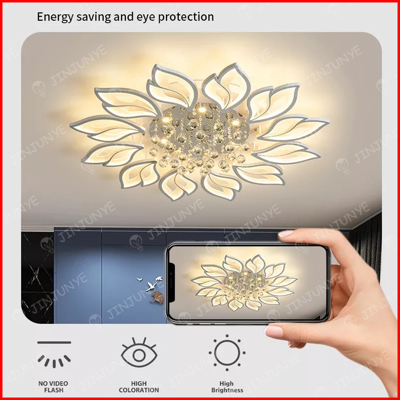 Garansilampu Gantung Ruang Tamu Lampu Plafon Kristal Simple Modern Lampu Hias Gantung Led 3 Warna Langit-langit Kamar Ti