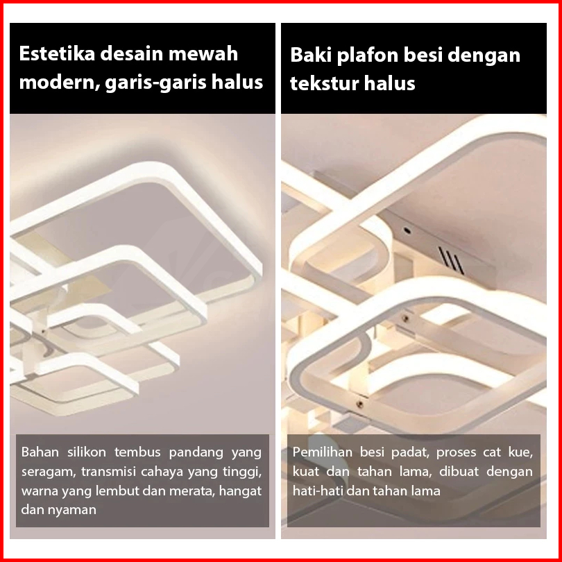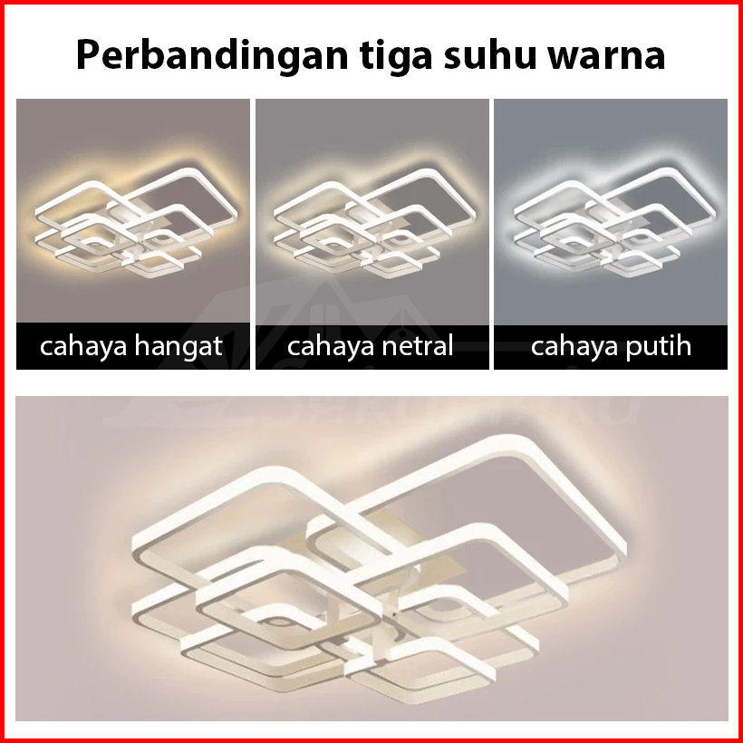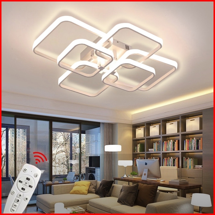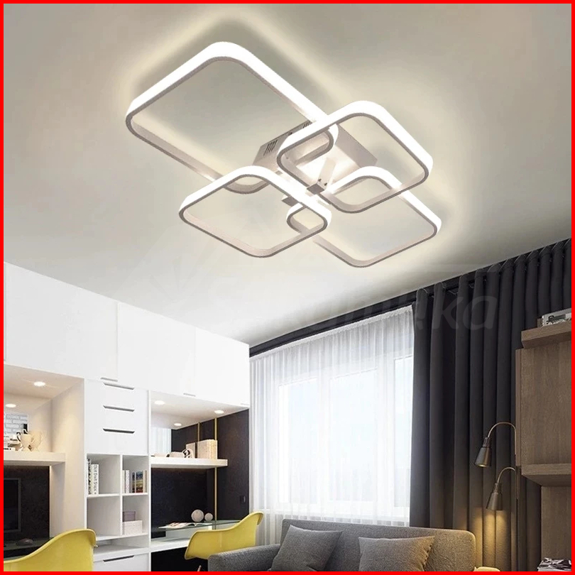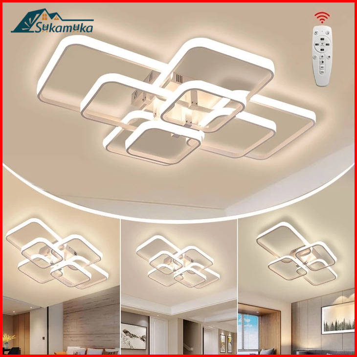 Lampu Plafon Minimalis Modern 4 6 8 Kepala Lampu Hias Gantung Bentuk Persegi Gaya Remote Control Led 3warna Untuk Dekora
