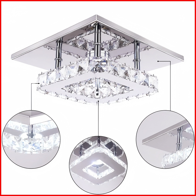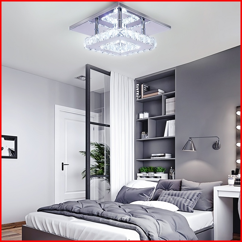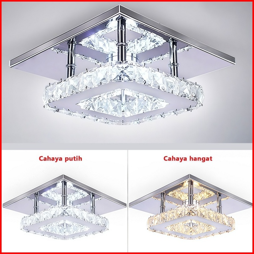 Codjorunhe Lampu Plafon Led Kristal 12w 20cm - Mini Persegi Minimalis Modern Untuk Kamar