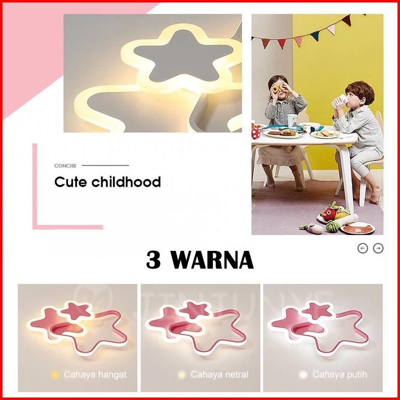 Lampu Plafon Kamar Minimalis Modern Lampu Kamar Aesthetic Hias Anak Led 3 Warna Untuk Dekorasi Rumah Kamar Tidur Ruang T