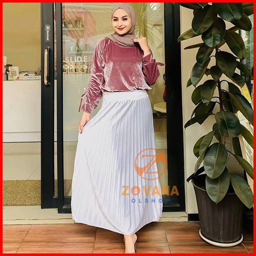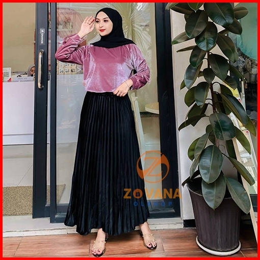 Rok Plisket Premium Bludru Import Polos Real Pict Rok Plisket Panjang Bludru Velvet 100 Asli Import