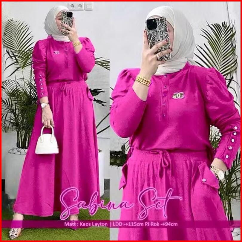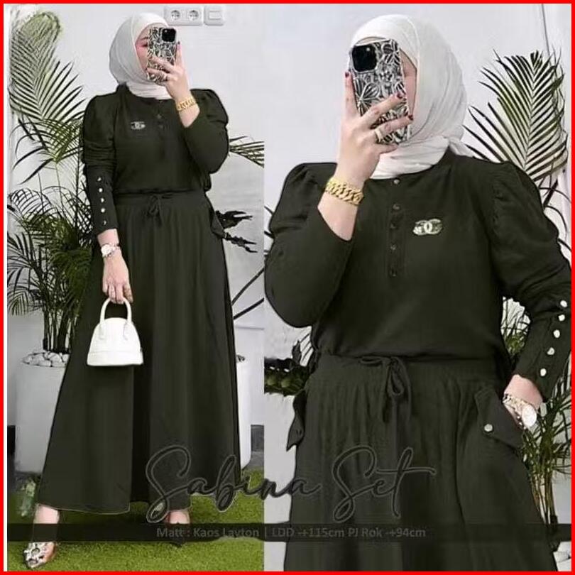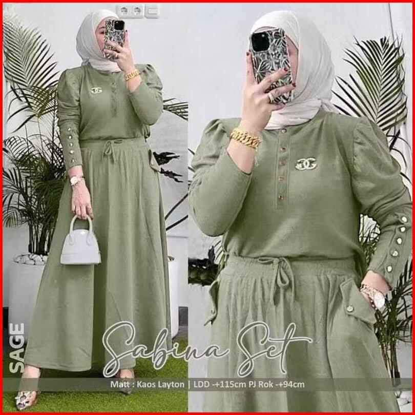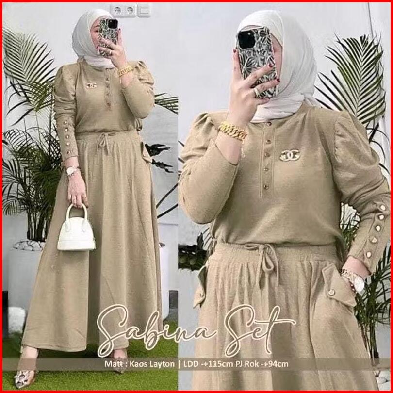 Setelan Rok Sabina Tangan Balon Knit Premium All Size Set Rok Wanita Knit Rib Oneset Rok Wanita Lengan Balon Setelan Pol