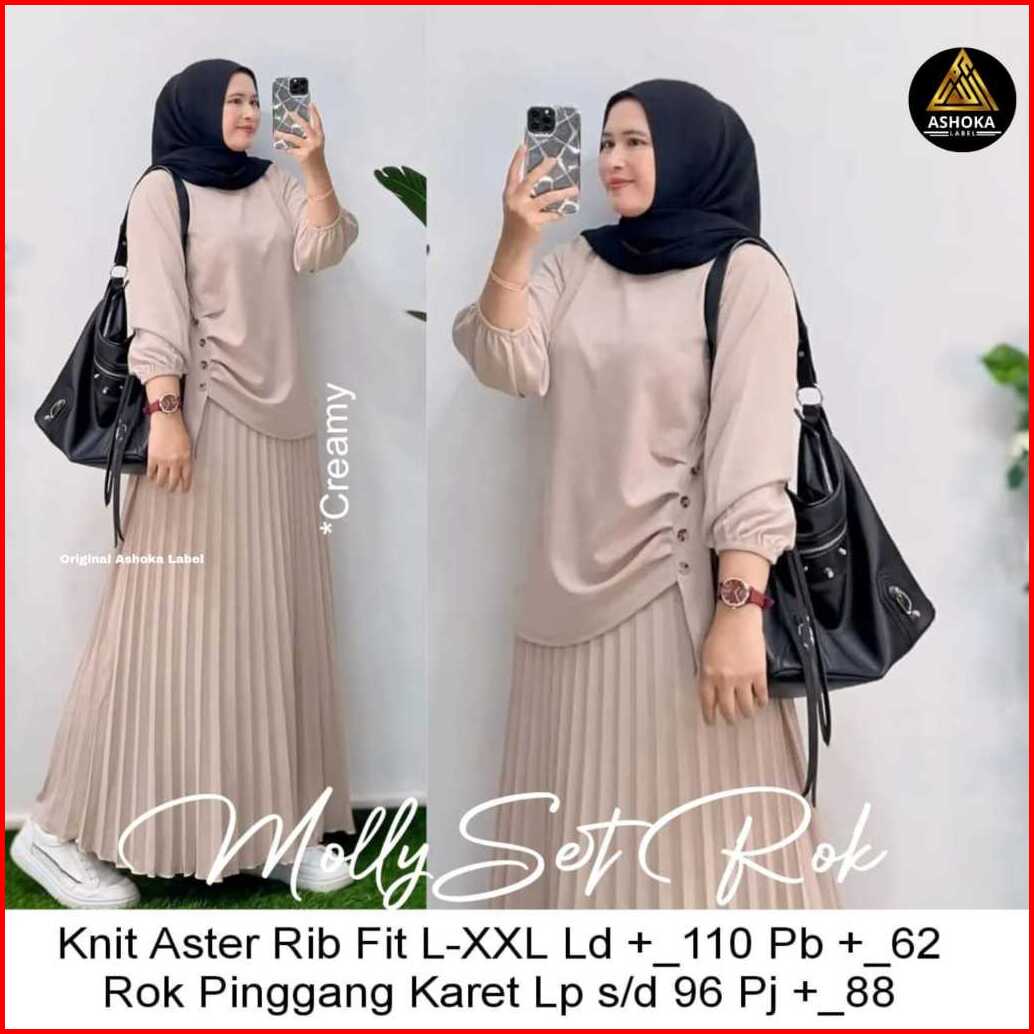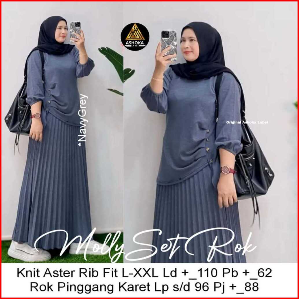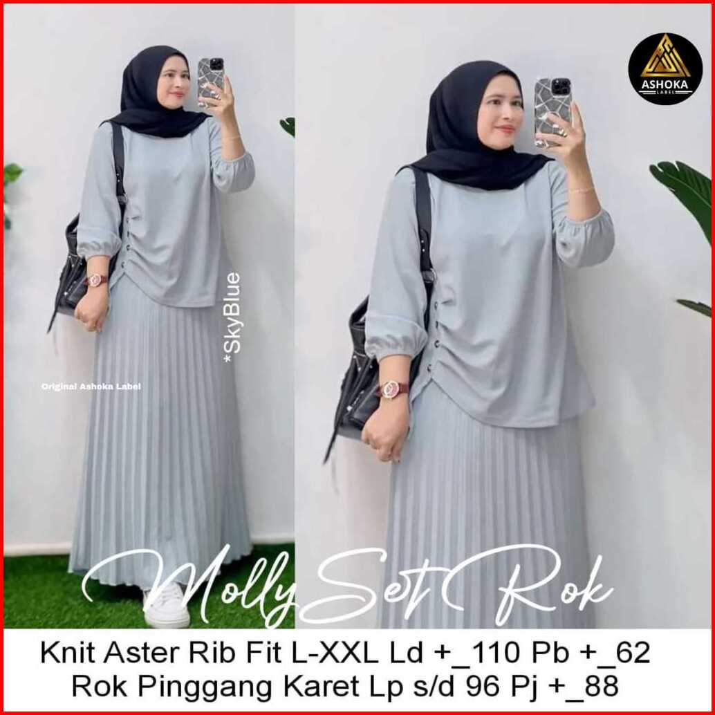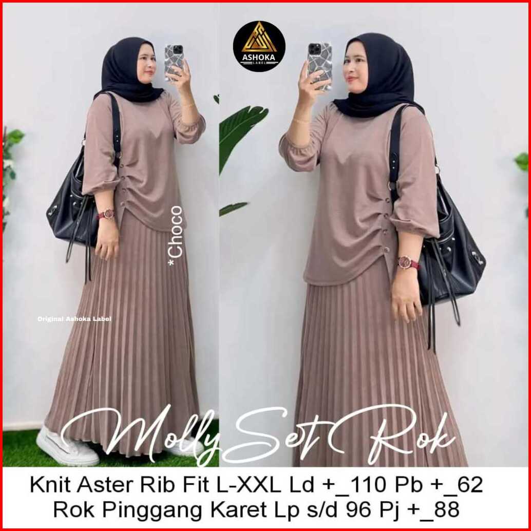 Molly Set By Ashoka Setelan Wanita Atasan Mix Rok Bahan Knit Aster Best Seller