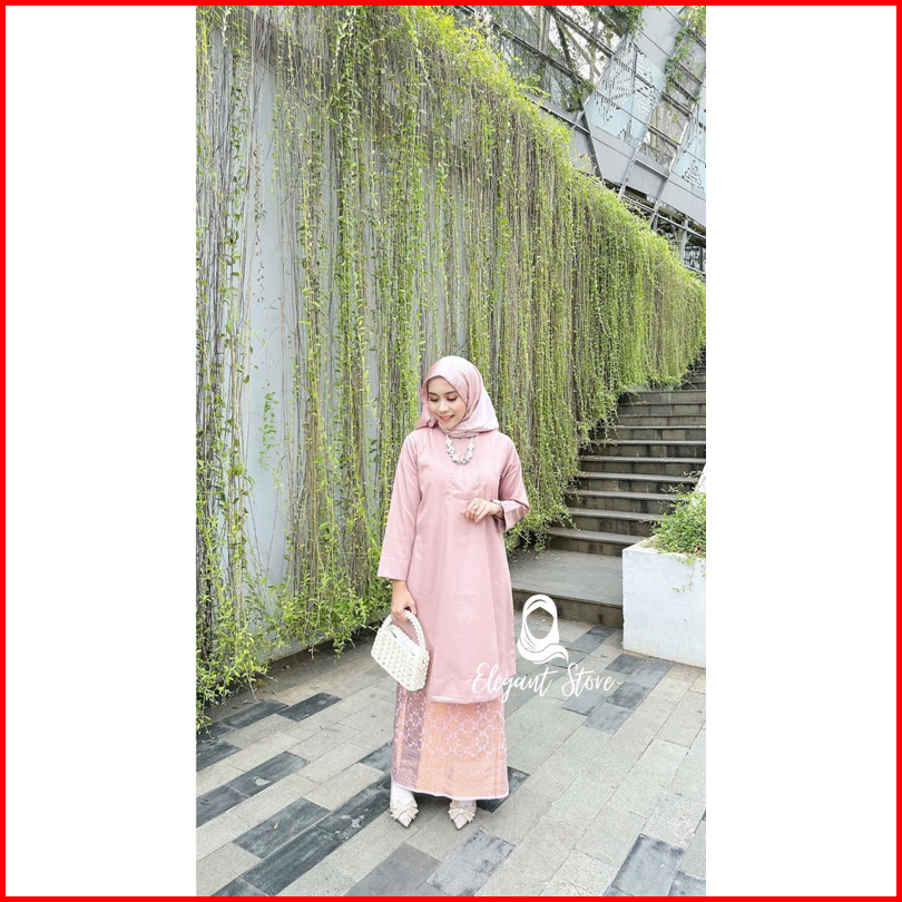 Oneset Tunik Toyobo Polos Stelan Baju Melayu Busui Tunik Polos Ima Toyobo Set Tunik Rok Songket