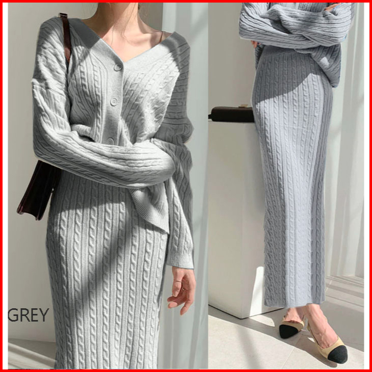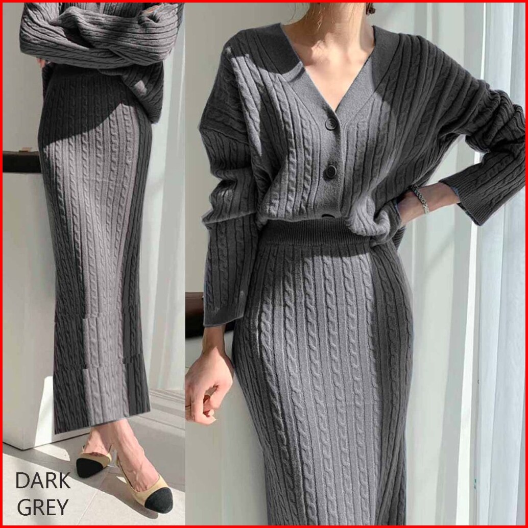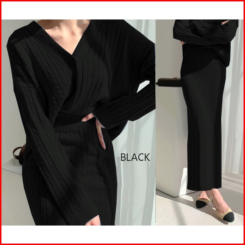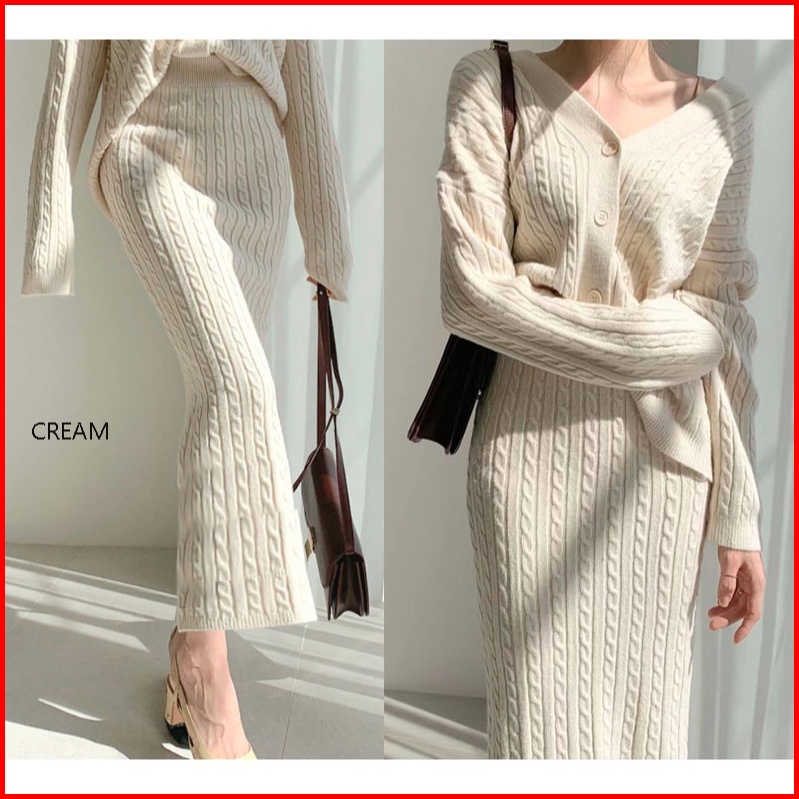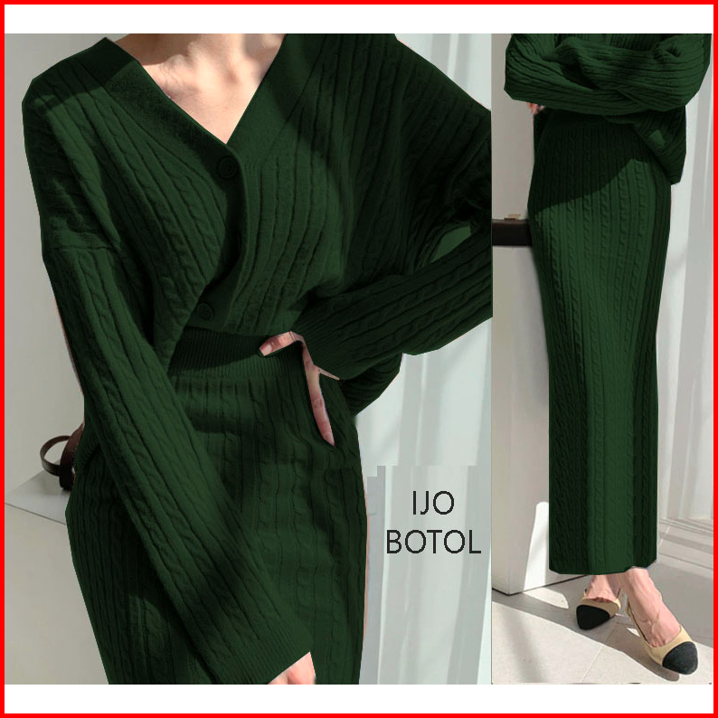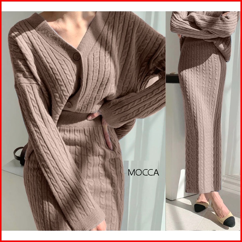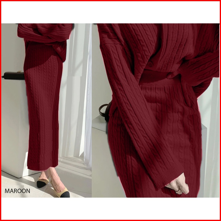 Rok Maxi Knit Skirt Motif Cable Dan Cardigan Set Atasan Dan Rok Dijual Terpisah