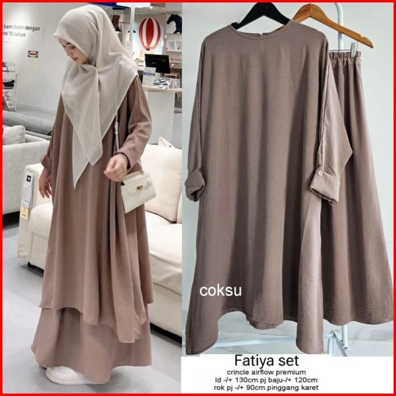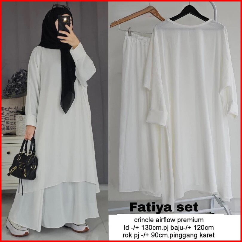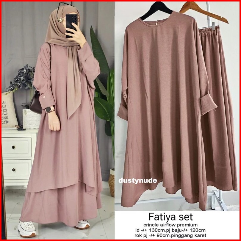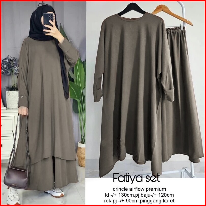 Tunik Fatiya Set Rok One Set Abaya Cringkle Airflow Premium Tunik Rok Jumbo Tanpa Hijab Pashmina