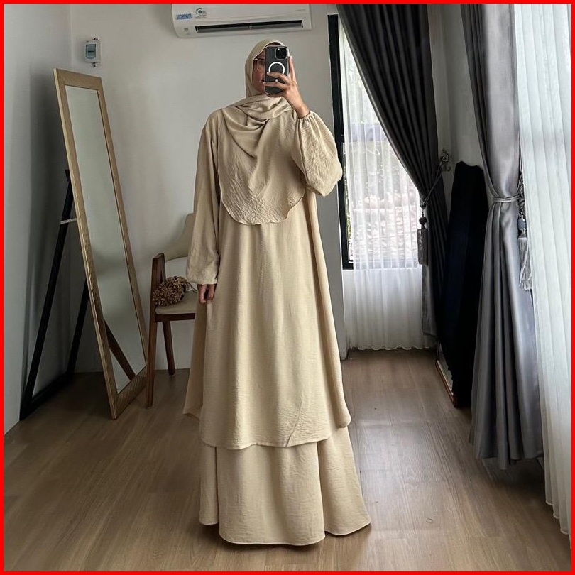 Hameda One Set Setelan Wanita Rok Tunik Bahan Crincle Airflow Bumil Busui Size L Xl Xxl Jumbo