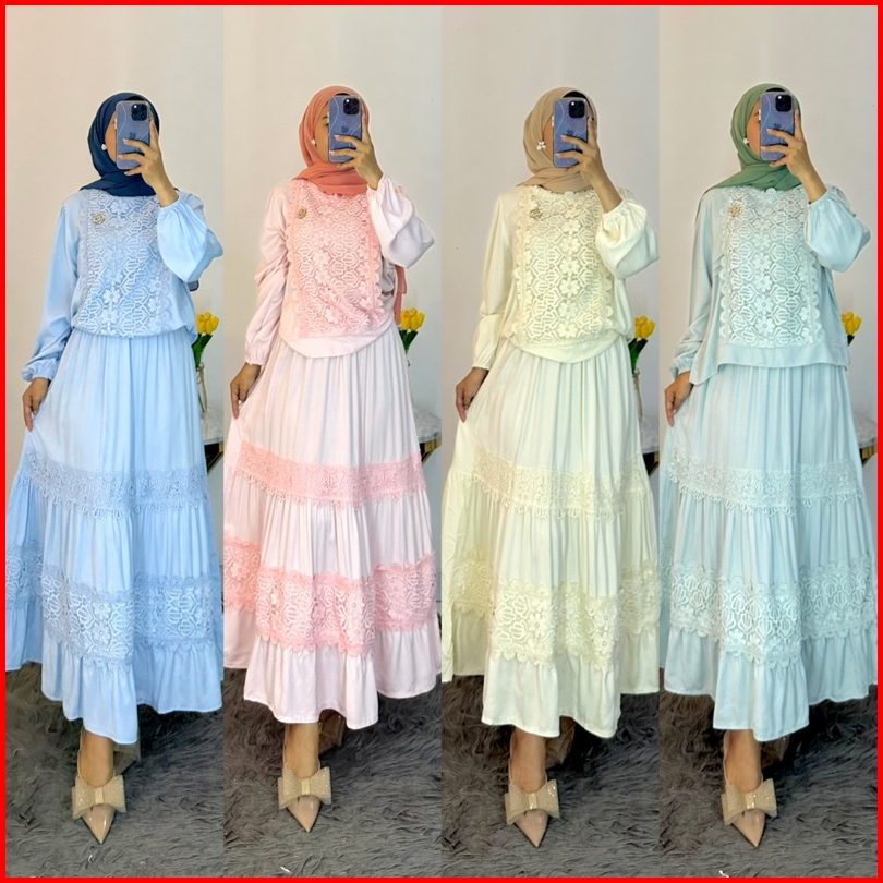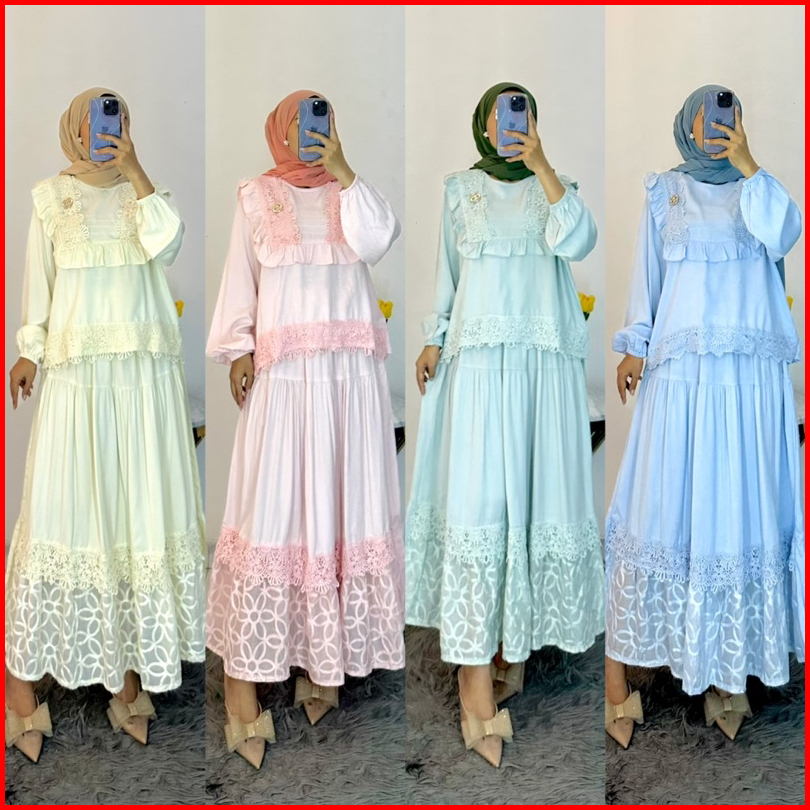 Cream gading, Pink MIQI, Katbol mint, Katbol denim, Katbol putih, Peach sazara, Blue sazara, Sage sazara, Cream sazara, Peach ruffel, Cream ruffel, Sage ruffel, Blue ruffel