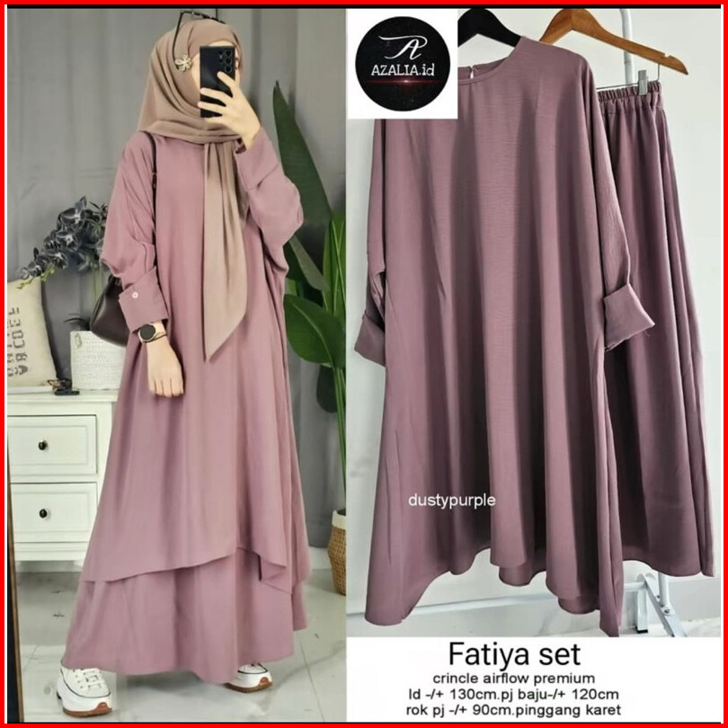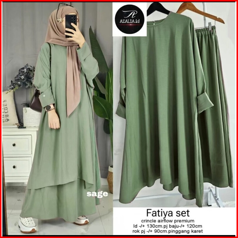 Fatiya Indira Long Set Tunik Xl Ld 110cm Xxl Ld 130cm Rok One Set Wanita Bahan Crinkle Airflow Polo Linen