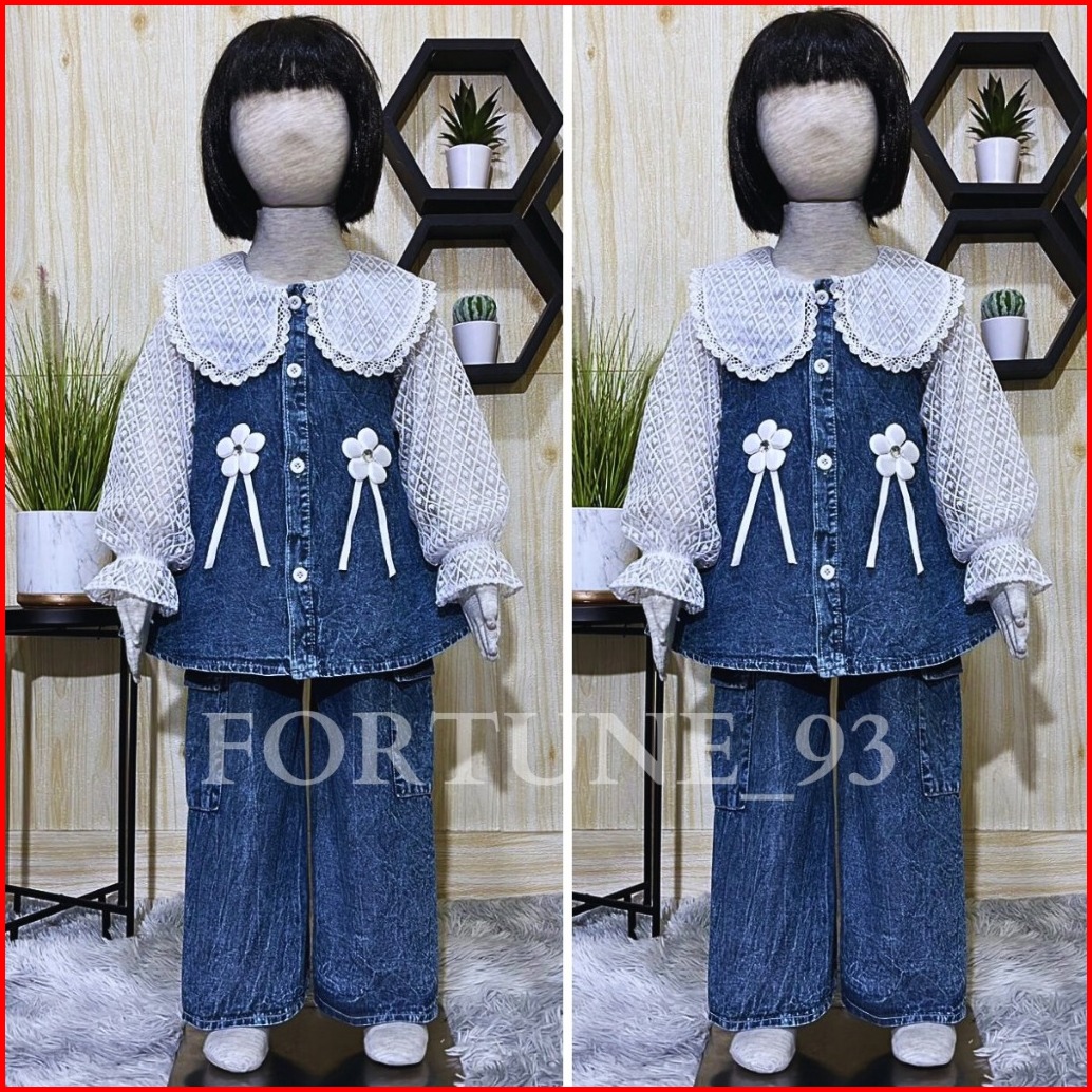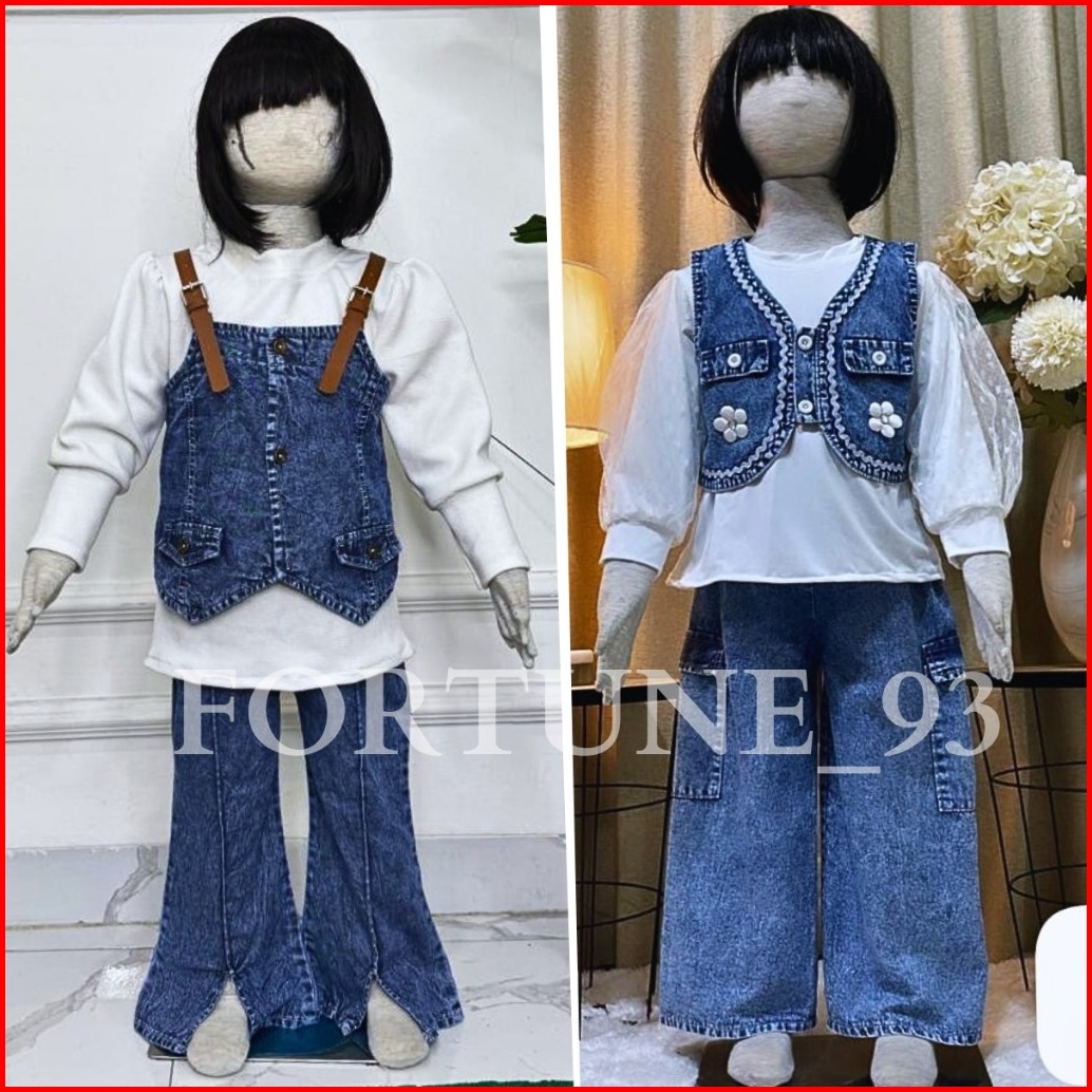 Setelan 3in1 Anak Perempuan Import Usia 3 - 12 Tahun Celana Cutbray Set Import Anak Kekinian Korean Style Set Oversize A