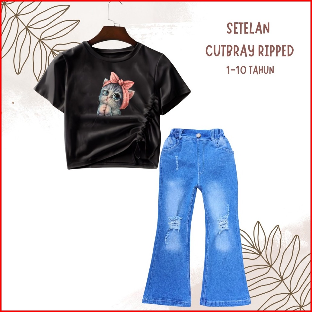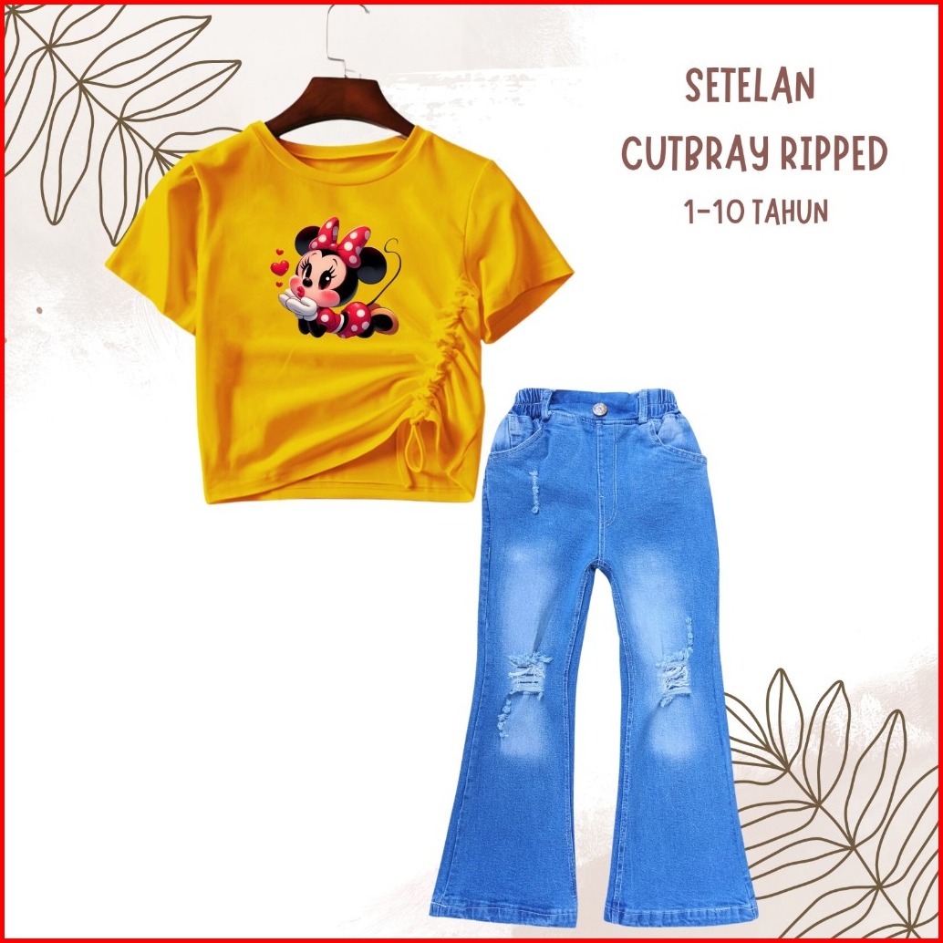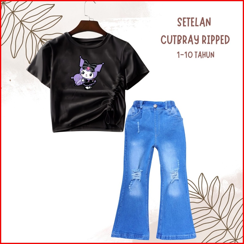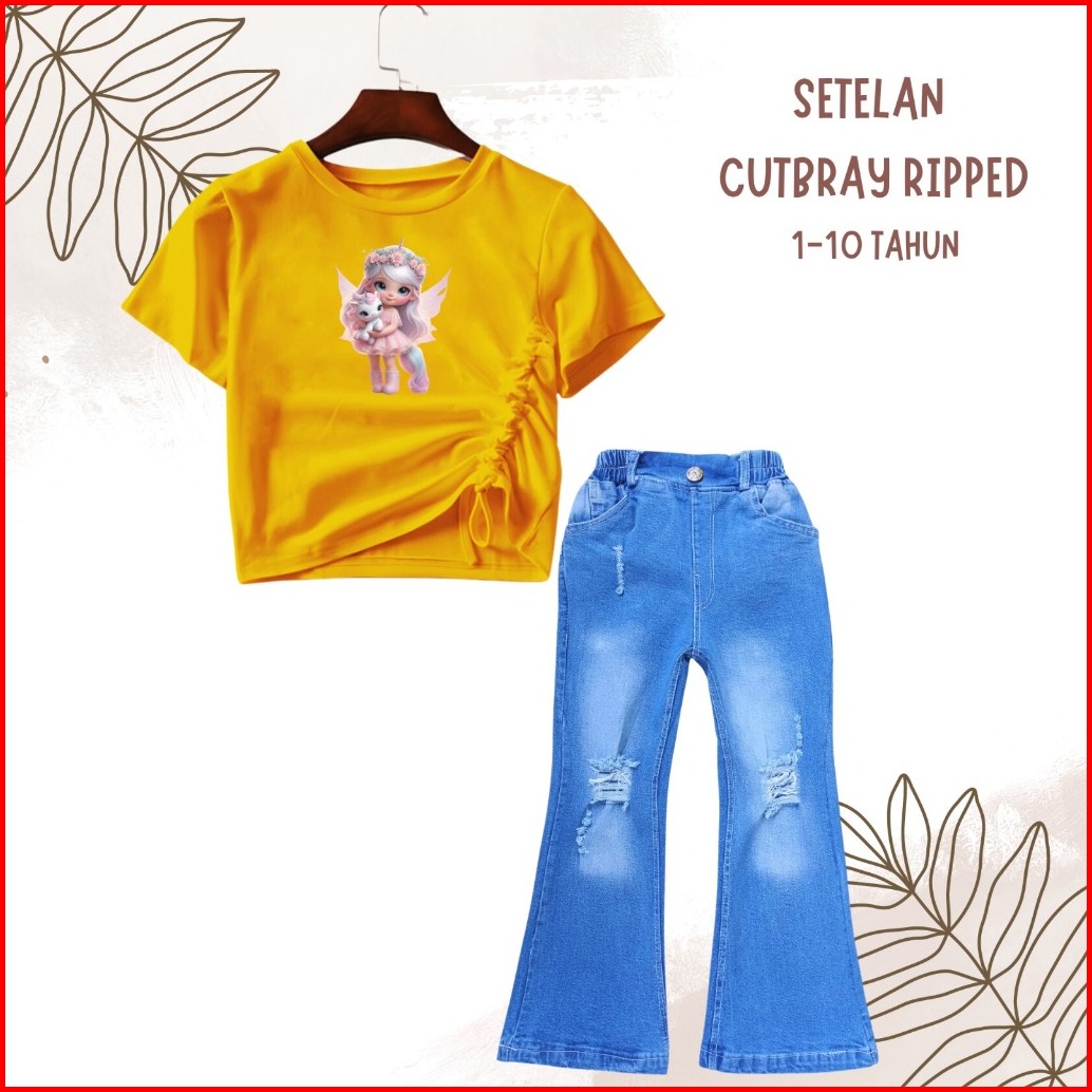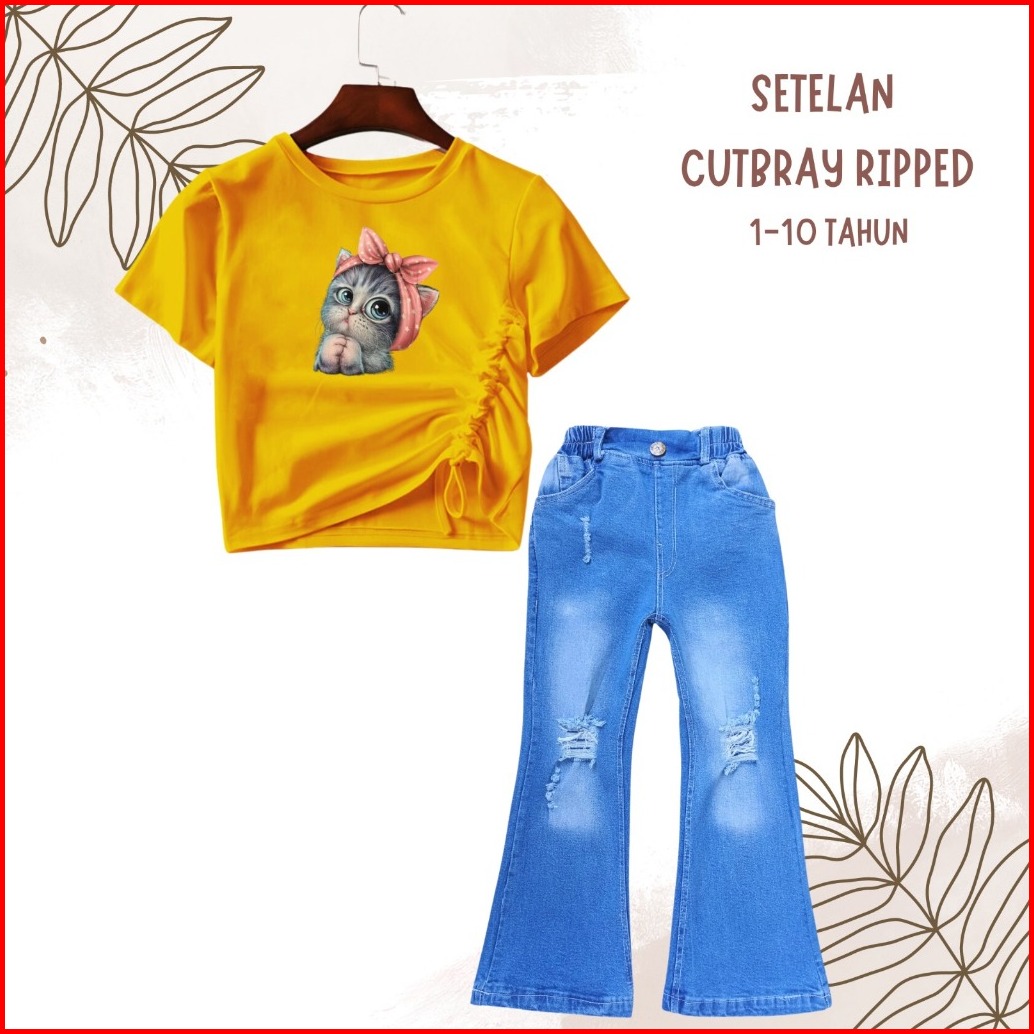 Setelan Celana Jeans Cutbray Anak Perempuan Oneset Baju Anak 1-12 Tahun