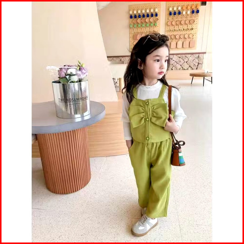 Setelan Anak Perempuan 1tahun - 5tahun Setjins Panjang Anak Cewek Motif Stripe Belang Kaos Biru Pink Kuning Celana Cutbr