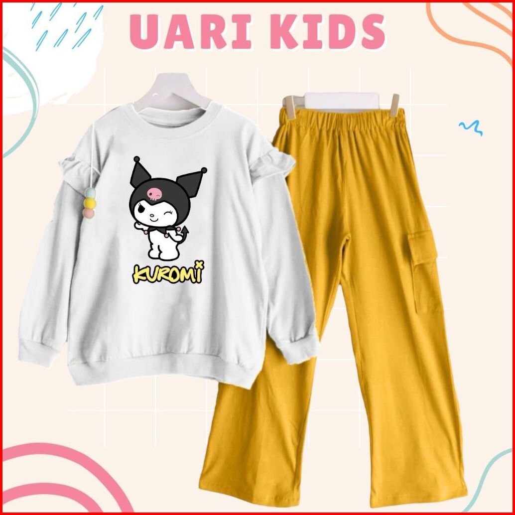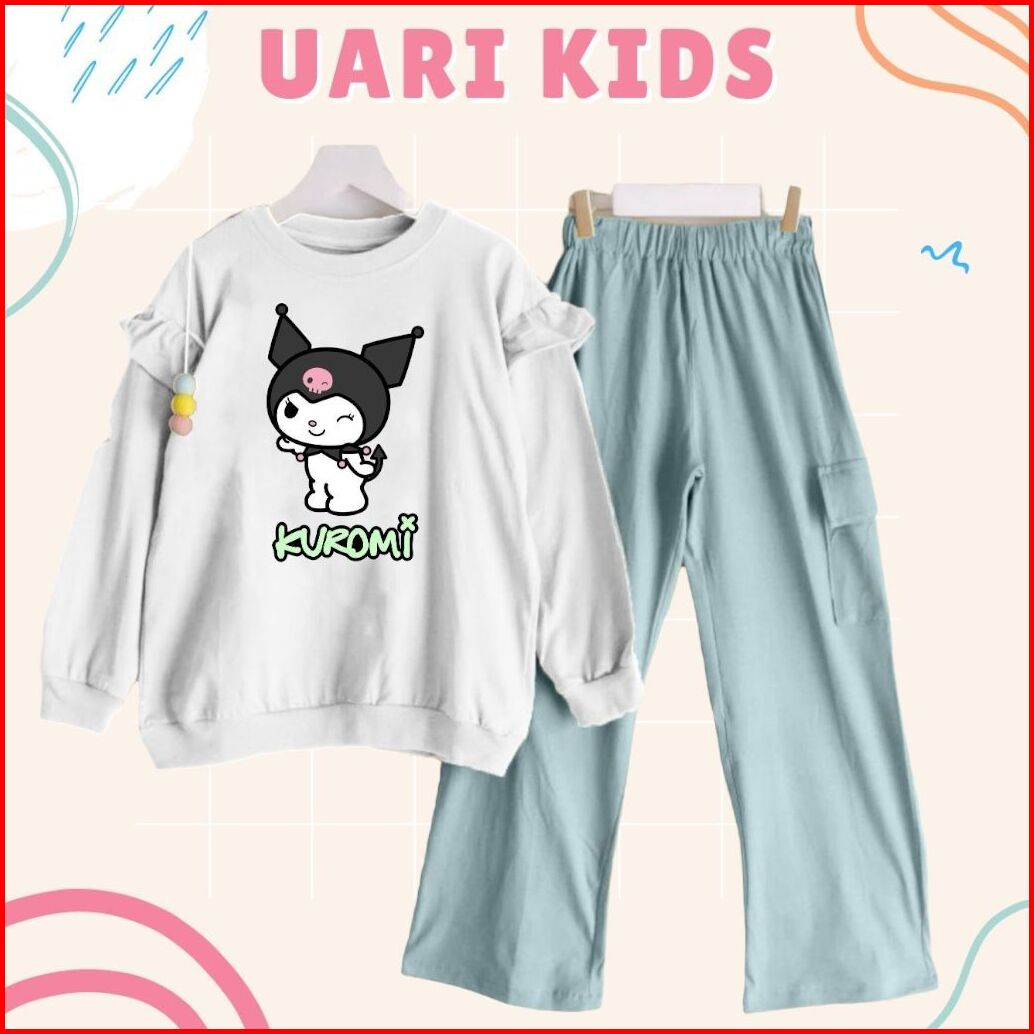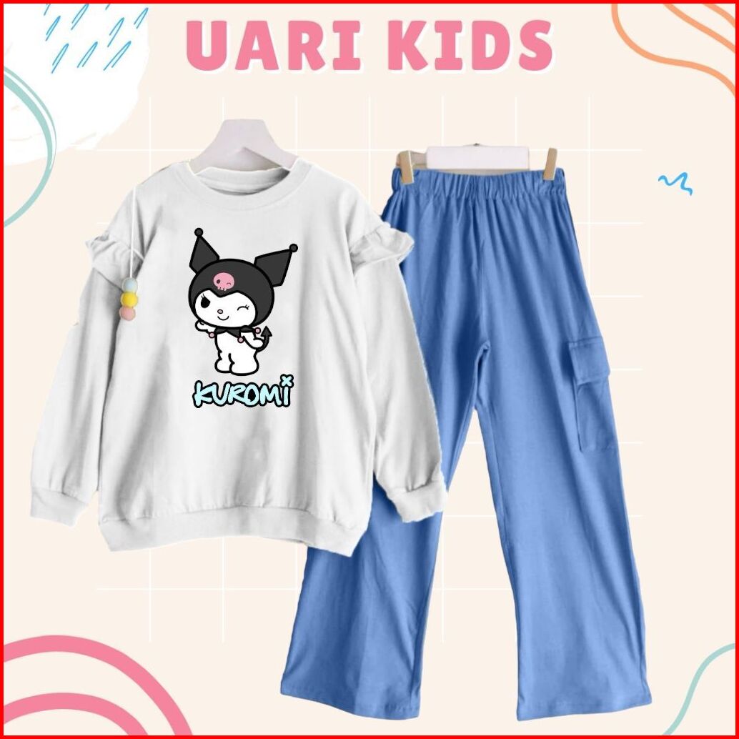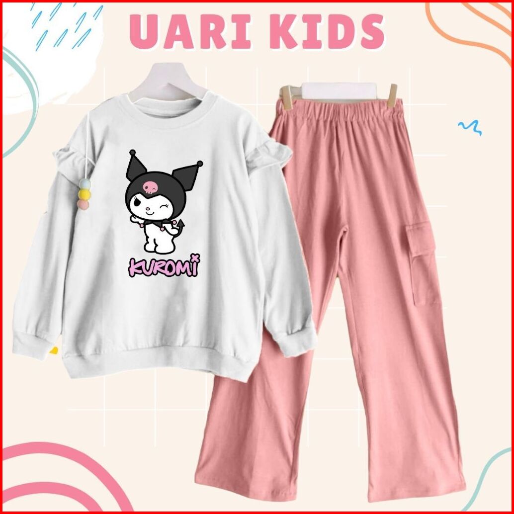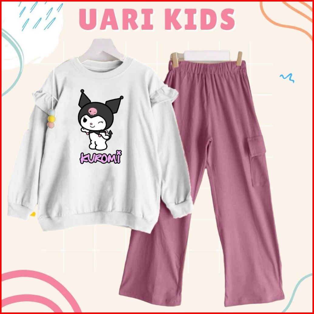 Kuromi Set Kids 3thn-13thn Celana Cargo Crinkle Printing Setelan Kuromi One Set Anak Remaja Setelan Anak Kekinian Setela