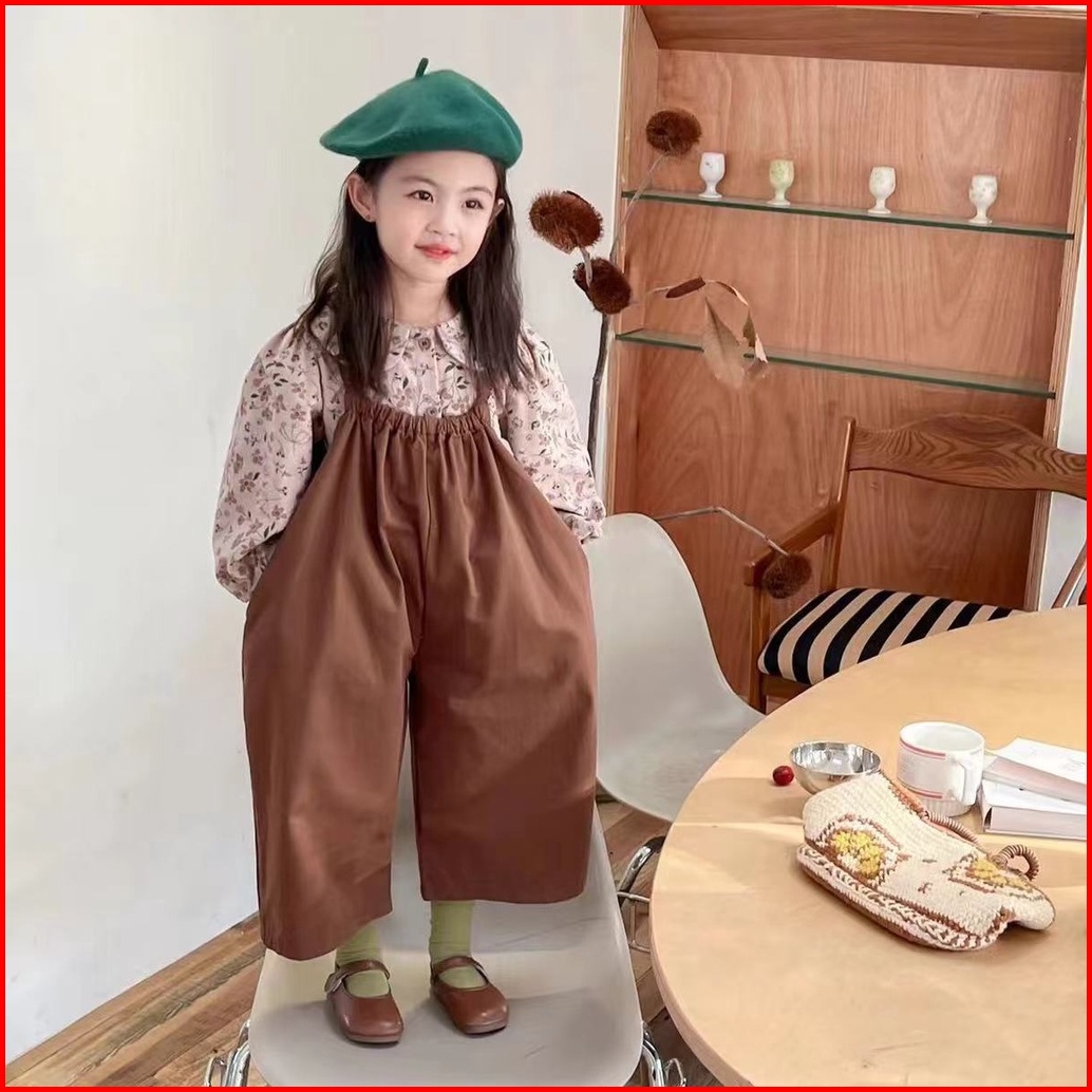 Kingogo Style Terbaru Setelan Anak Perempuan Kemeja Motif Bunga Celana Panjang Overall Setelan Mains Anak Perempuan