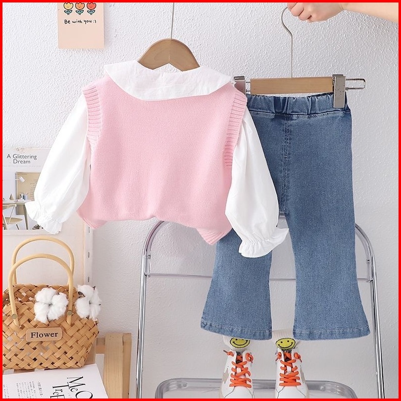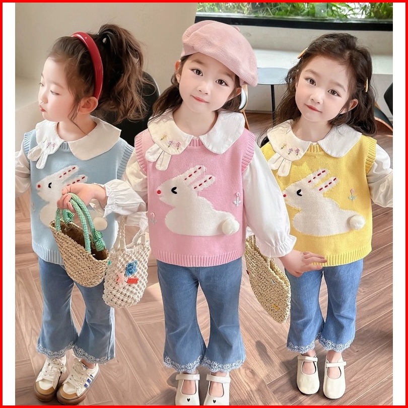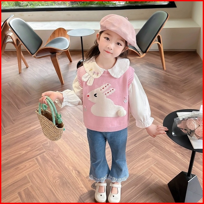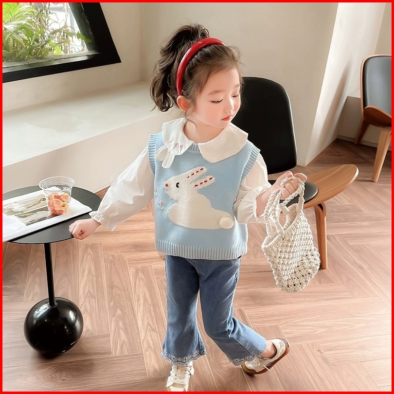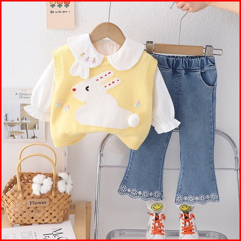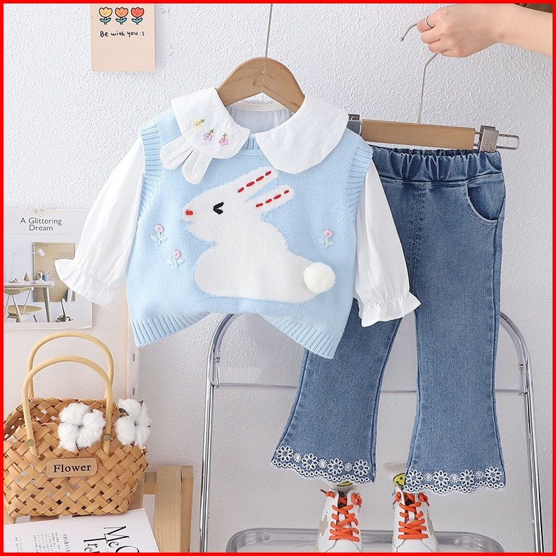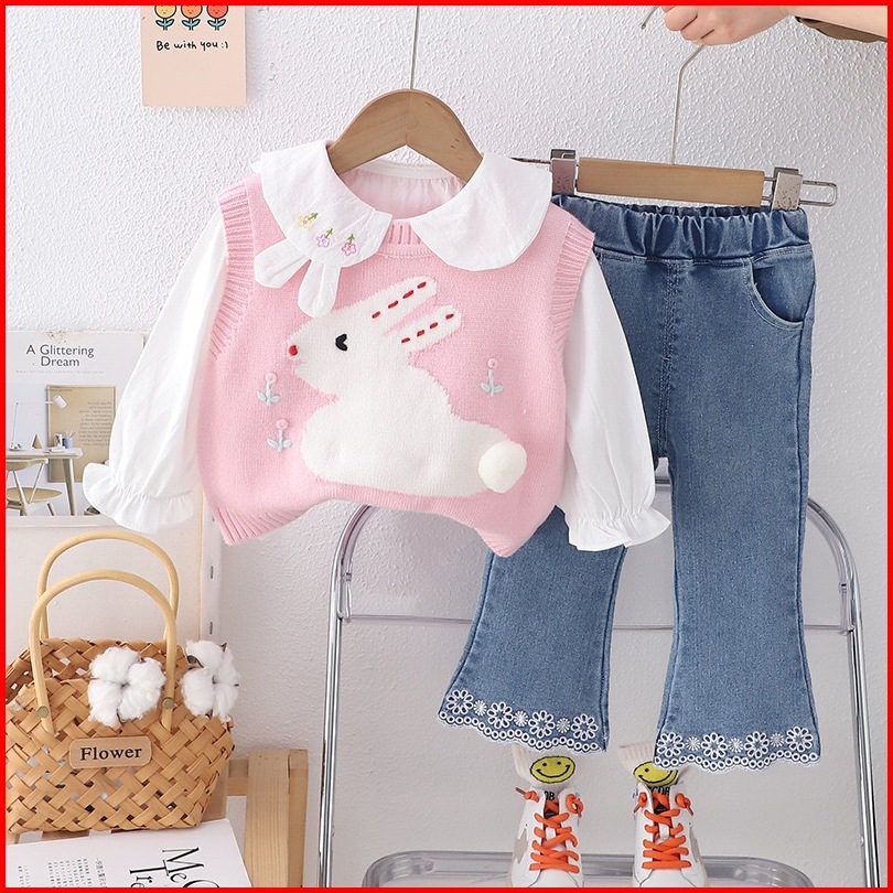 Rabbit Kids Setelan Anak Perempuan Blouse Kelinci Lucu Celana Jeans Lembut